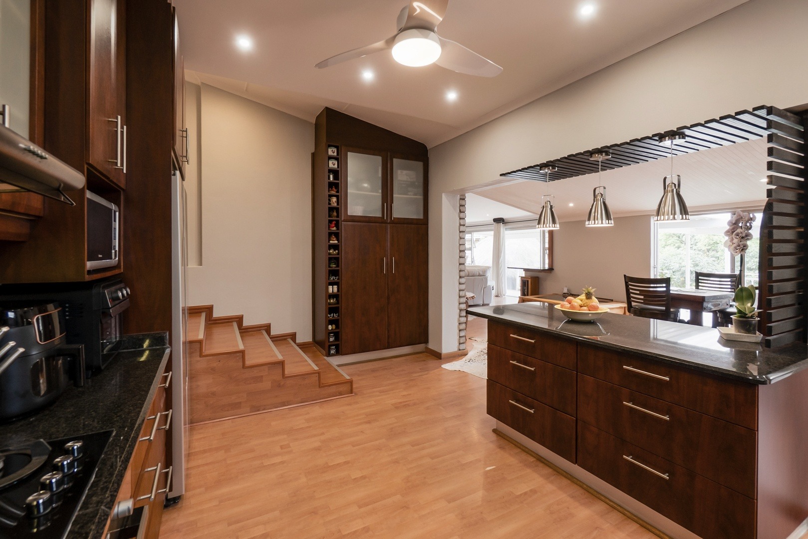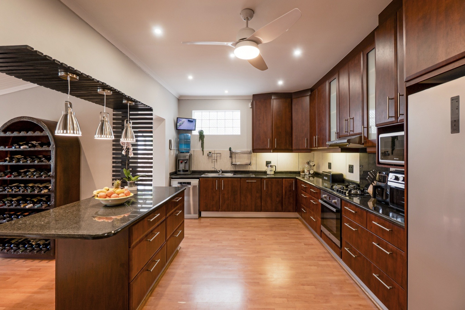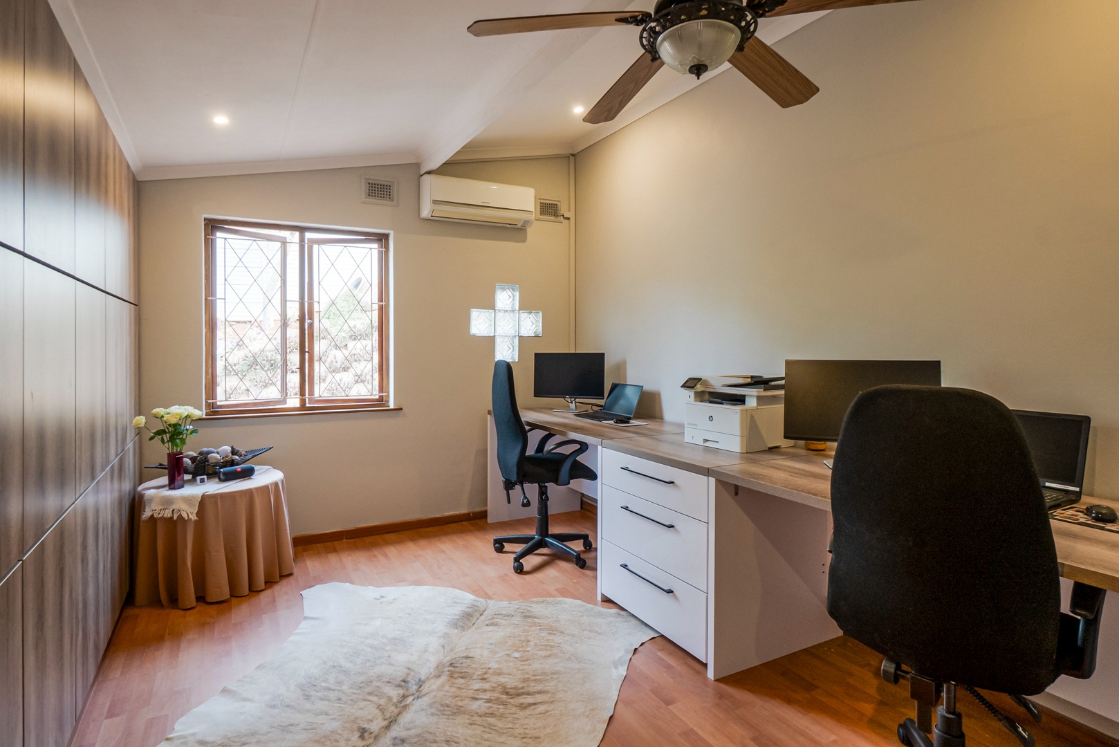 Entertainment is at its best with a sparkling swimming pool, lapa with built-in basin and fire pit, and inviting outdoor spaces with lots of greenery. Laminated floors, ample built-in cupboards, air-conditioning and ceiling fans in all rooms enhance comfort throughout.