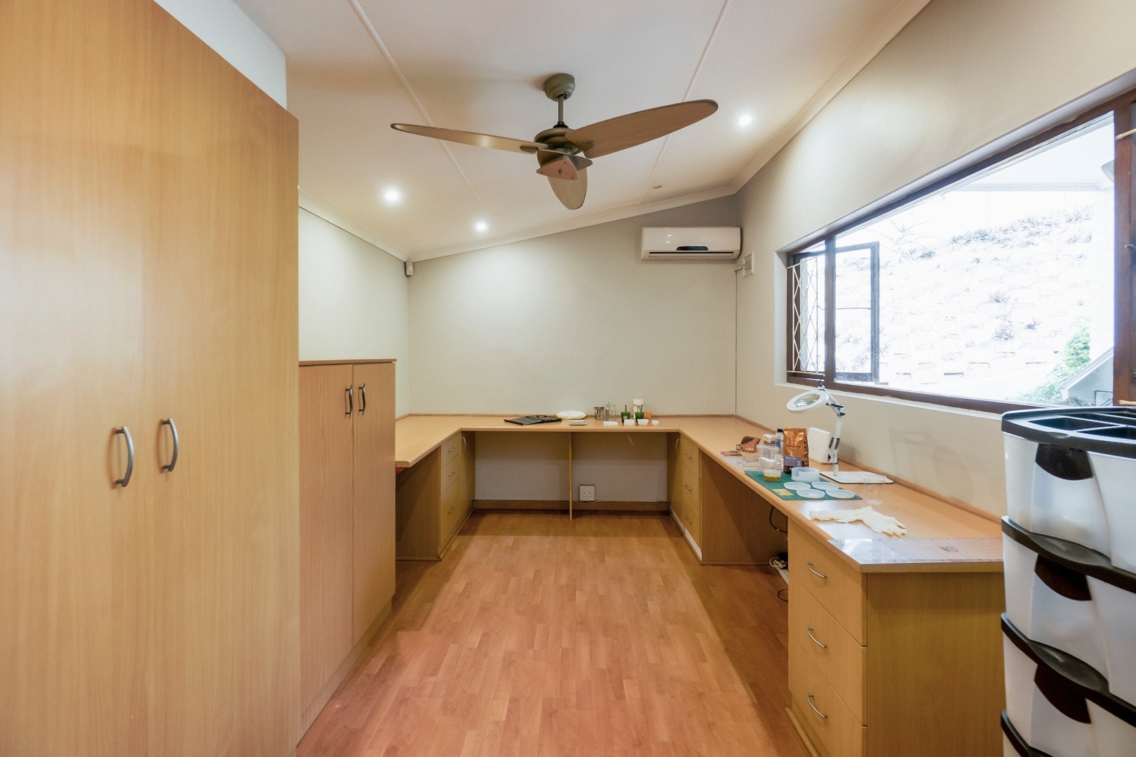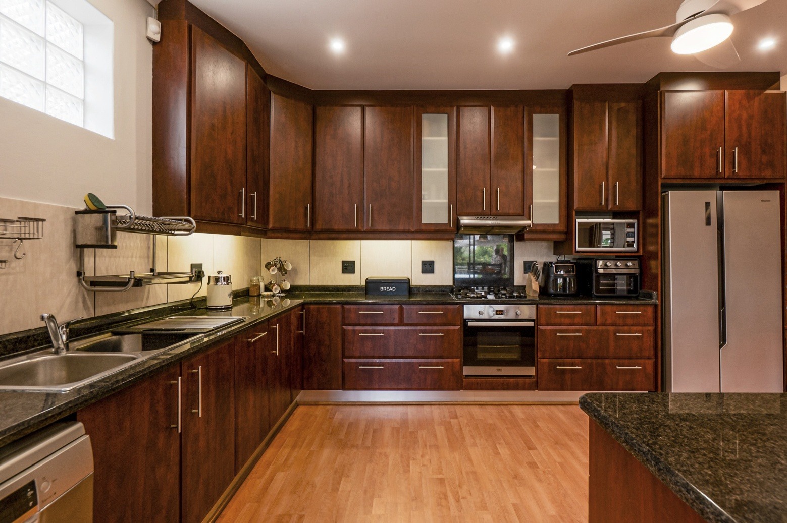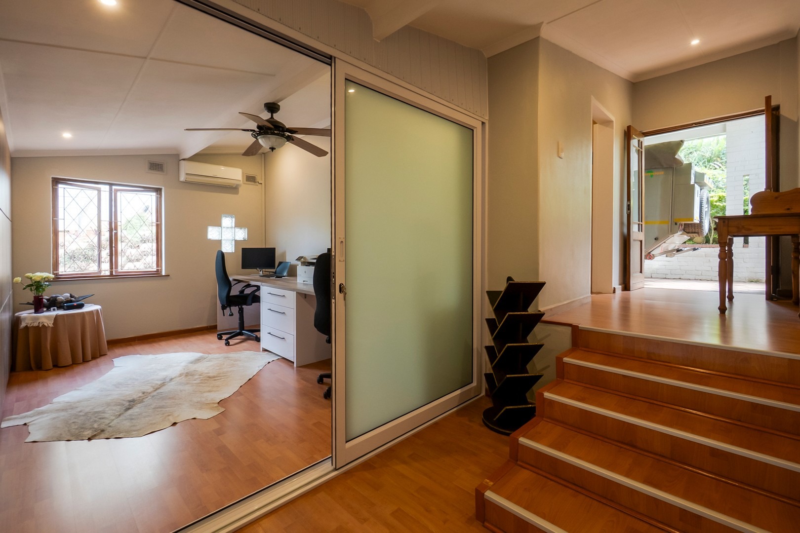 Entertainment is at its best with a sparkling swimming pool, lapa with built-in basin and fire pit, and inviting outdoor spaces with lots of greenery. Laminated floors, ample built-in cupboards, air-conditioning and ceiling fans in all rooms enhance comfort throughout.