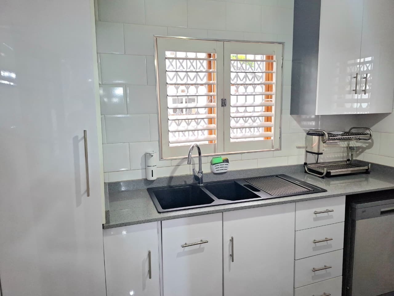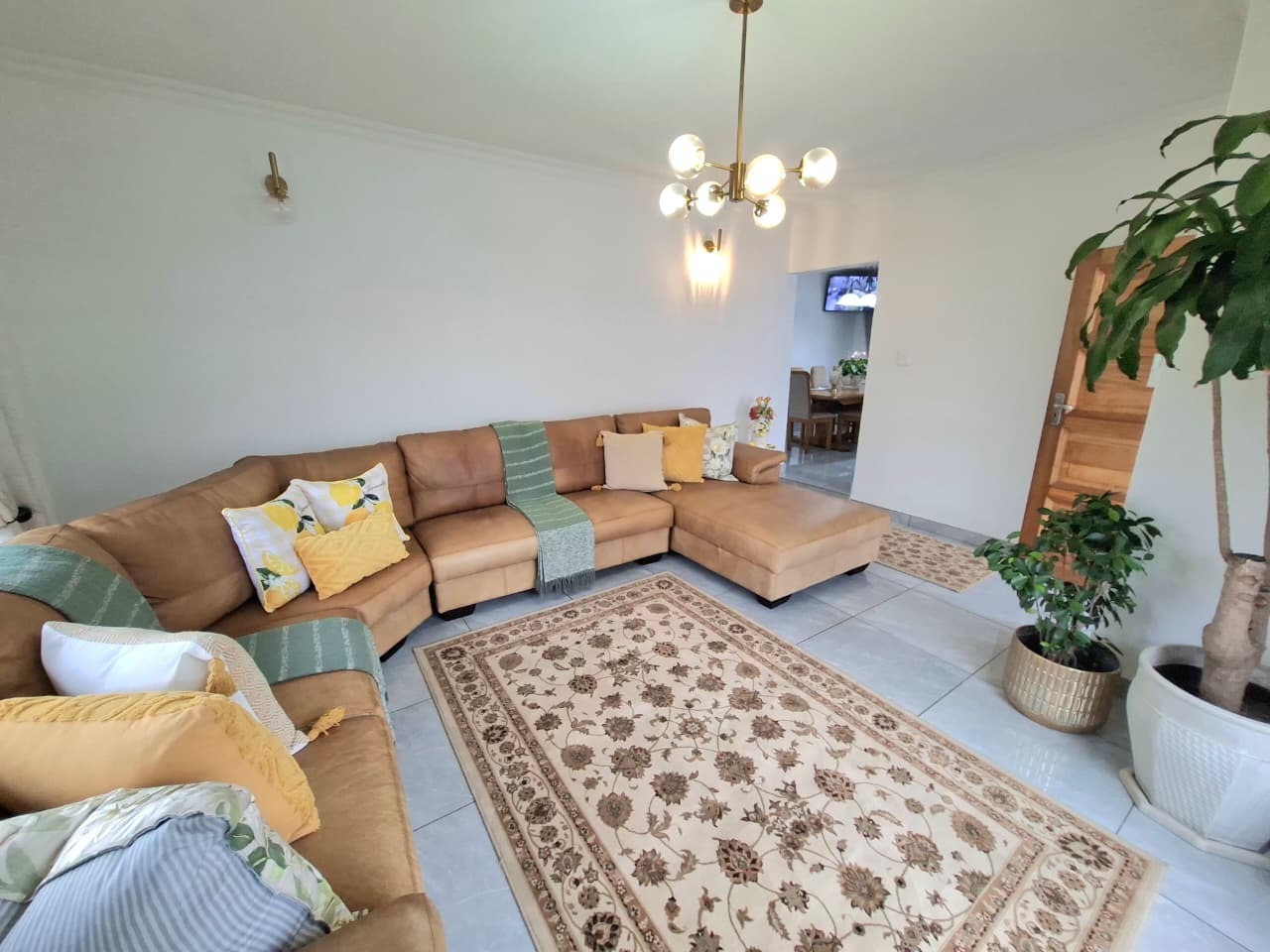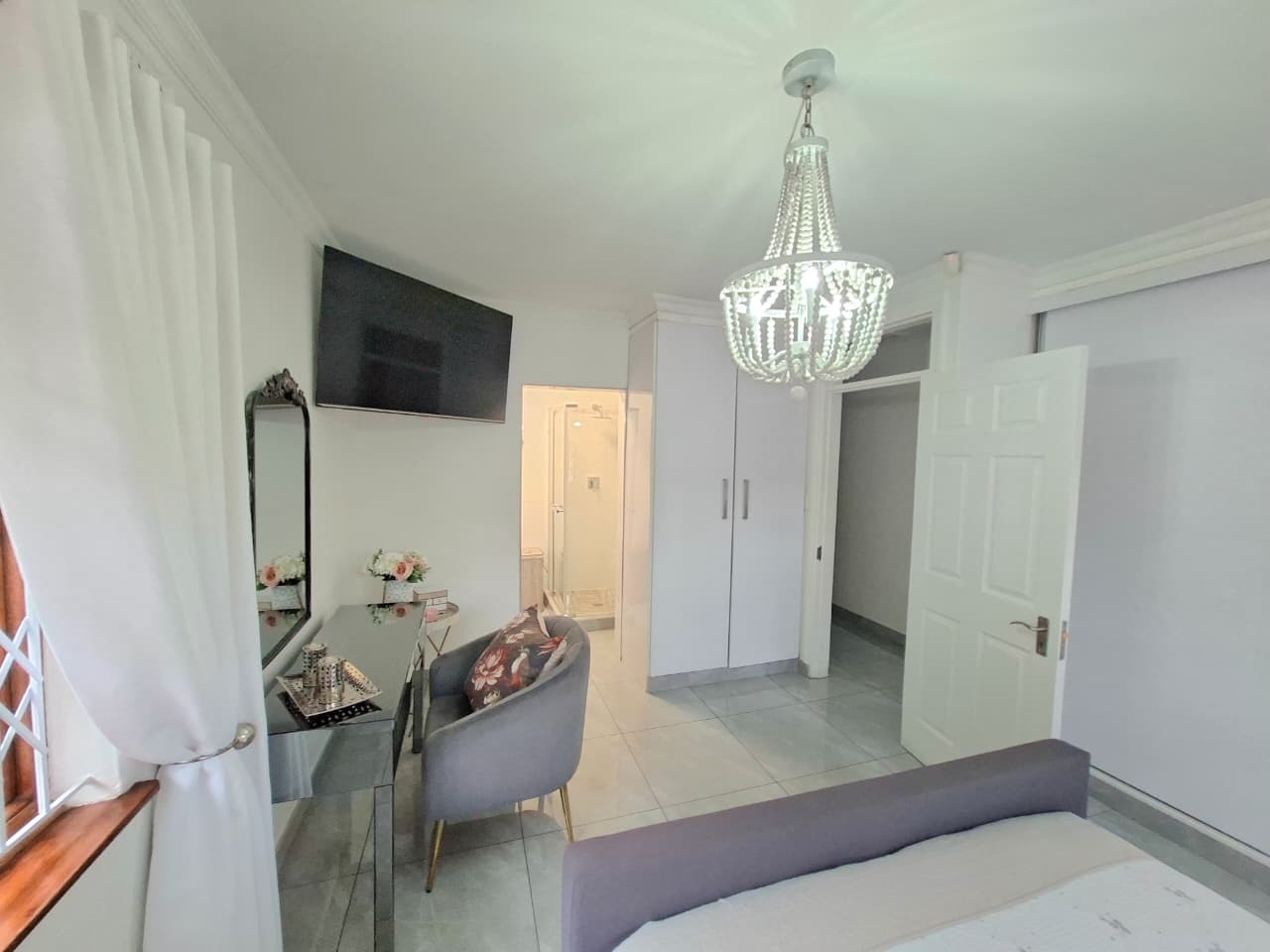 Discover this inviting residential property located in the coastal area of Isipingo Beach, Isipingo, South Africa. Boasting a generous Erf size of 1023 sqm, this home presents a freshly painted white exterior, a well-maintained tiled roof, and attractive wooden garage doors, contributing to its appealing kerb appeal. The property features a spacious paved driveway, offering ample parking with two garages and an additional six open parking spaces, all secured by a front entrance gate and modern boundary wall. The interior offers a comfortable and functional layout, including two lounges and two distinct dining areas, providing versatile living spaces. The main living room is neat and modern, featuring grey seating, coordinated black and white accents, and tiled floors. The heart of the home is a modern, open-plan kitchen, equipped with high-gloss white cabinets, sleek grey countertops, a subway tile backsplash, and integrated appliances including a gas range, oven, and extractor hood. A dedicated pantry provides additional storage. This residence comprises three well-proportioned bedrooms and three bathrooms, with one conveniently configured as an en-suite. The property prioritizes security with features such as an alarm system, access gate, perimeter fence, and burglar bars on windows, ensuring peace of mind. Practical amenities include water tanks and outside toilets, enhancing the home's functionality. The property is also wheelchair friendly. Isipingo Beach offers a desirable coastal lifestyle within the vibrant city of Isipingo. Its proximity to the beach provides opportunities for leisure and recreation, making it an attractive location for residents seeking a blend of convenience and seaside living. Key Features: * 3 Bedrooms, 3 Bathrooms (1 En-suite) * 2 Lounges, 2 Dining Areas * Modern Kitchen with Pantry * 2 Garages, 6 Parking Spaces * Erf Size: 1023 sqm * Enhanced Security: Alarm, Access Gate, Fence, Burglar Bars, Totally Walled * Paved Driveway * Water Tanks, Outside Toilets * Wheelchair Friendly