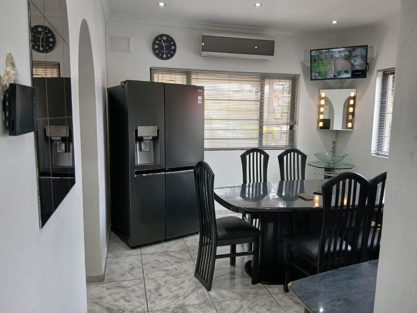 Discover this expansive family residence situated on a generous 1407 sqm erf in the established suburb of Isipingo Hills. The property features a functional exterior with a light brown facade and a paved driveway offering ample parking for up to six vehicles. Security is paramount, with a totally walled perimeter, burglar bars, an alarm system, and CCTV surveillance ensuring peace of mind. A large rainwater harvesting tank enhances sustainability. Step inside to find a well-appointed interior designed for comfortable living. The home includes a dedicated lounge with tiled flooring and an air conditioning unit, alongside a separate dining room. The kitchen boasts modern grey cabinetry, black countertops, a tiled backsplash, and a built-in hob and oven, complemented by an island. With seven spacious bedrooms and four bathrooms, this residence offers abundant accommodation for larger families or versatile space. Outdoor living is a highlight, featuring a spacious covered patio or veranda perfect for alfresco dining and relaxation. The expansive green yard includes a dedicated children's play area with swings and a slide, ideal for family enjoyment. Mature trees and a wooden privacy fence create a secluded atmosphere, while the property is pet-friendly, allowing furry companions to roam freely. Located in Isipingo Hills, this property offers suburban living within the vibrant city of Isipingo. The area provides a convenient setting for families, with access to local amenities and a community atmosphere. Key Features: * 7 Bedrooms, 4 Bathrooms * Lounge, Dining Room, Kitchen * 1 Garage, 6 Parking Spaces * 1407 sqm Erf Size * Covered Patio/Veranda * Spacious Green Yard with Play Area * Alarm System, CCTV, Burglar Bars * Rainwater Harvesting Tank * Pet-Friendly