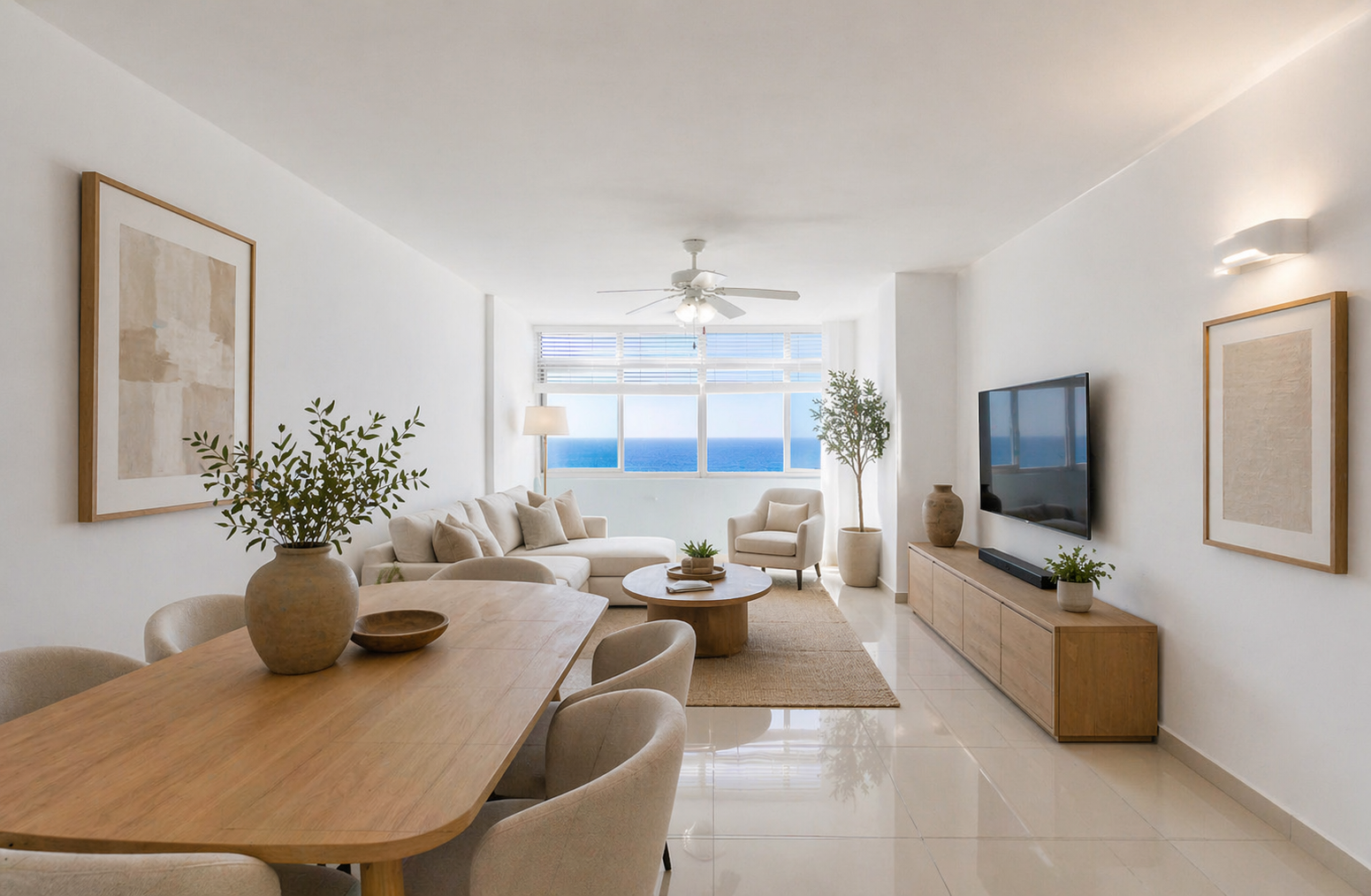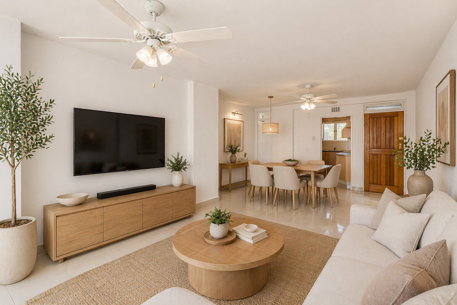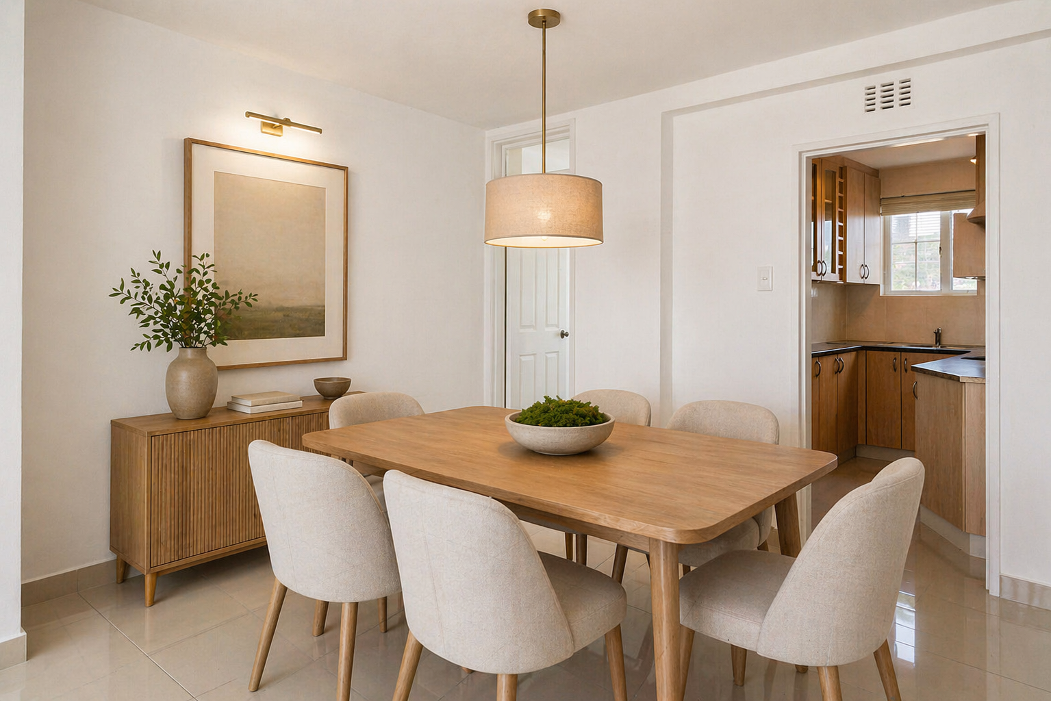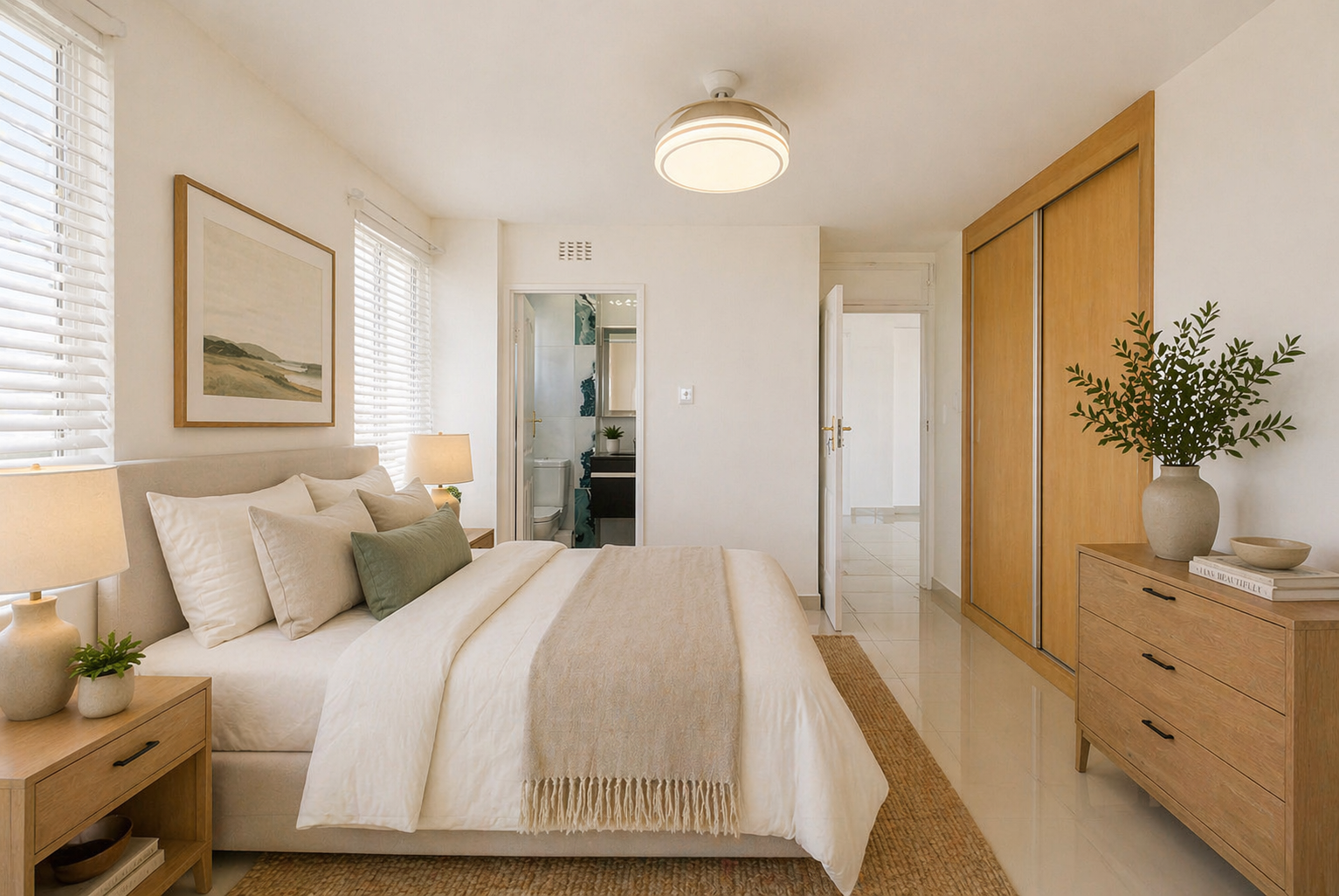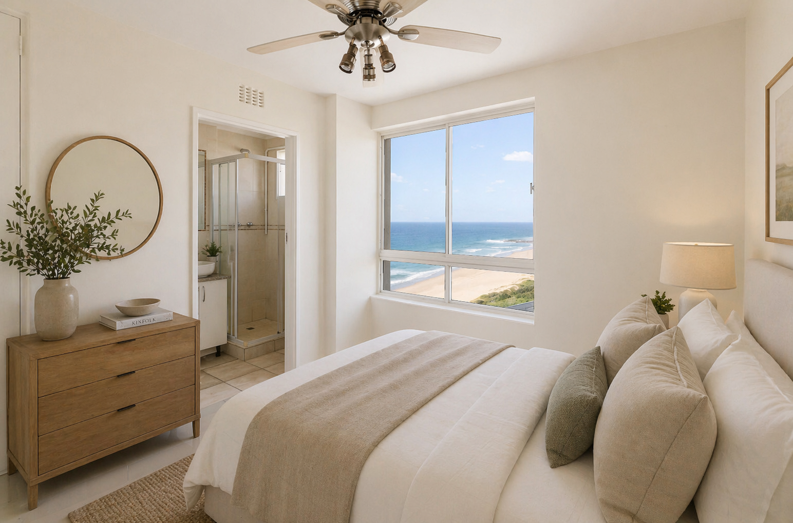 Open-plan living space, designed to maximise natural light and create an airy atmosphere. The well-appointed kitchen flows comfortably to the dining and lounge areas. Both bedrooms are generously sized, each complemented by modern bathrooms.
