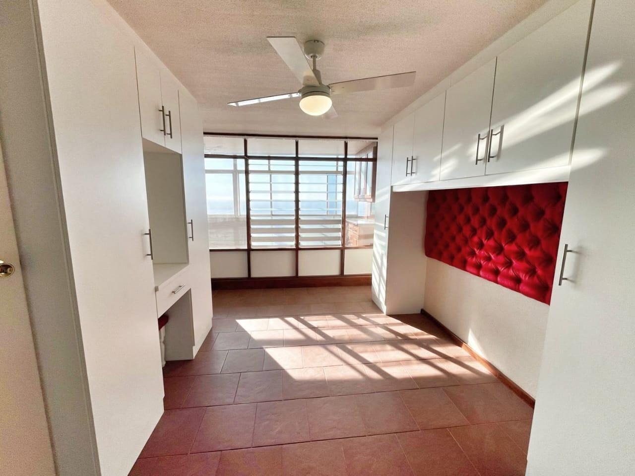 Both bedrooms are designed for comfort, featuring built-in wardrobes for extensive storage and ceiling fans for climate control. One bedroom benefits from an ensuite bathroom, enhancing privacy and convenience. Large windows in key rooms frame stunning sea views, allowing natural light to flood the space and creating a serene coastal ambiance.