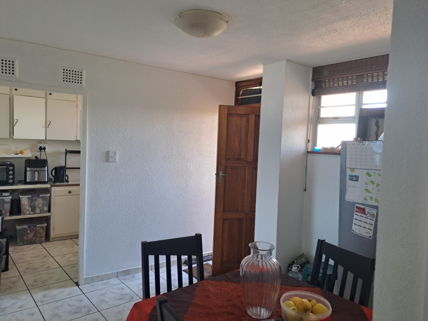 Fully tiled 2 bedroom, 2 bathroom apartment with a lounge, separate dining room, Bonus: lock up garage and a municipality pre-paid meter.