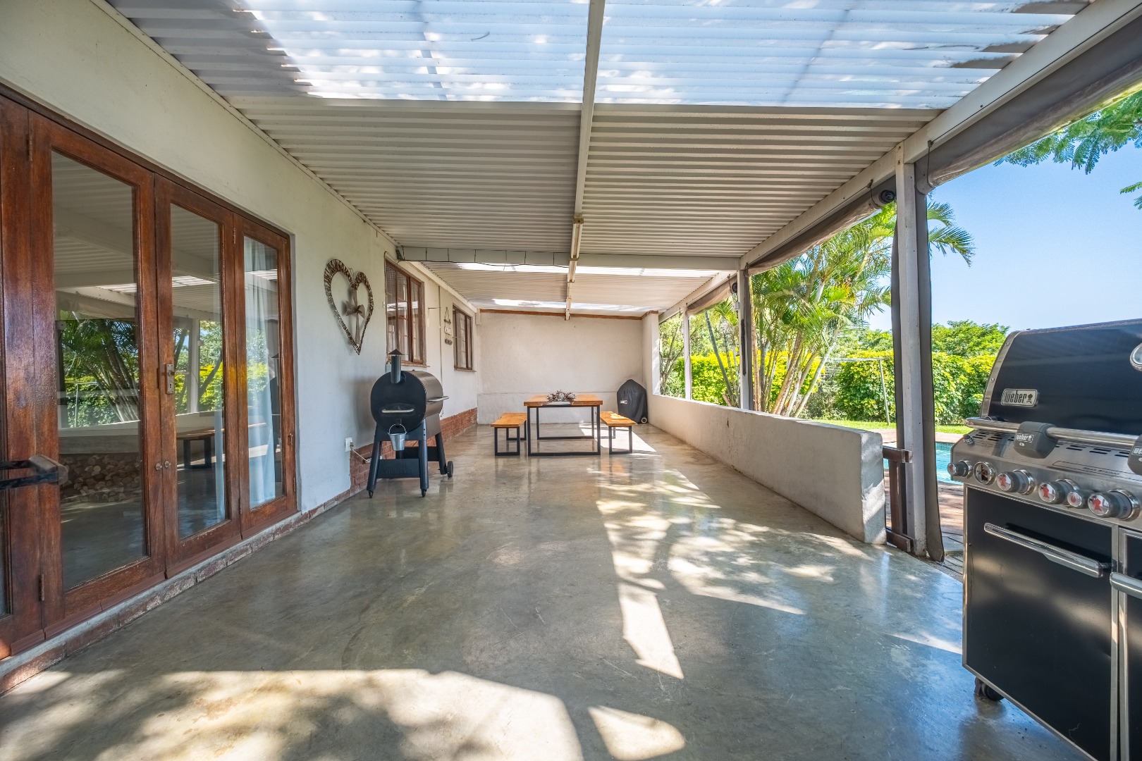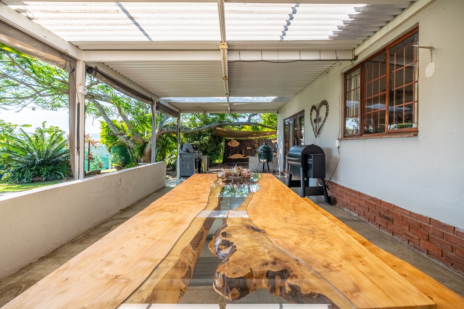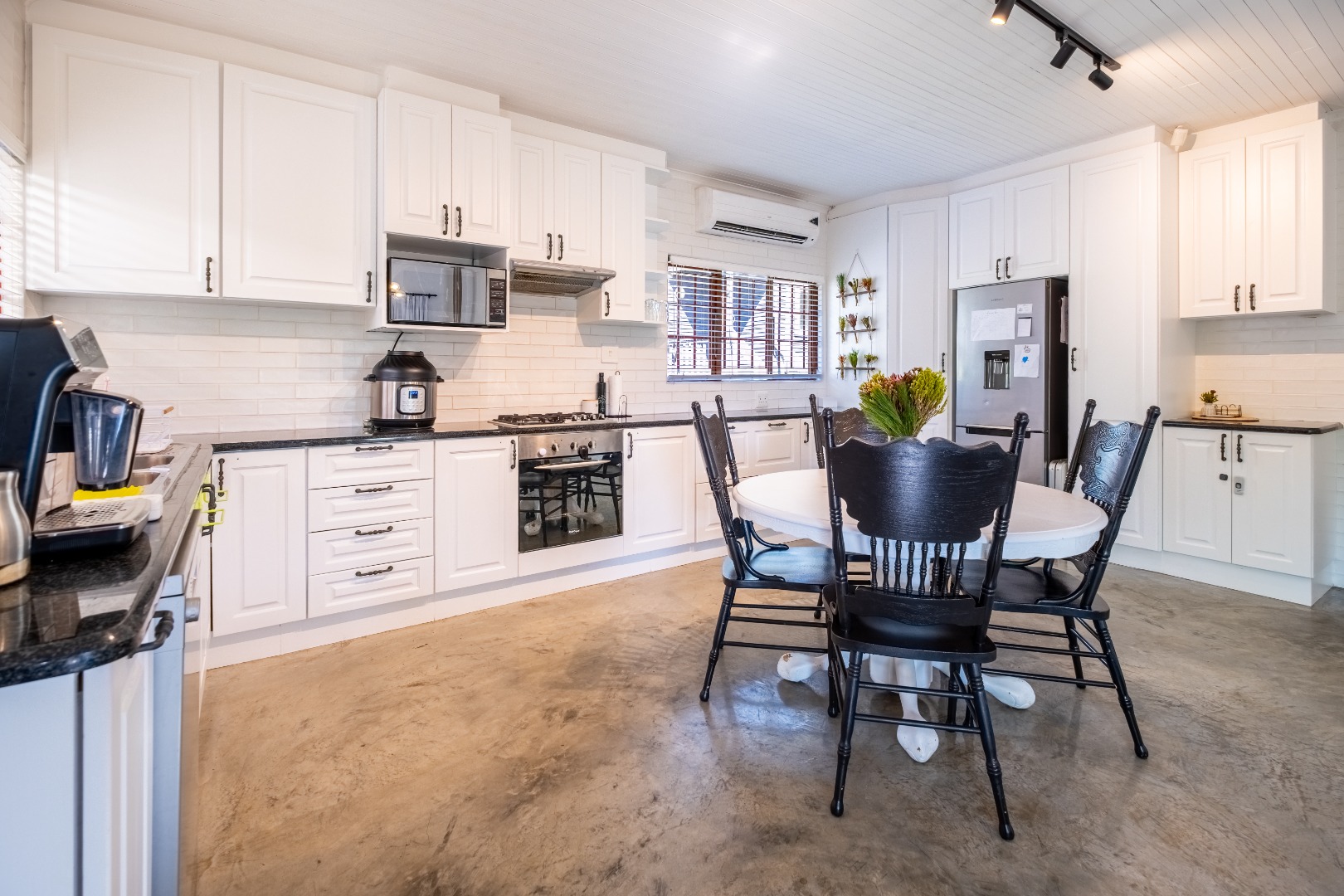 Discover this charming 3-bedroom, 2-bathroom home nestled in the serene suburb of Lower Illovo, offering a tranquil country living experience with breathtaking scenic views. The residence boasts an inviting open-plan layout, featuring modern polished concrete flooring throughout, complemented by air conditioning for year-round comfort. The spacious lounge is a focal point, complete with a contemporary wood-burning stove and large glass doors that seamlessly connect indoor and outdoor living spaces, providing lush green views.