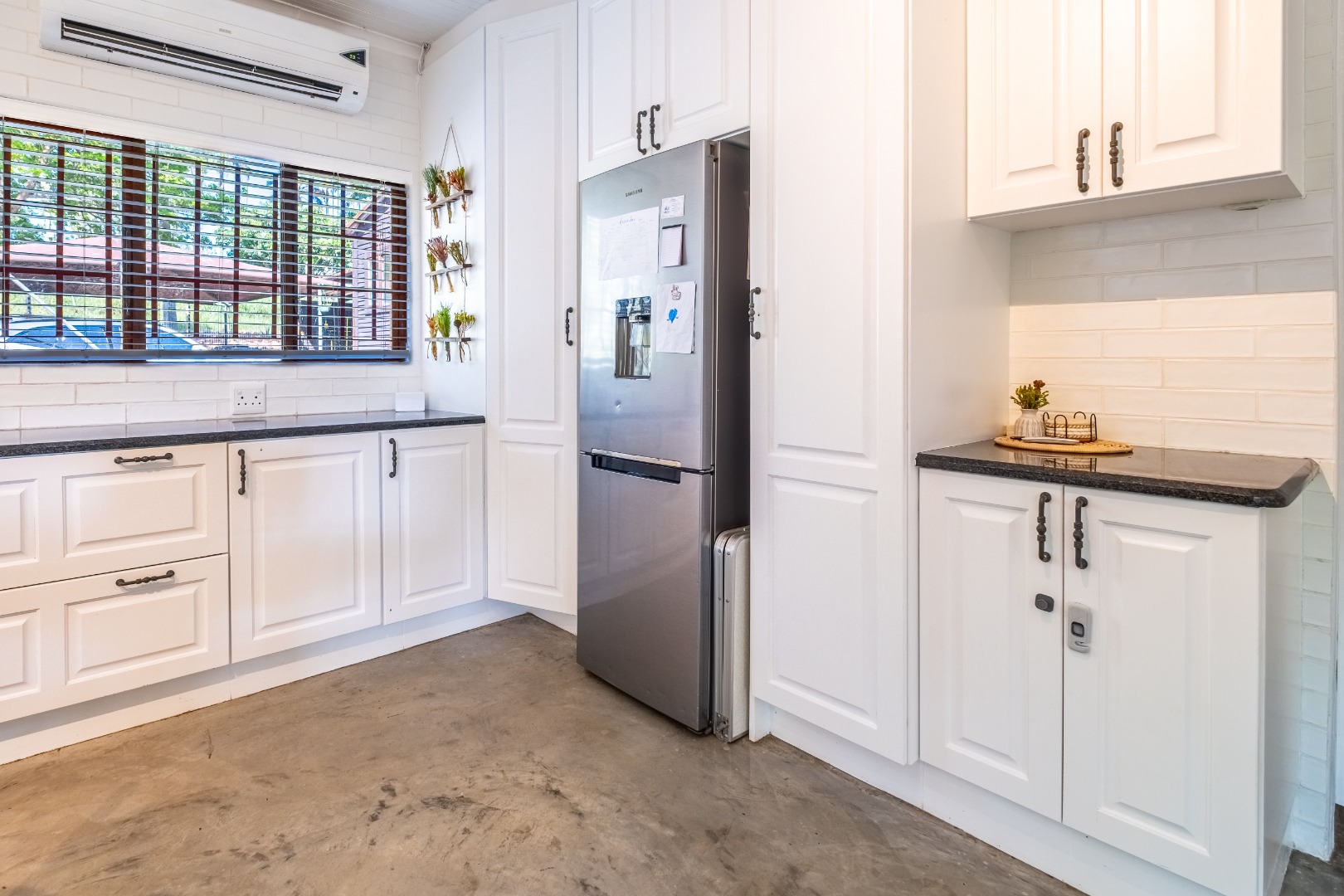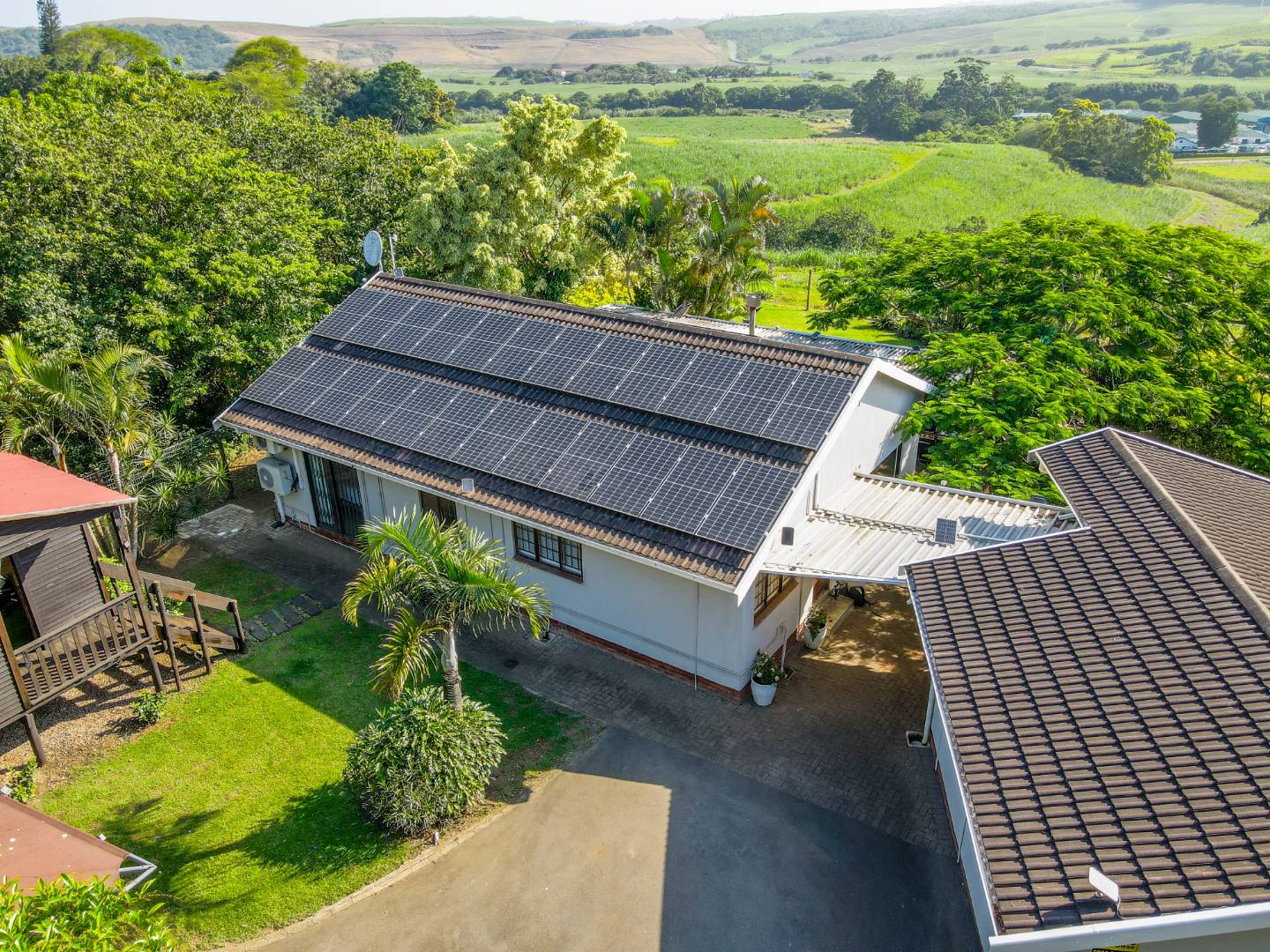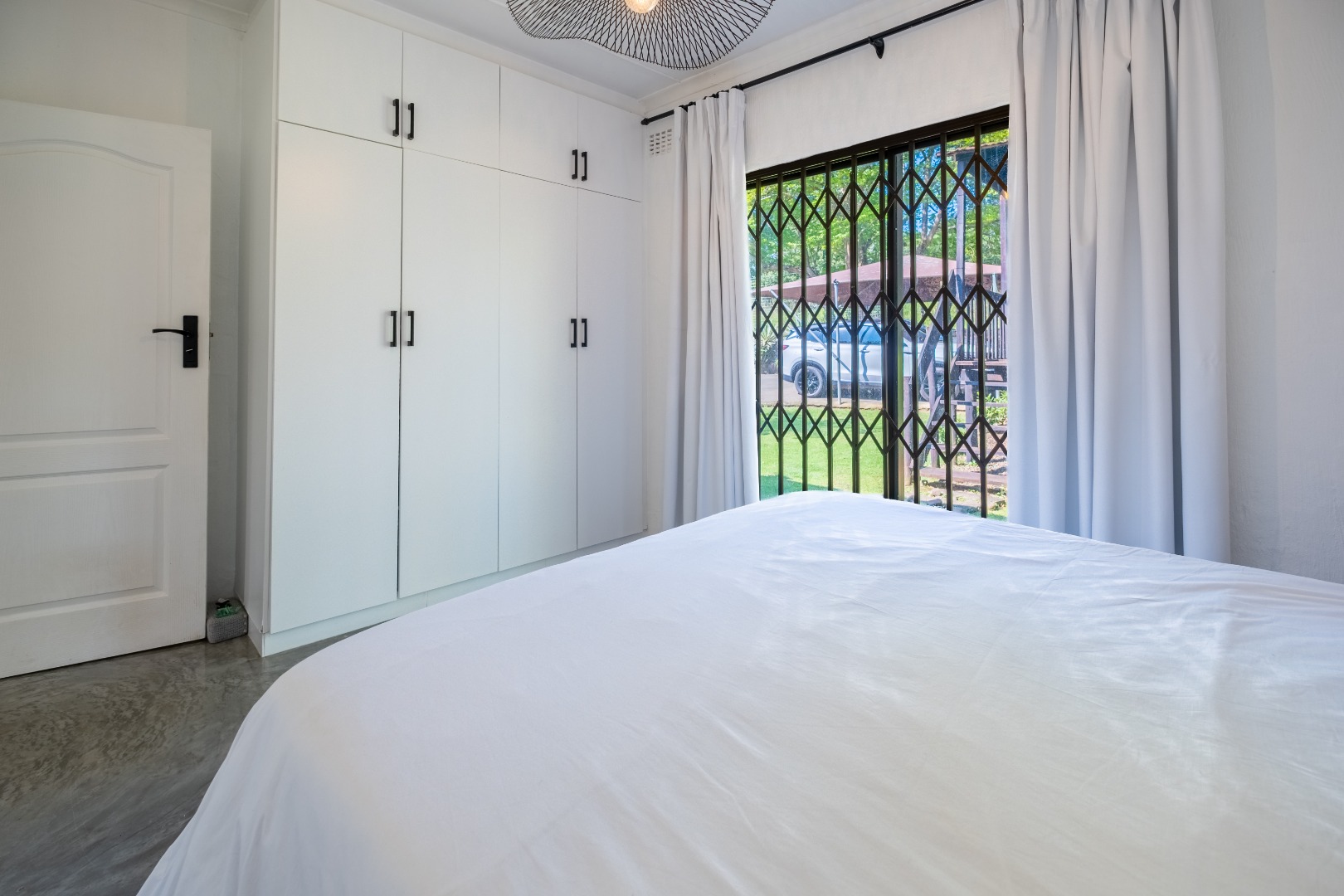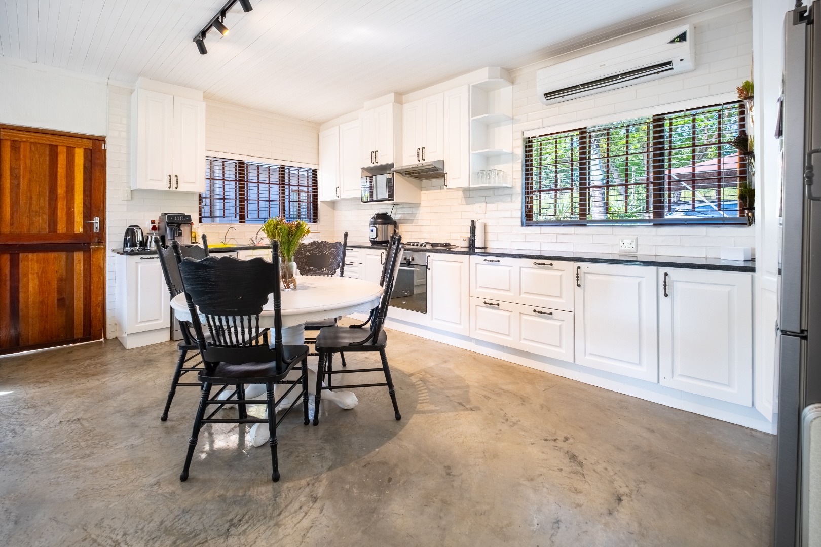 Discover this charming 3-bedroom, 2-bathroom home nestled in the serene suburb of Lower Illovo, offering a tranquil country living experience with breathtaking scenic views. The residence boasts an inviting open-plan layout, featuring modern polished concrete flooring throughout, complemented by air conditioning for year-round comfort. The spacious lounge is a focal point, complete with a contemporary wood-burning stove and large glass doors that seamlessly connect indoor and outdoor living spaces, providing lush green views.