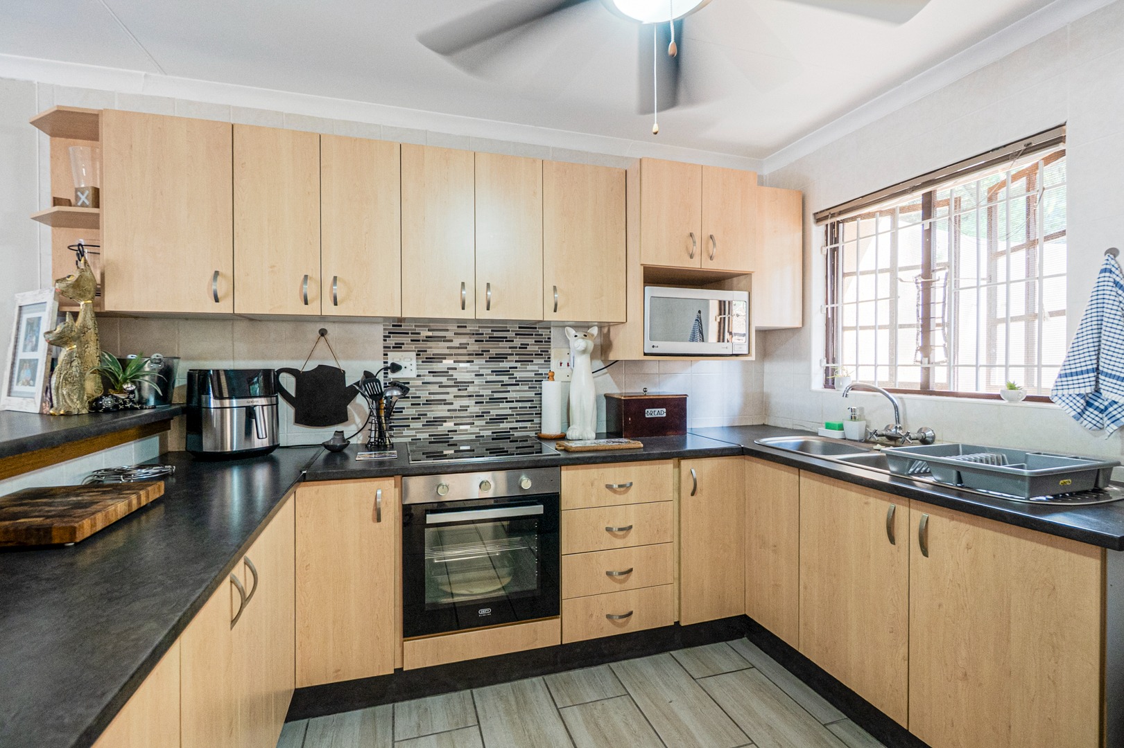 Accommodation comprises two comfortable bedrooms and a well-appointed bathroom. Practical elements include a single garage and an additional parking space, catering to your vehicle needs. For peace of mind, the property benefits from an access gate and fitted burglar bars, enhancing security. Pets are also welcome, making this an ideal home for animal lovers.