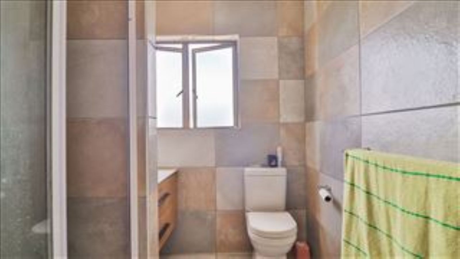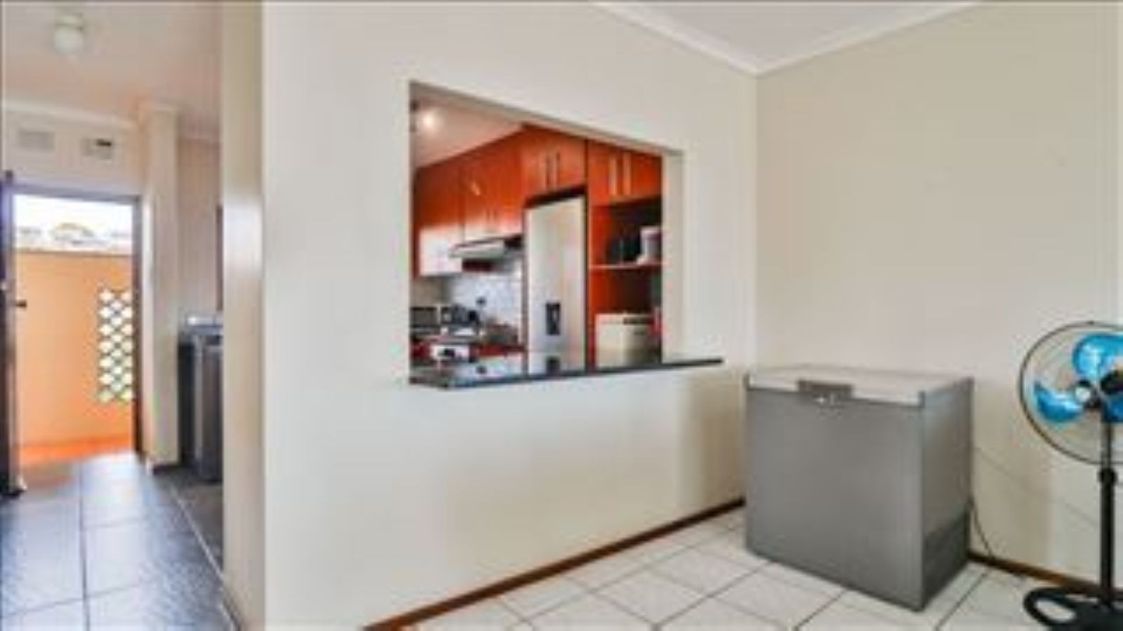 Step inside and you'll find a welcoming open-plan living and dining area, great for chilling out or having friends over. The tiled flooring throughout makes it easy to keep neat, and a ceiling fan keeps things breezy. The kitchen is a real highlight with its modern cabinets, sleek black granite countertops, , oven, hob and extractor fan. Plus, there's a handy open cove that connects to the dining area, making entertaining a breeze.