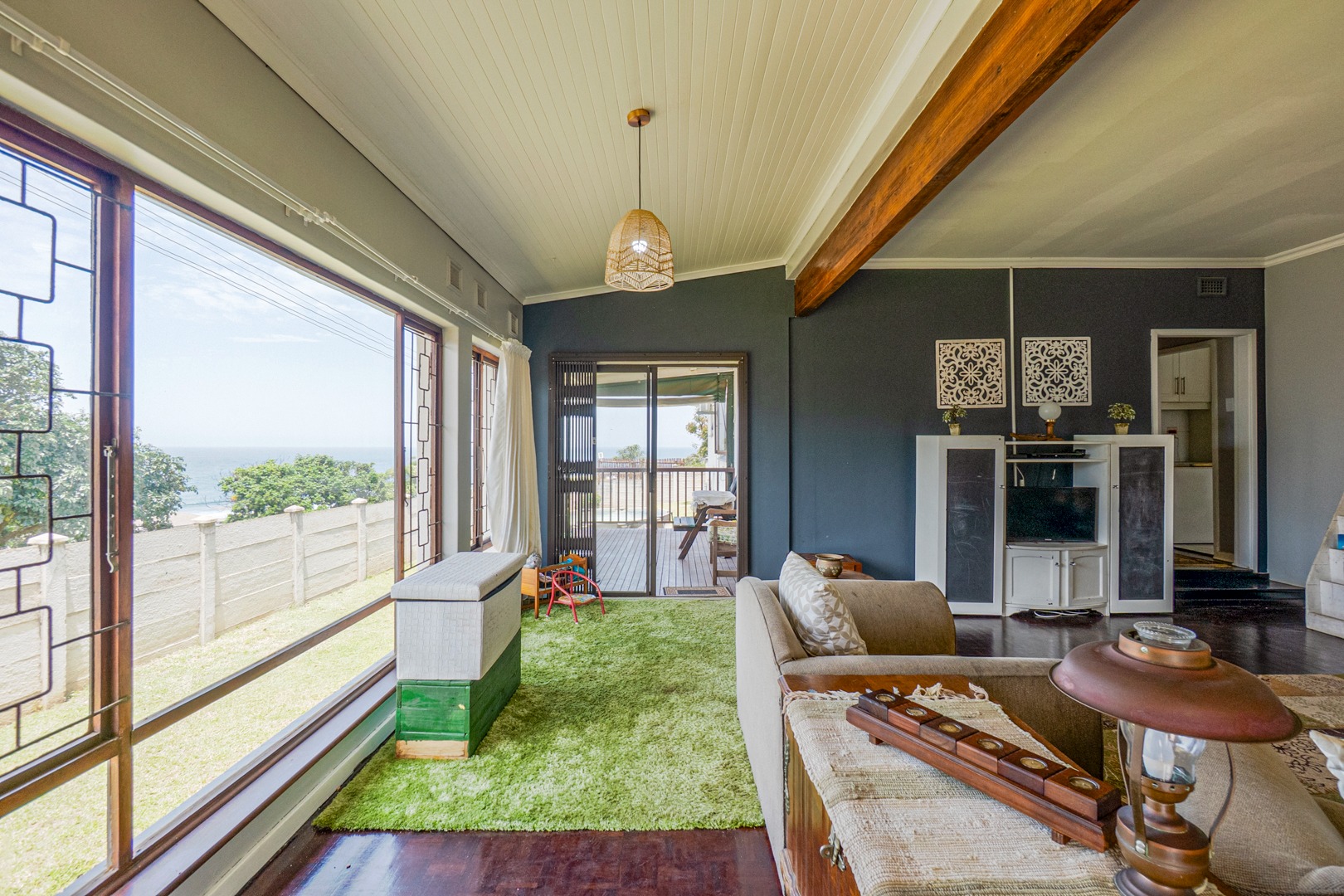 Positioned on rare, pancake-flat corner land in the heart of Warner Beach, Amanzimtoti, this elegant white coastal home offers space, comfort, and breathtaking ocean breaker sea views.