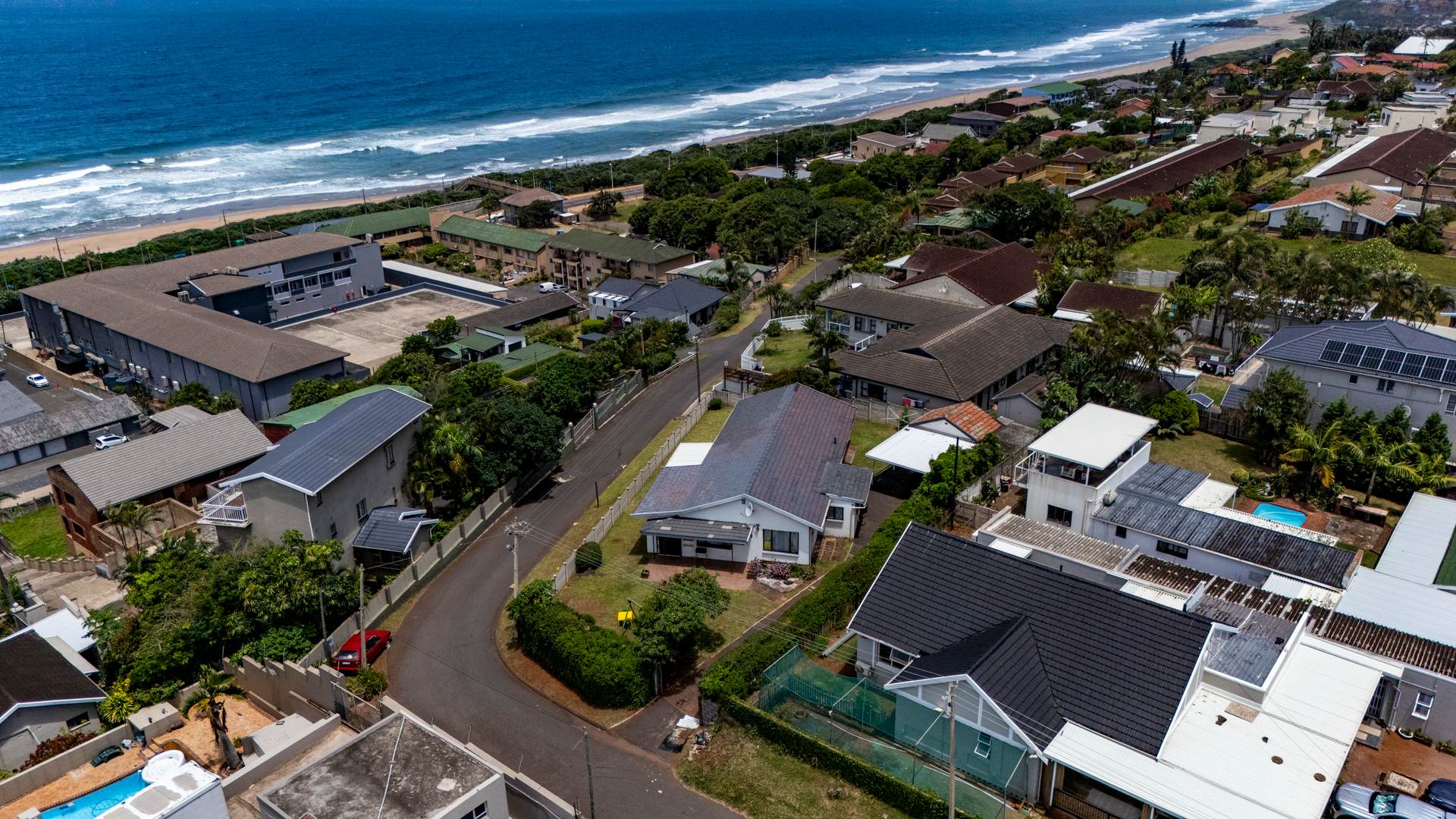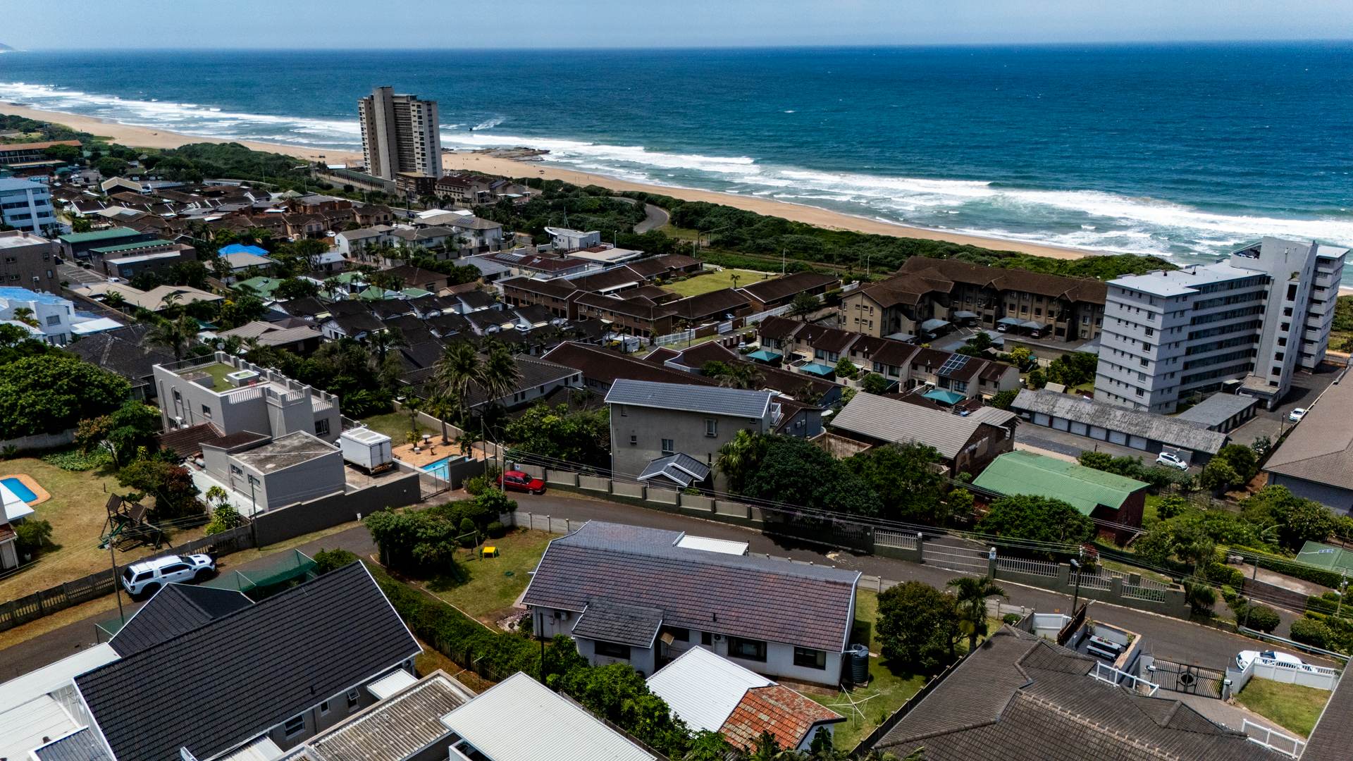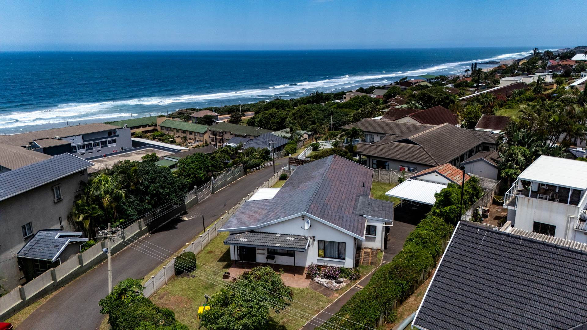 Positioned on rare, pancake-flat corner land in the heart of Warner Beach, Amanzimtoti, this elegant white coastal home offers space, comfort, and breathtaking ocean breaker sea views.