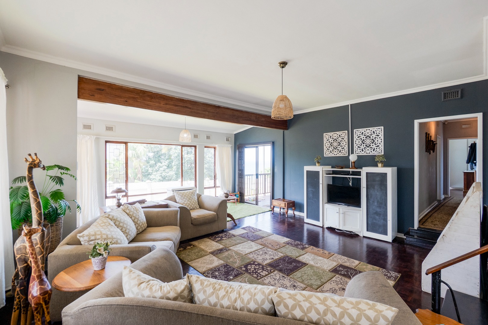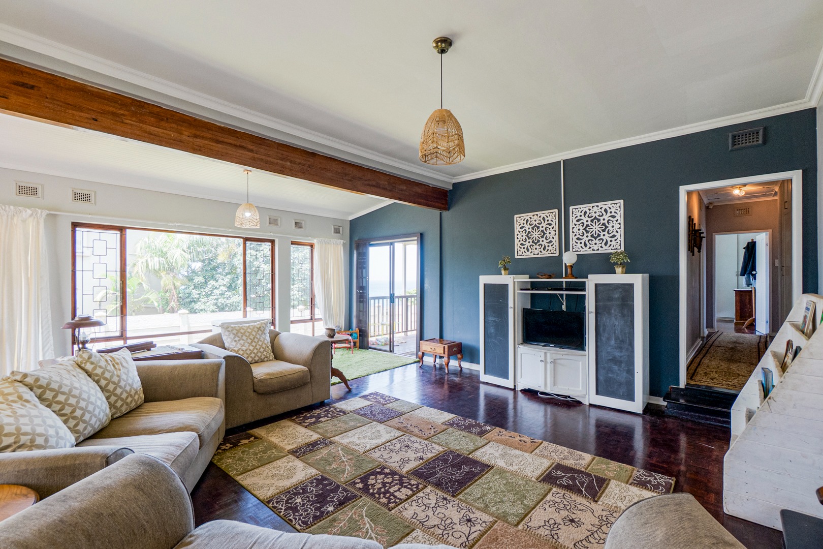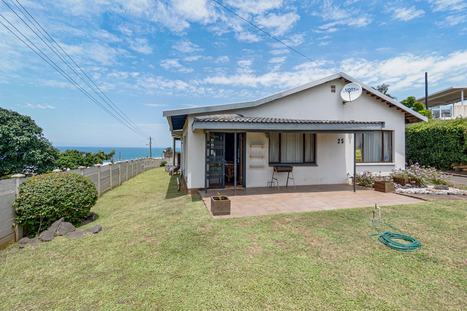 Positioned on rare, pancake-flat corner land in the heart of Warner Beach, Amanzimtoti, this elegant white coastal home offers space, comfort, and breathtaking ocean breaker sea views.