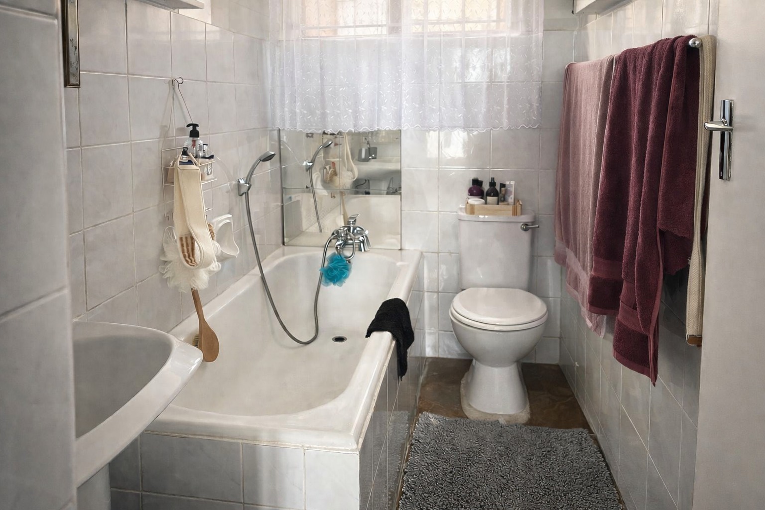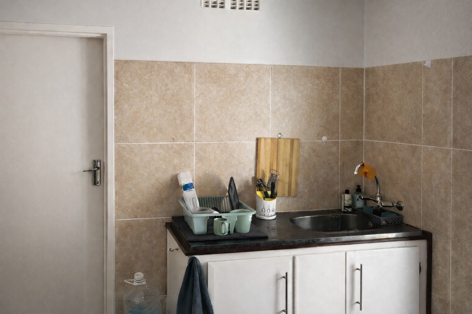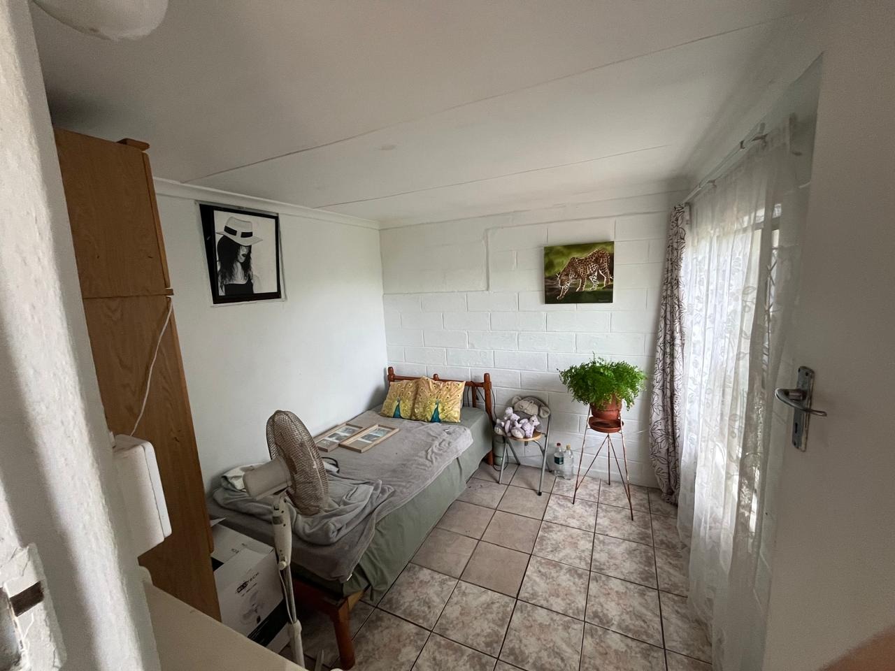 Comfort extends to the two well-proportioned bedrooms, each with tiled flooring, with windows offering natural light and privacy. The single bathroom is conveniently located to serve the household.