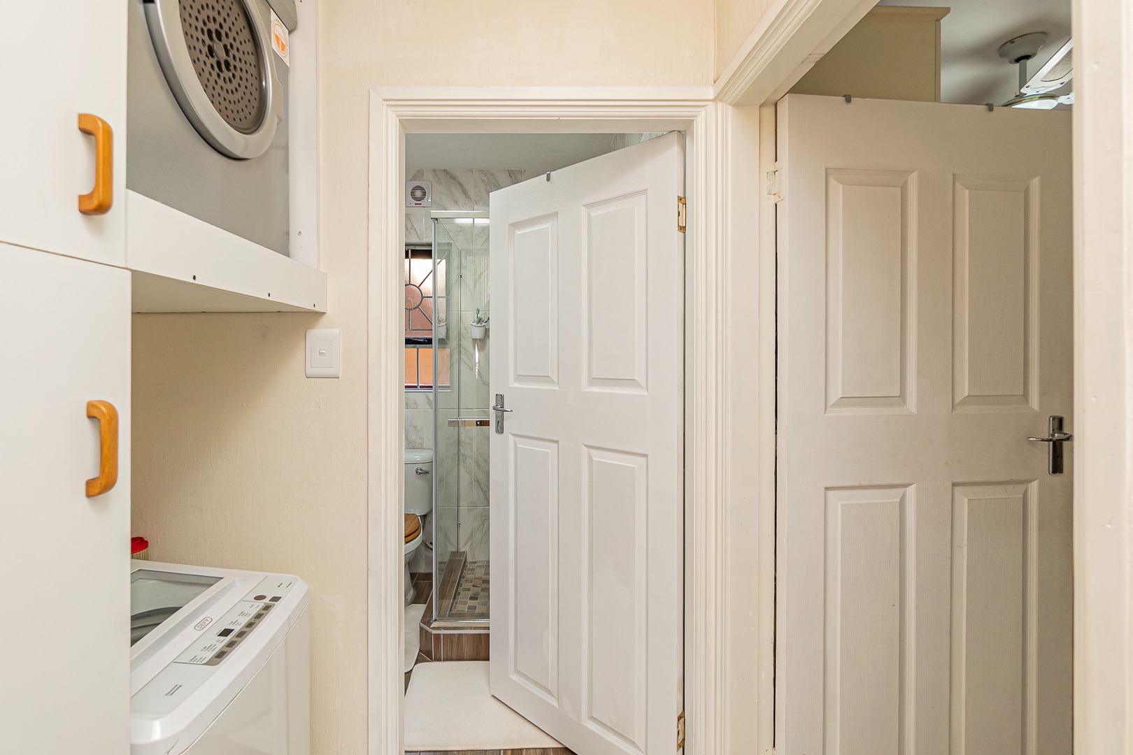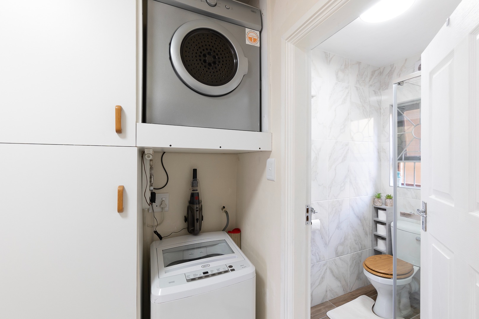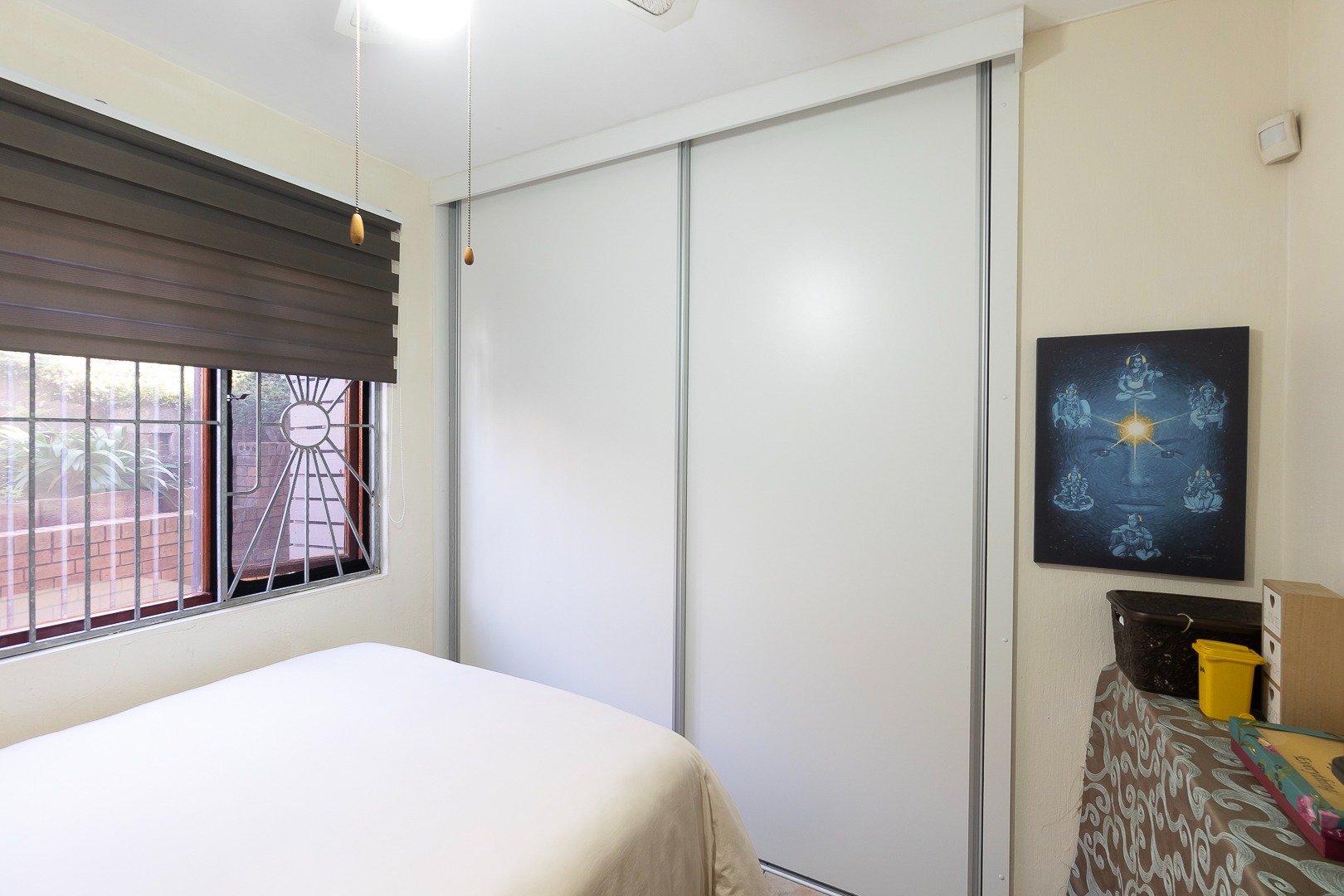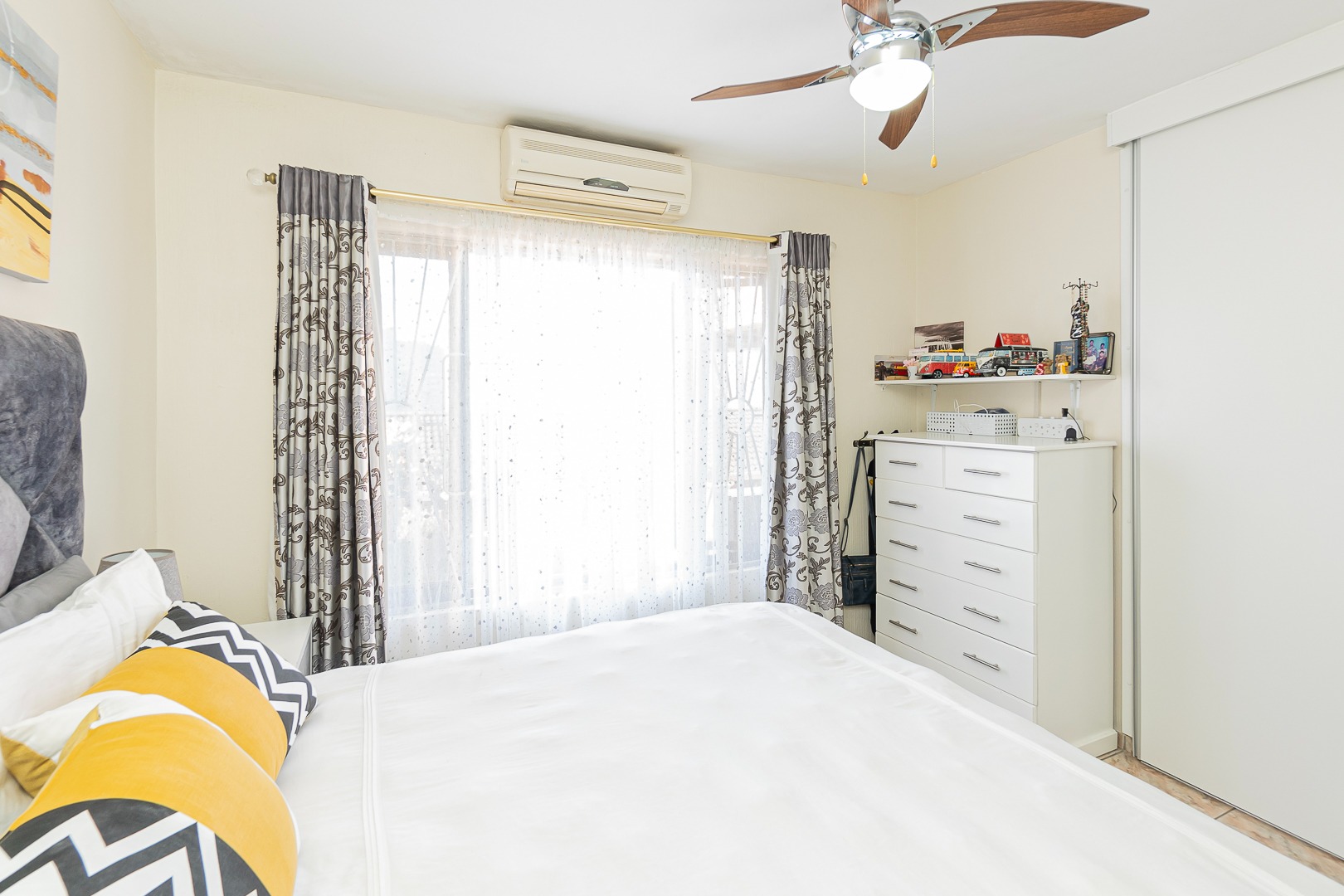 Underroof patio with outdoor blinds. The unit has an air conditioner, ceiling fans and an invertor with a lithium battery as well as insect and monkey screens.