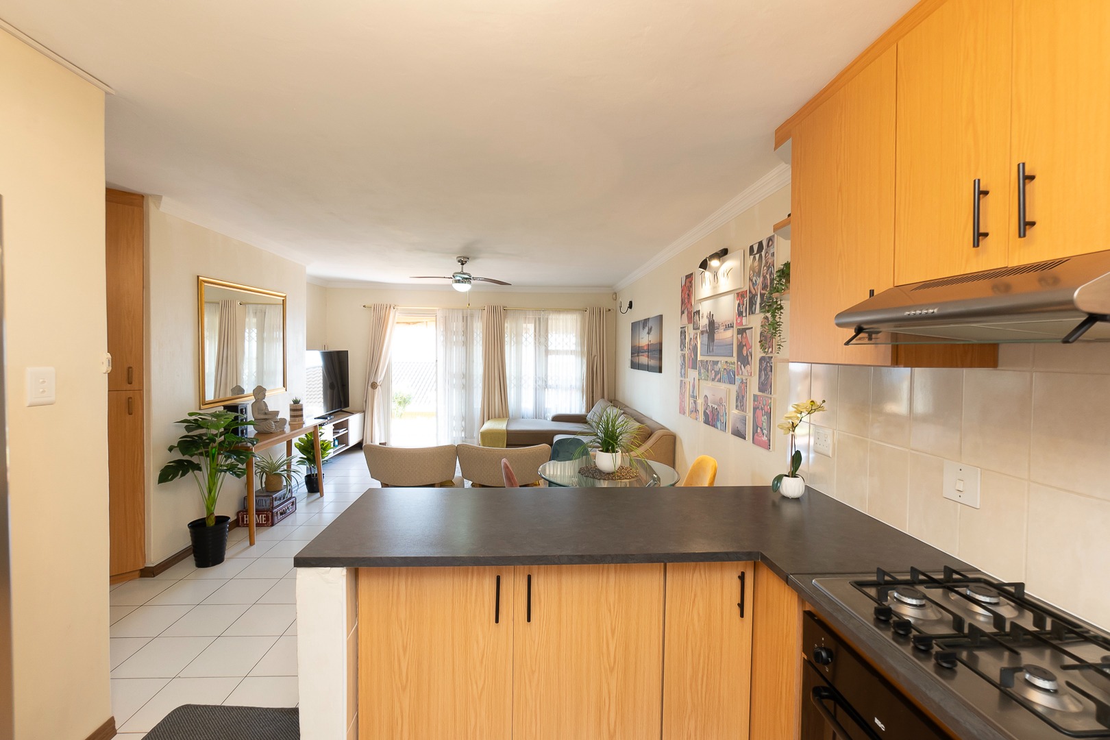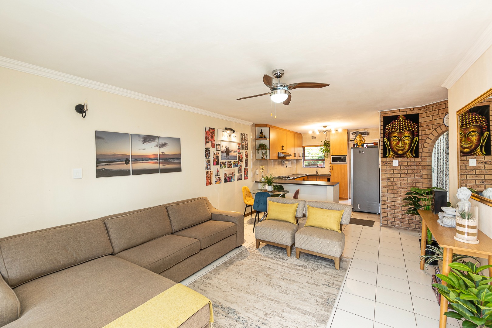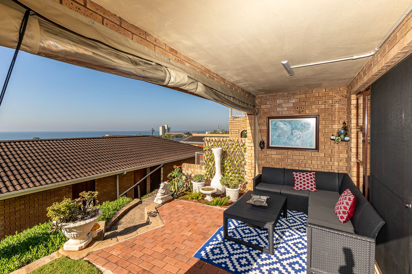 Underroof patio with outdoor blinds. The unit has an air conditioner, ceiling fans and an invertor with a lithium battery as well as insect and monkey screens.
