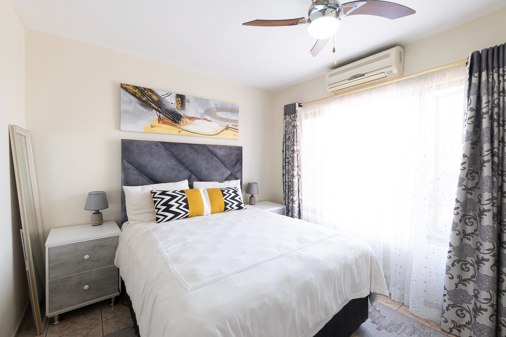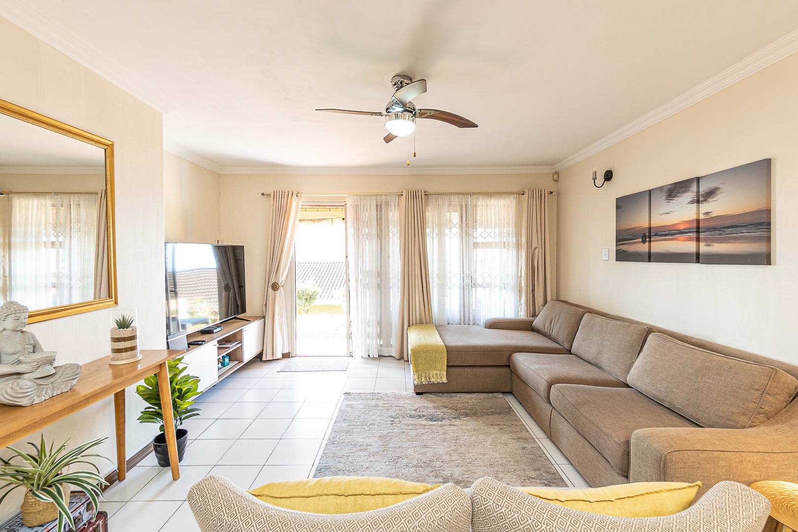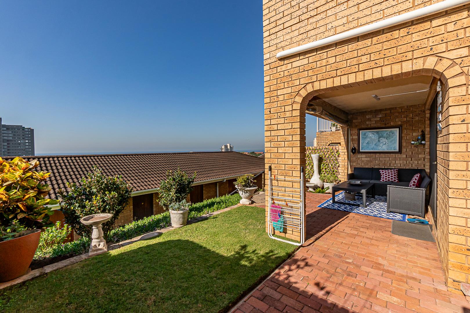 Underroof patio with outdoor blinds. The unit has an air conditioner, ceiling fans and an invertor with a lithium battery as well as insect and monkey screens.