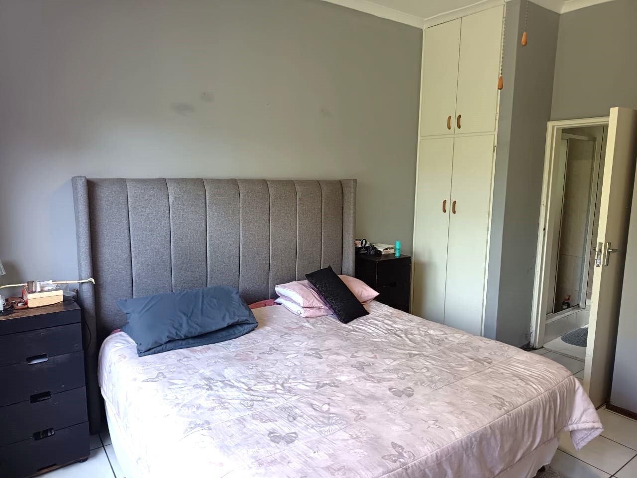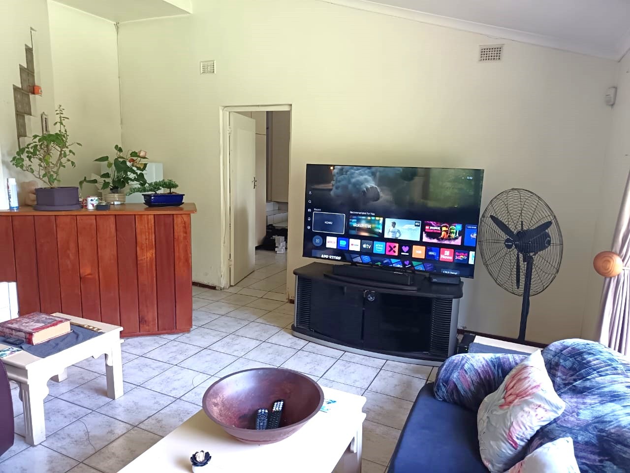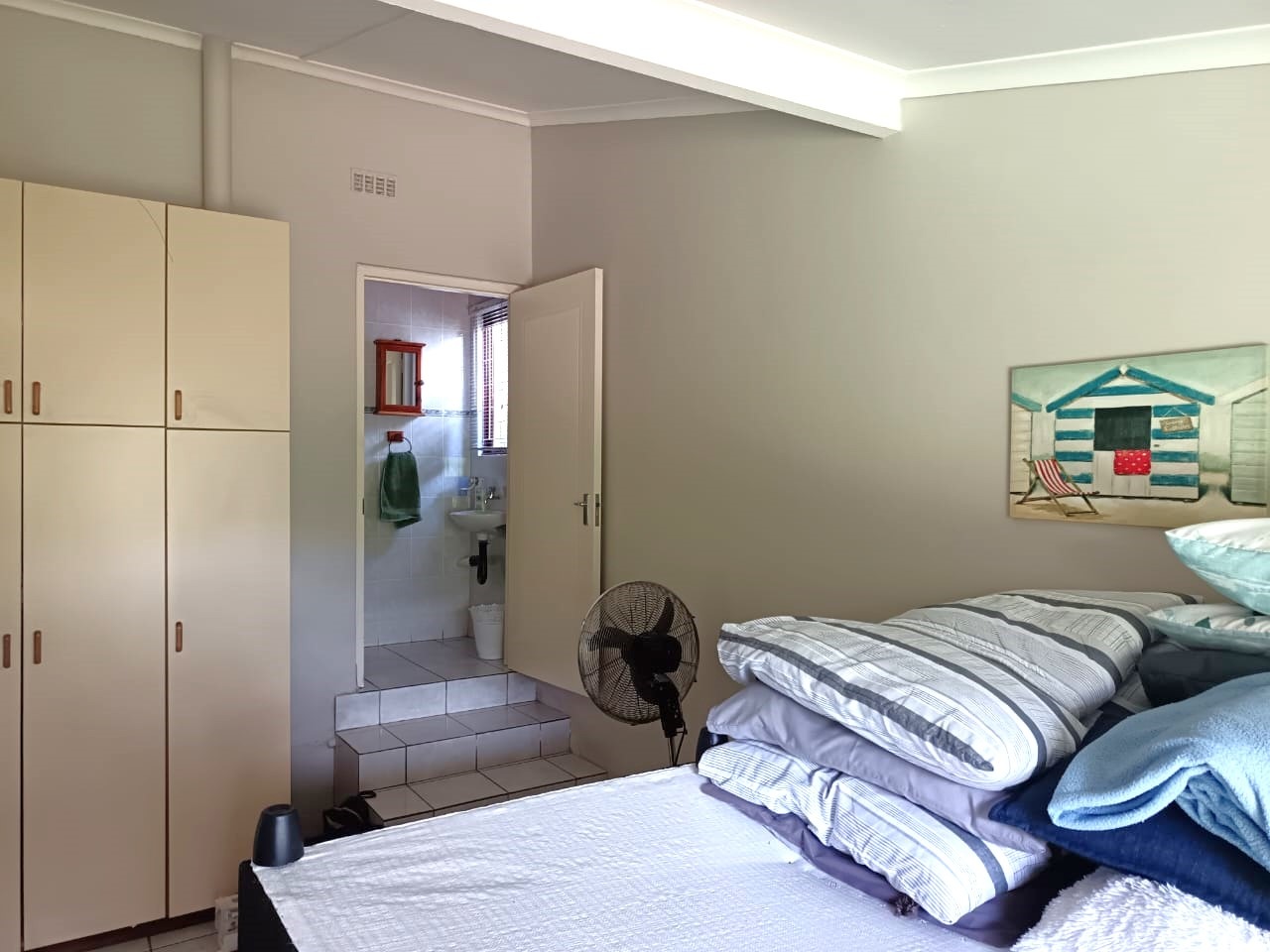 bedrooms, all fitted with built-in cupboards and ceiling fans. There are three
