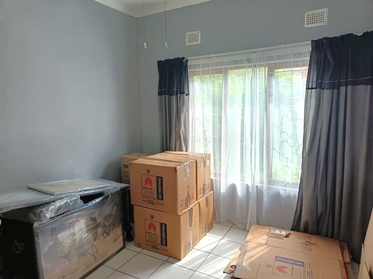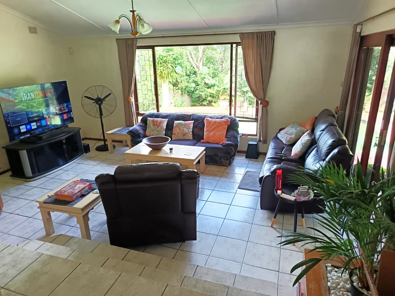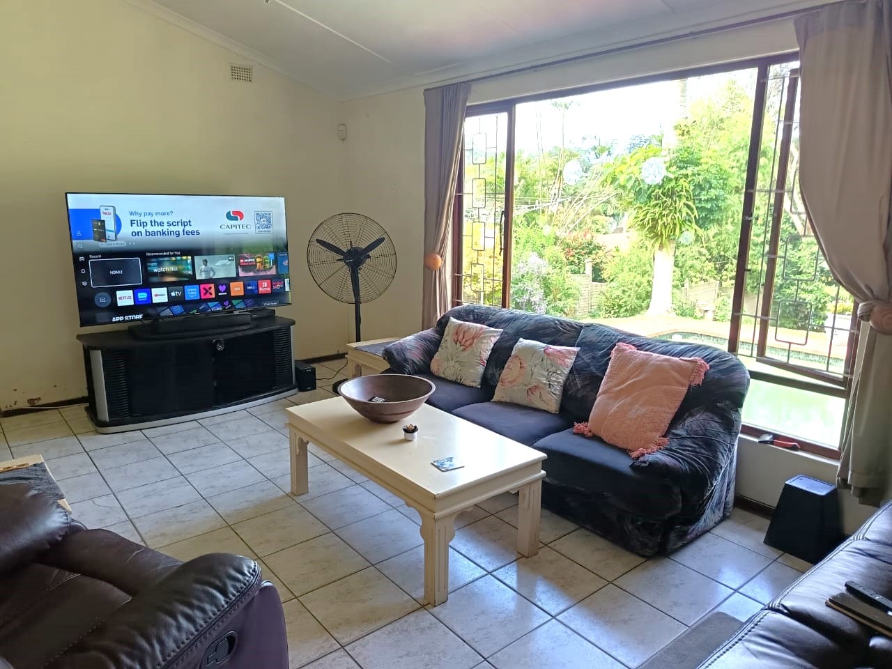 bedrooms, all fitted with built-in cupboards and ceiling fans. There are three