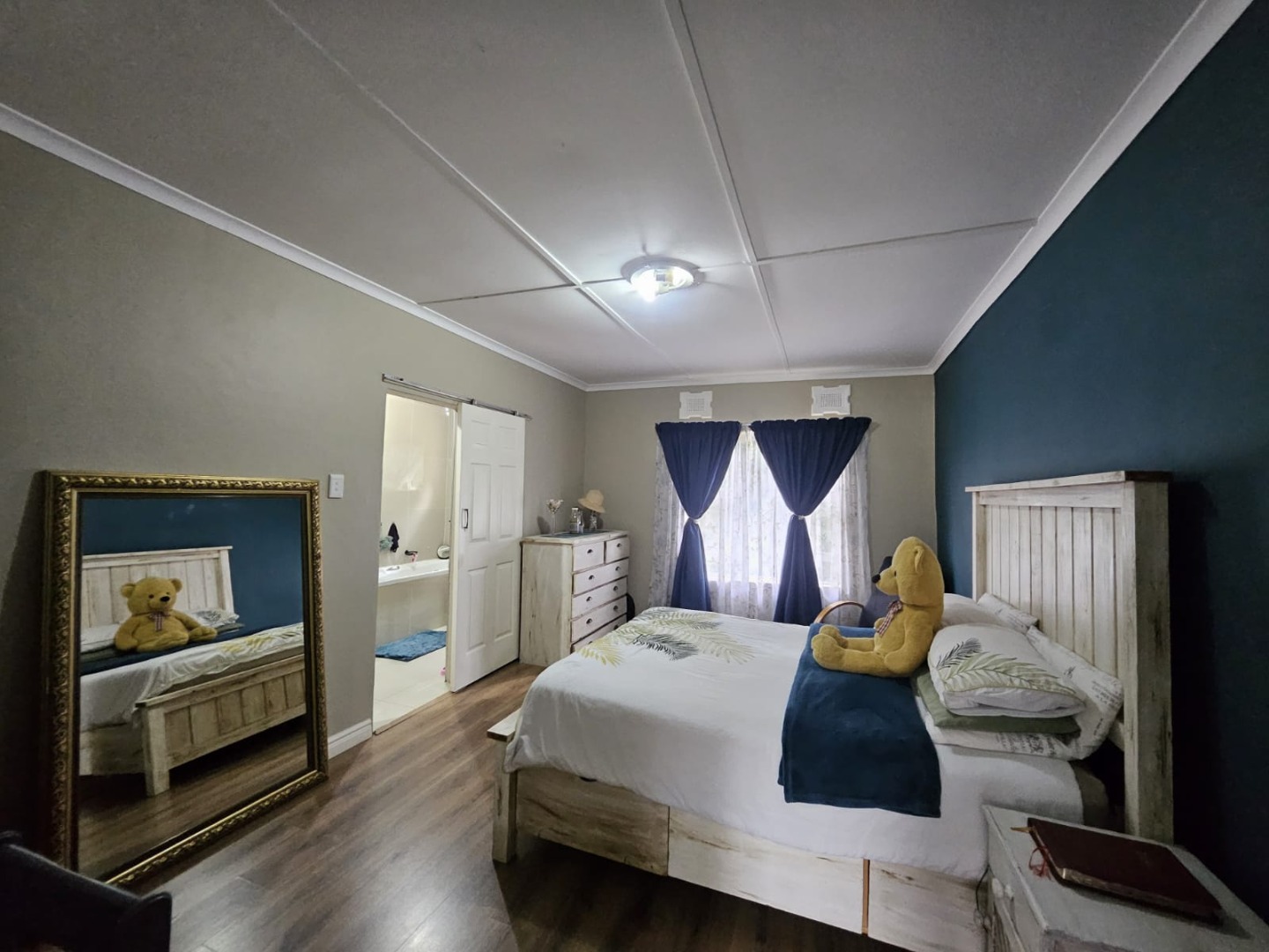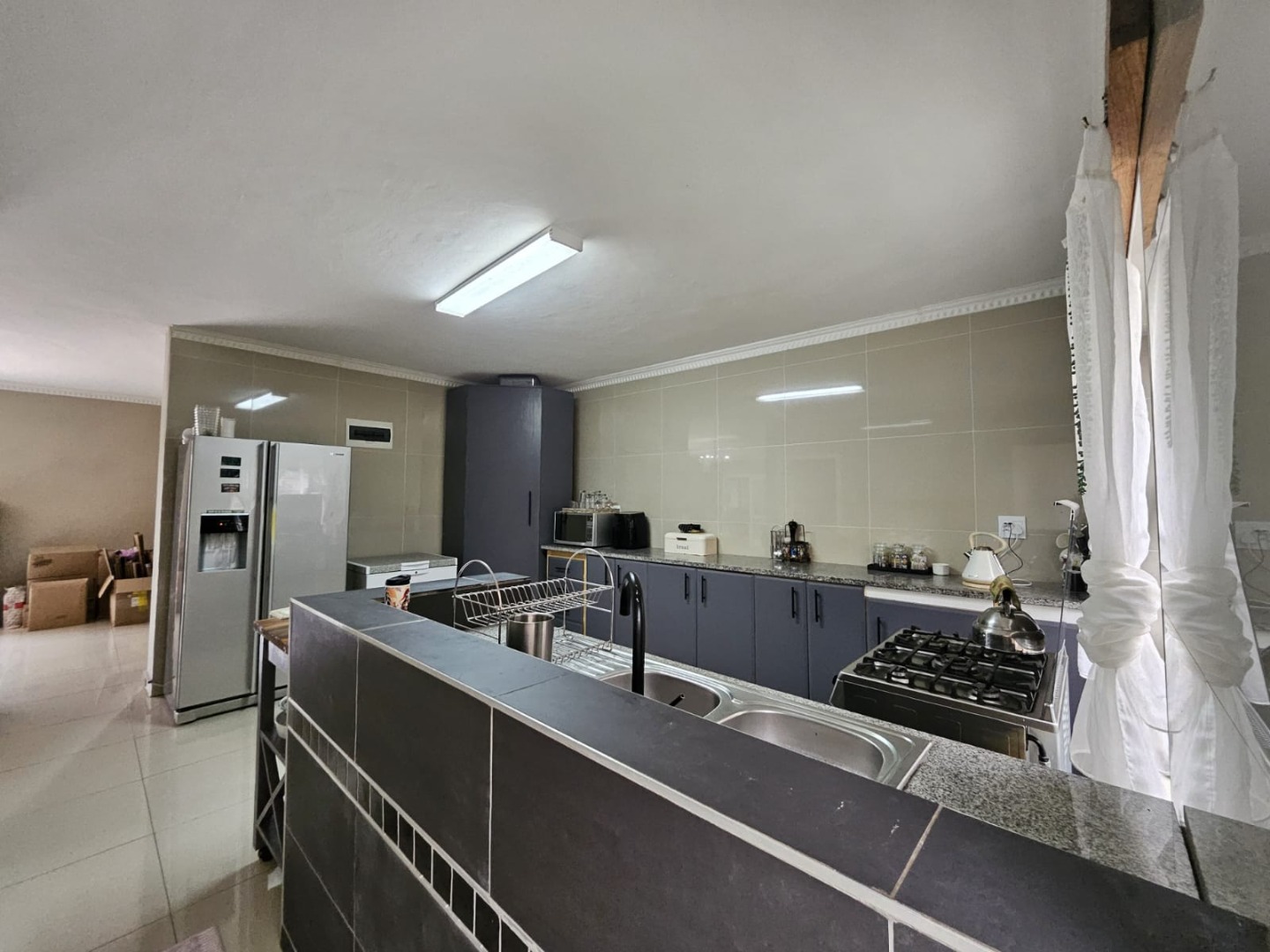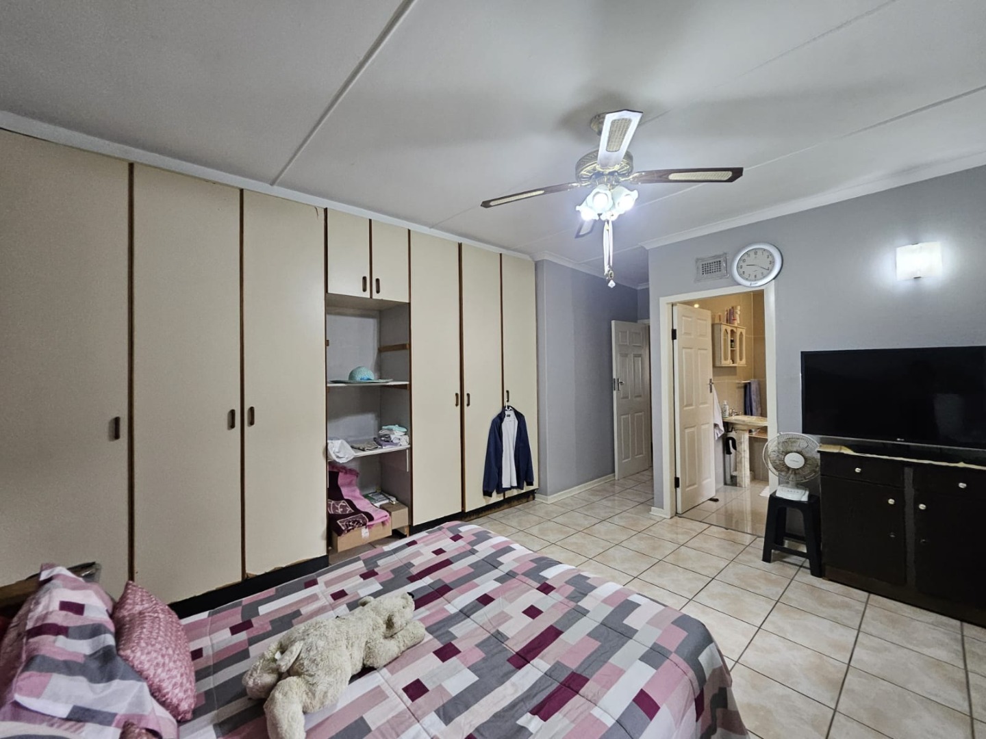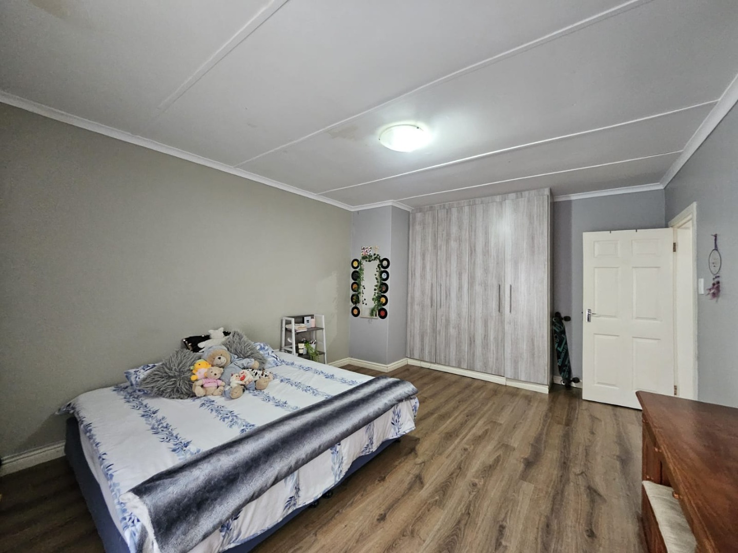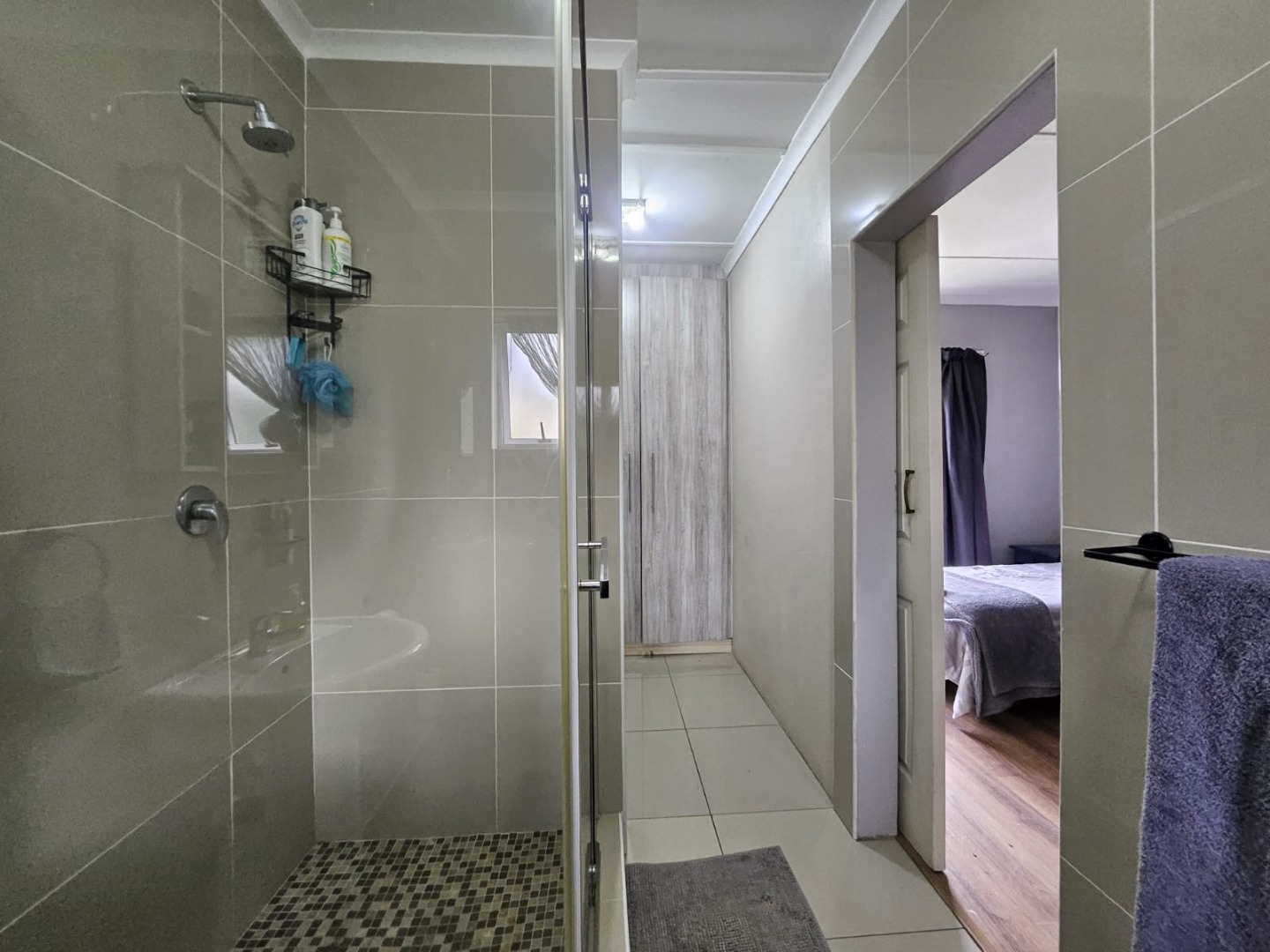 The property includes a separate double garage and an expansive paved driveway, accommodating up to six vehicles, ensuring ample parking. Large windows and sliding doors invite natural light. Outdoor amenities feature a built-in braai and a garden, perfect for enjoyment. Pets are allowed, making this a welcoming home.