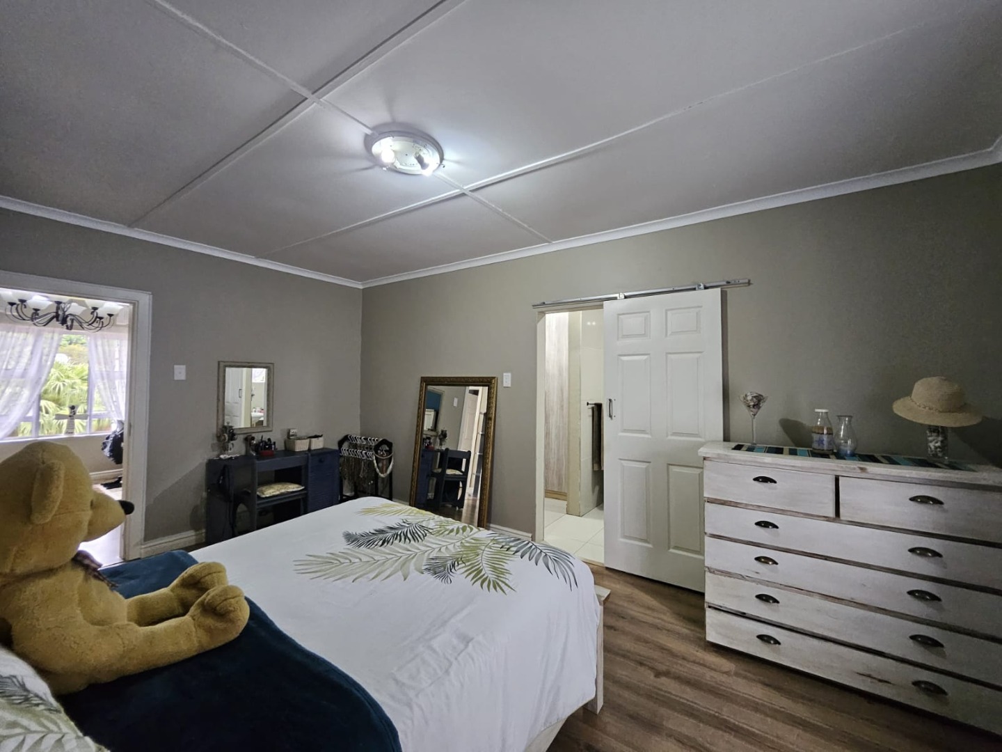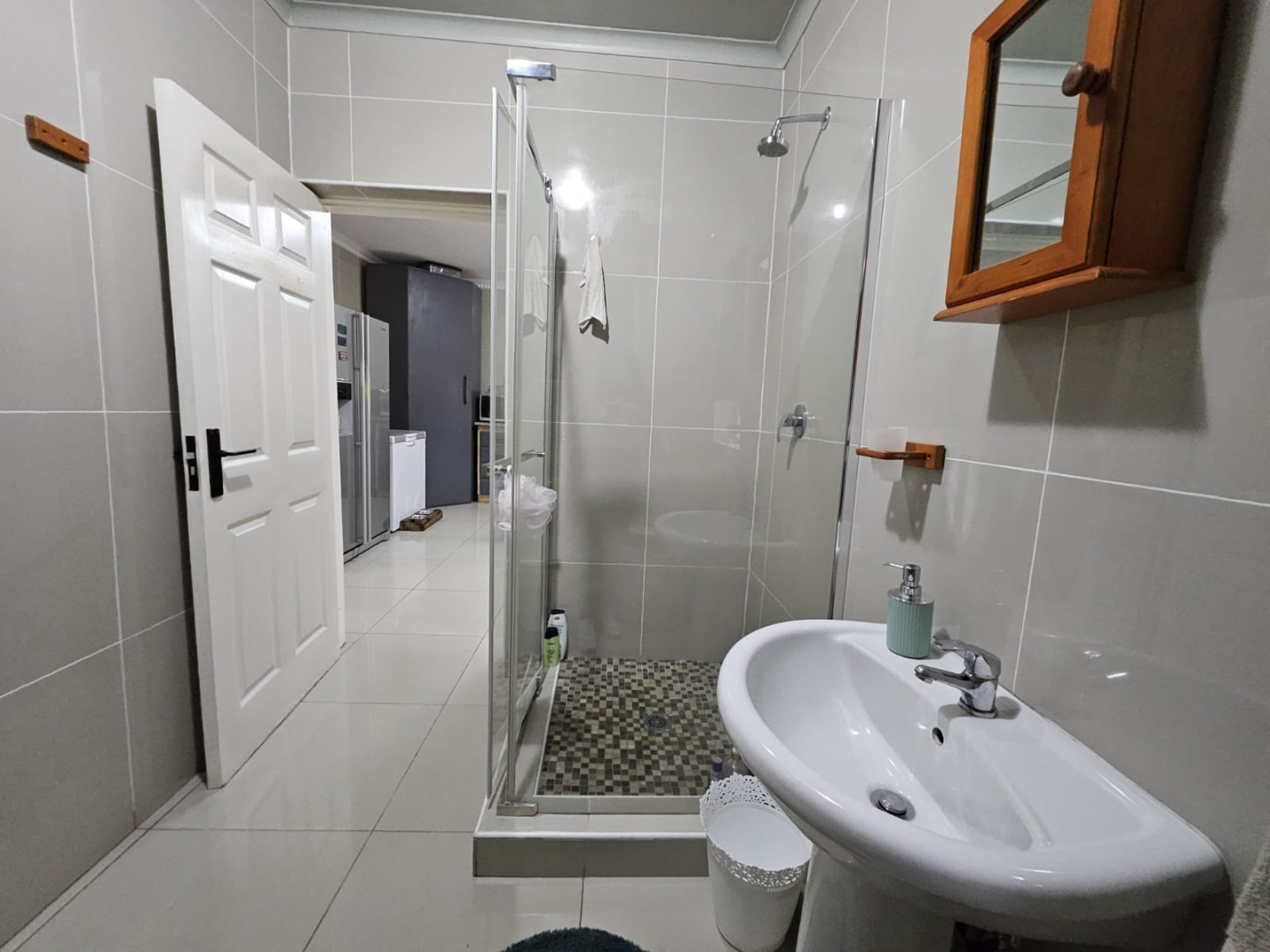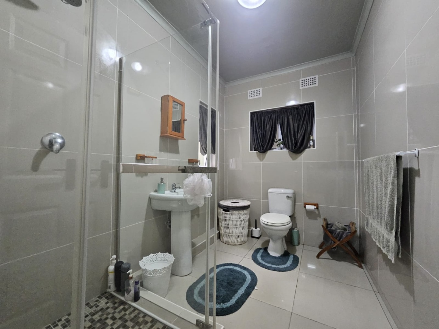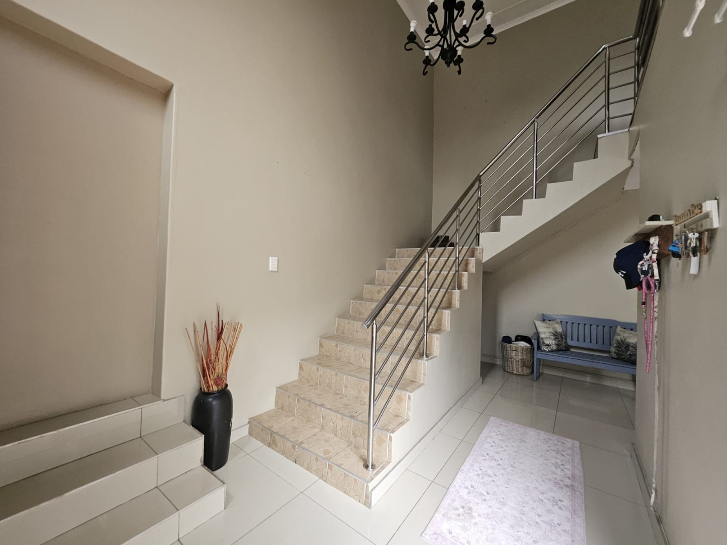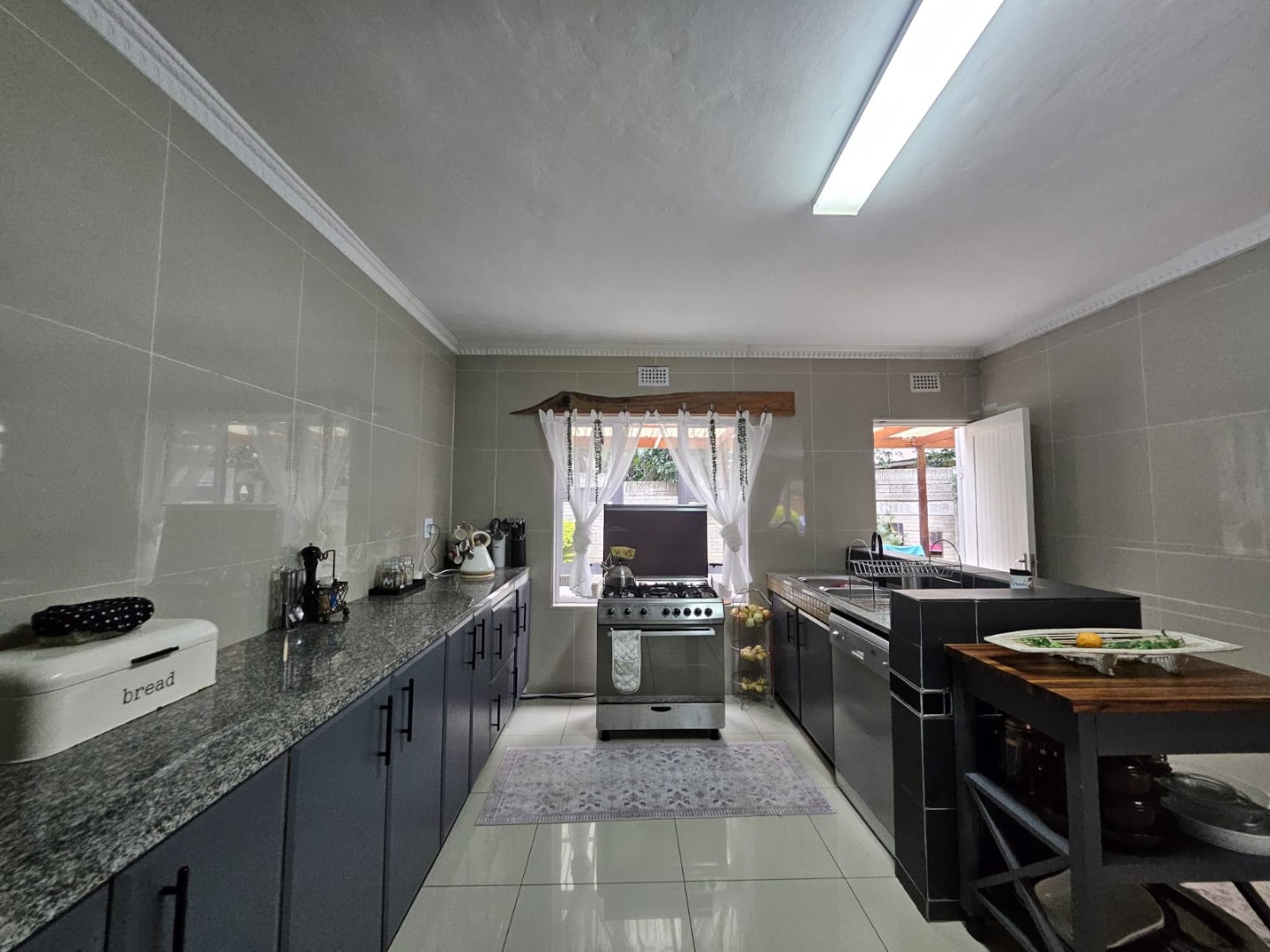 The property includes a separate double garage and an expansive paved driveway, accommodating up to six vehicles, ensuring ample parking. Large windows and sliding doors invite natural light. Outdoor amenities feature a built-in braai and a garden, perfect for enjoyment. Pets are allowed, making this a welcoming home.