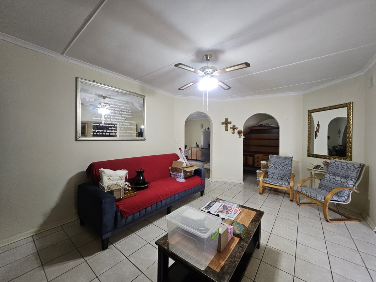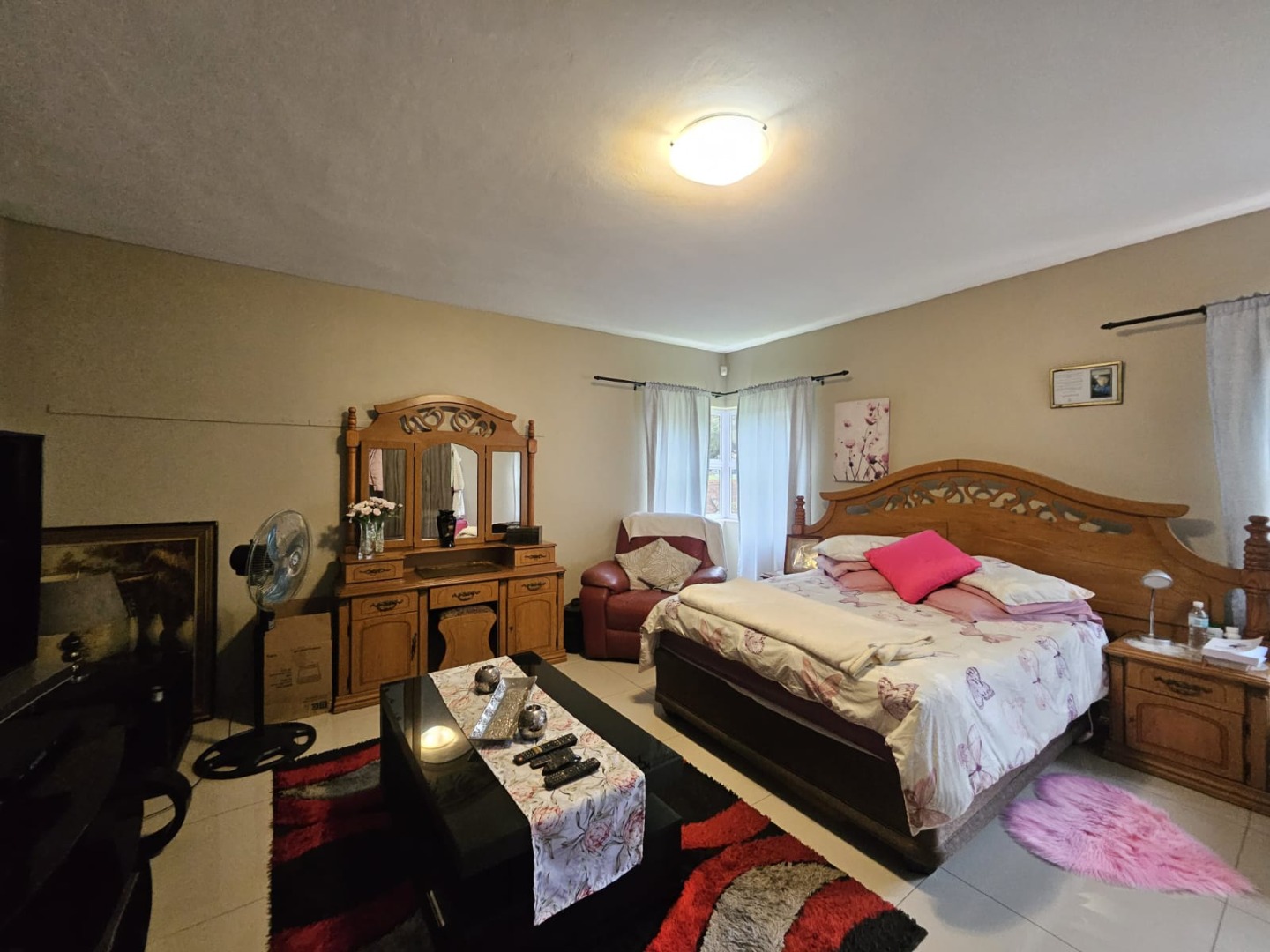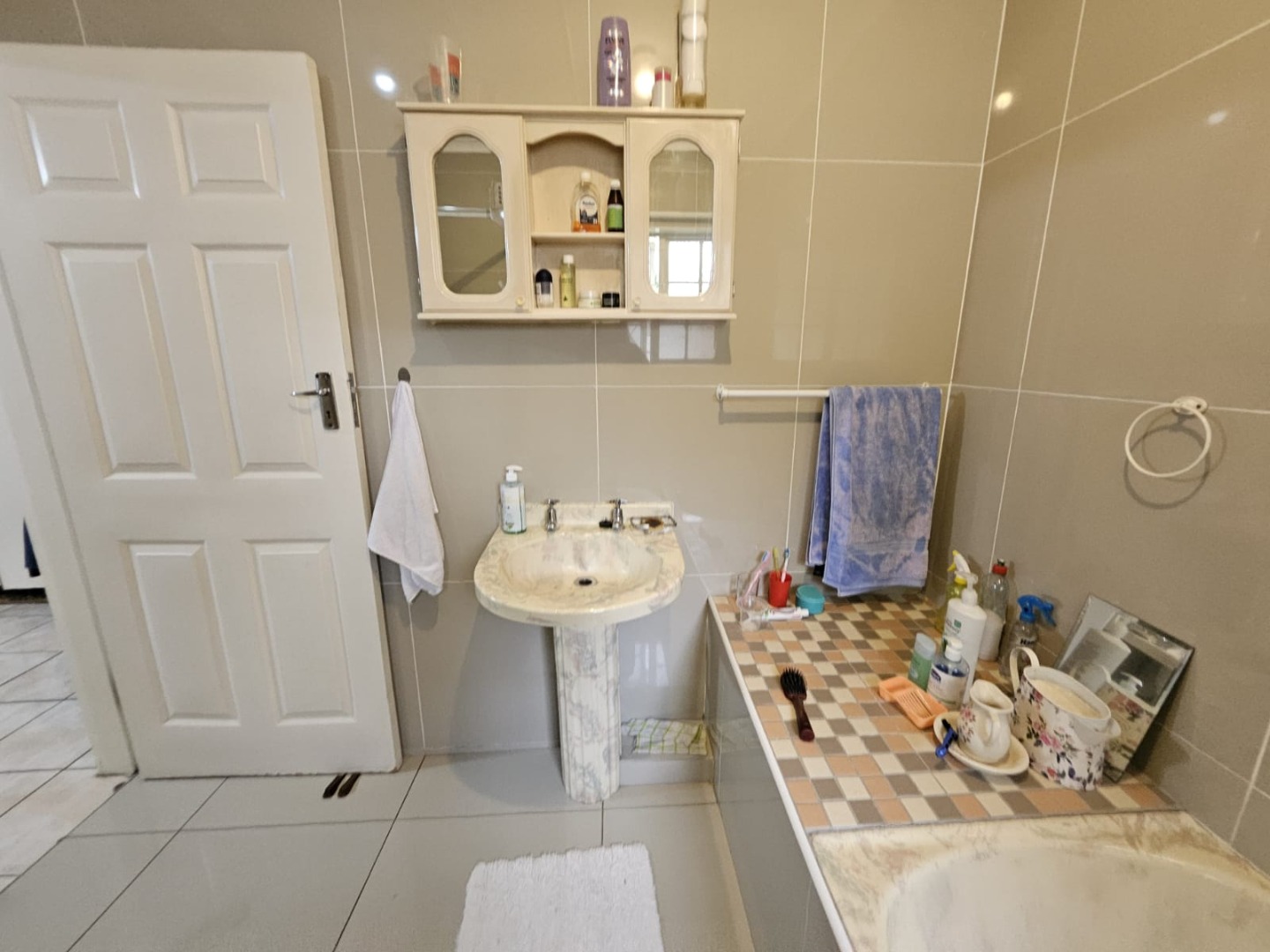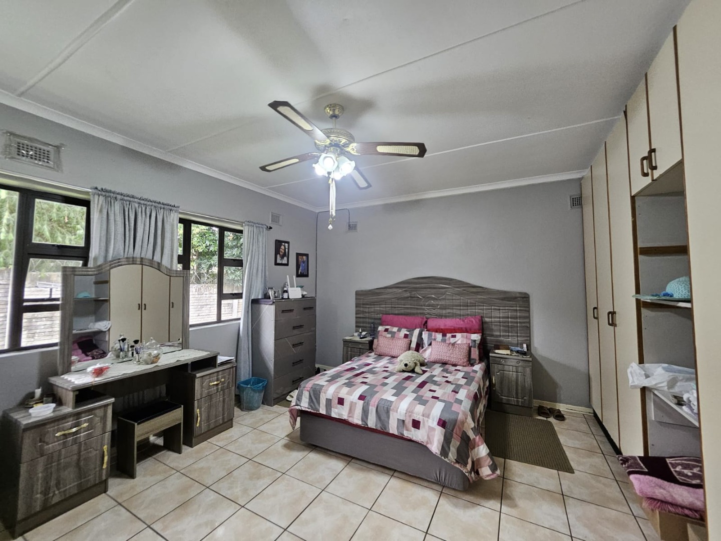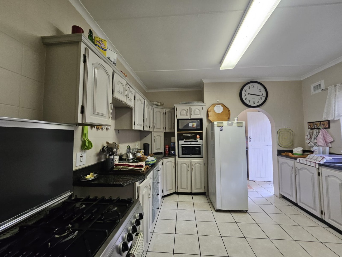 The property includes a separate double garage and an expansive paved driveway, accommodating up to six vehicles, ensuring ample parking. Large windows and sliding doors invite natural light. Outdoor amenities feature a built-in braai and a garden, perfect for enjoyment. Pets are allowed, making this a welcoming home.
