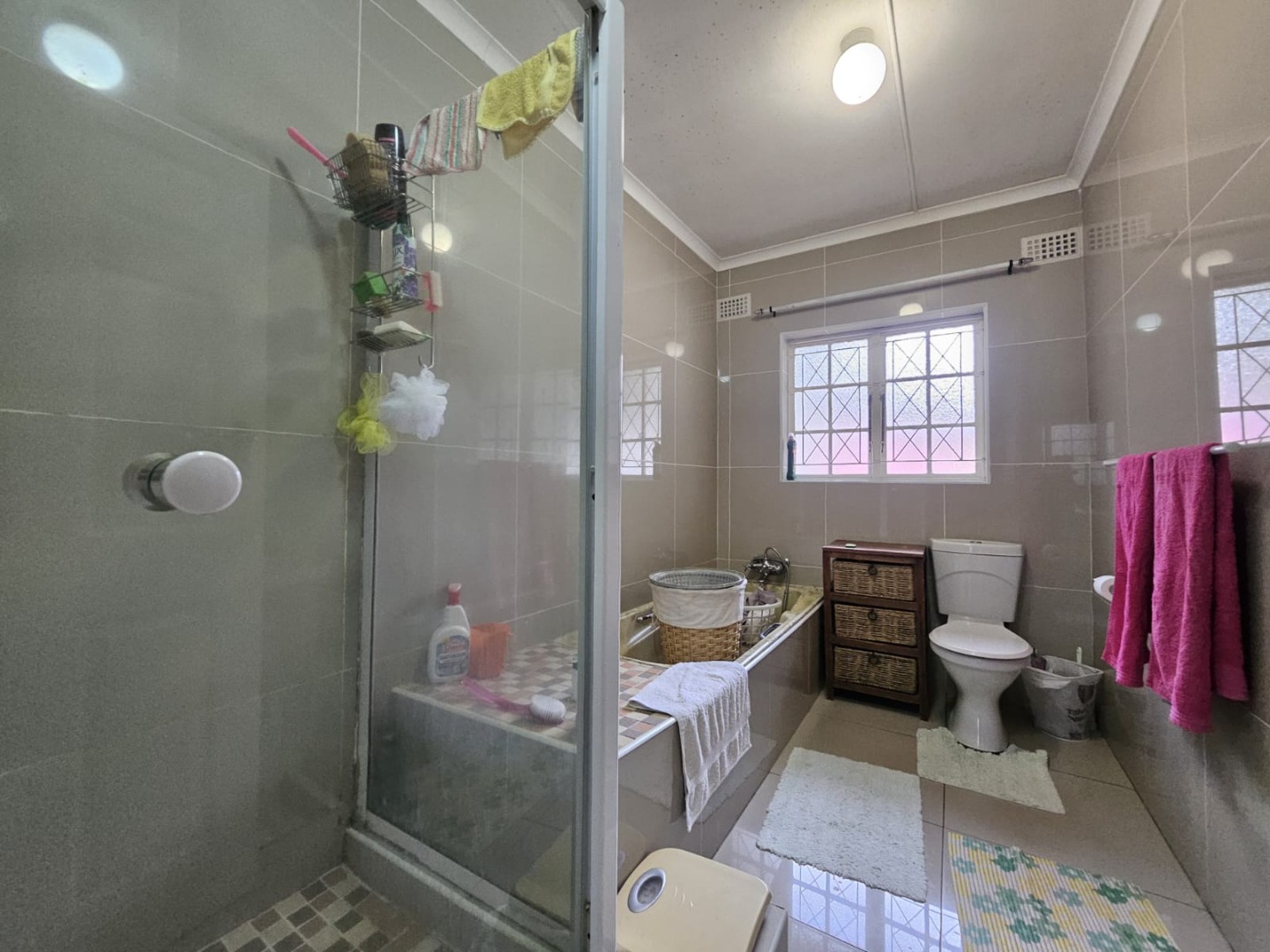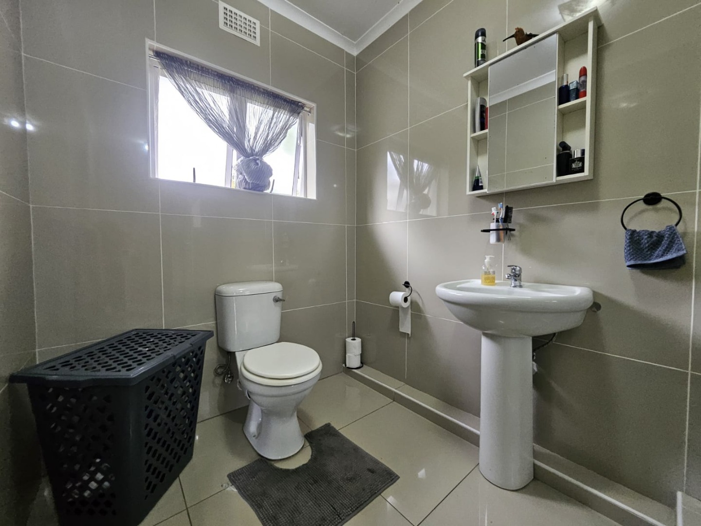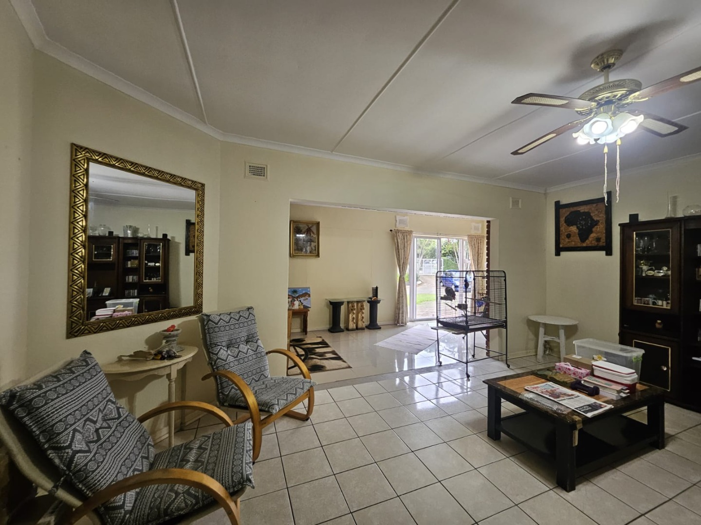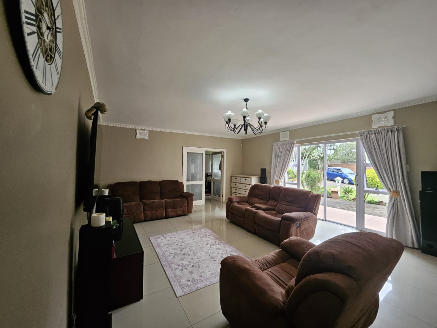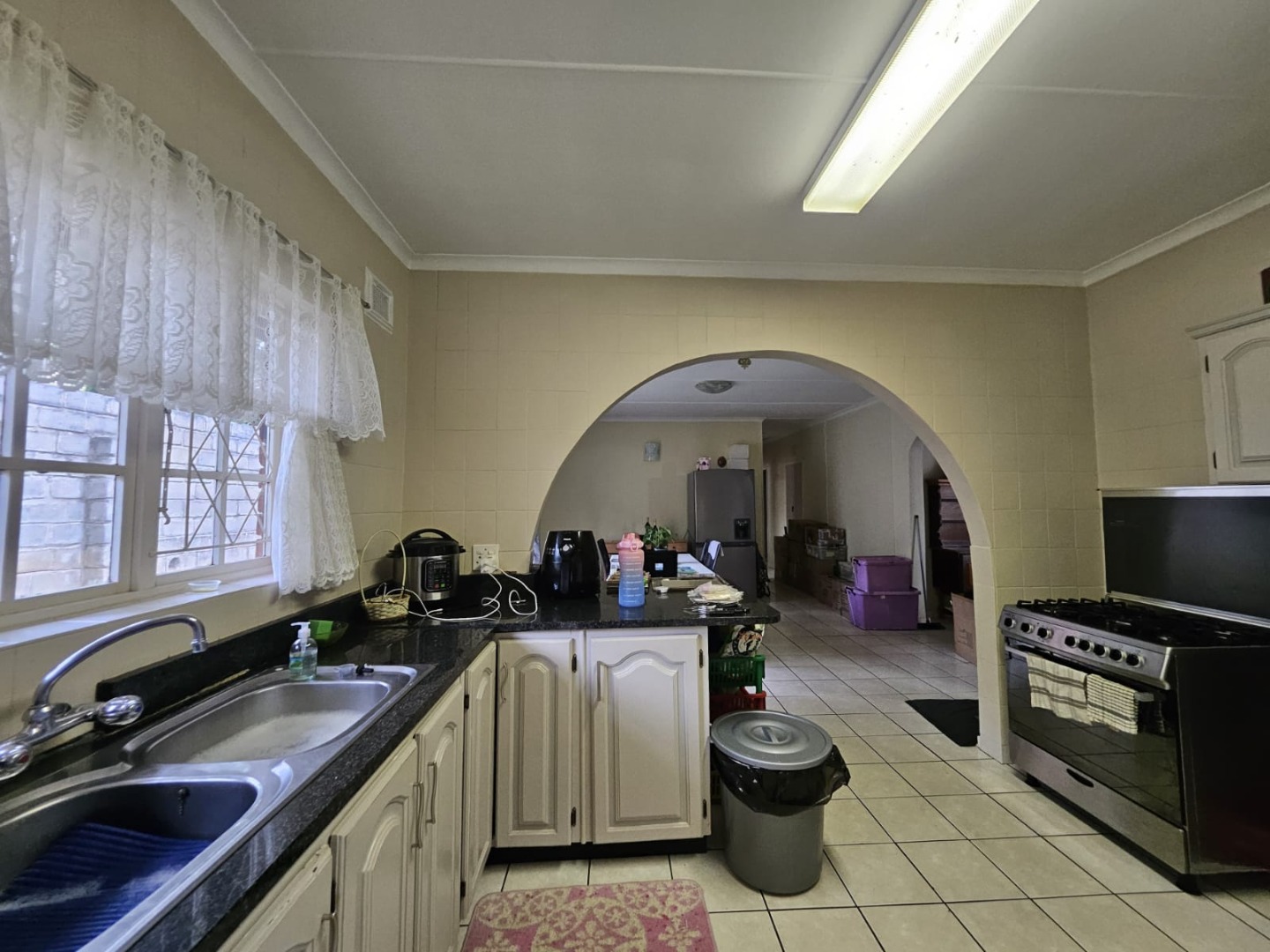 The property includes a separate double garage and an expansive paved driveway, accommodating up to six vehicles, ensuring ample parking. Large windows and sliding doors invite natural light. Outdoor amenities feature a built-in braai and a garden, perfect for enjoyment. Pets are allowed, making this a welcoming home.