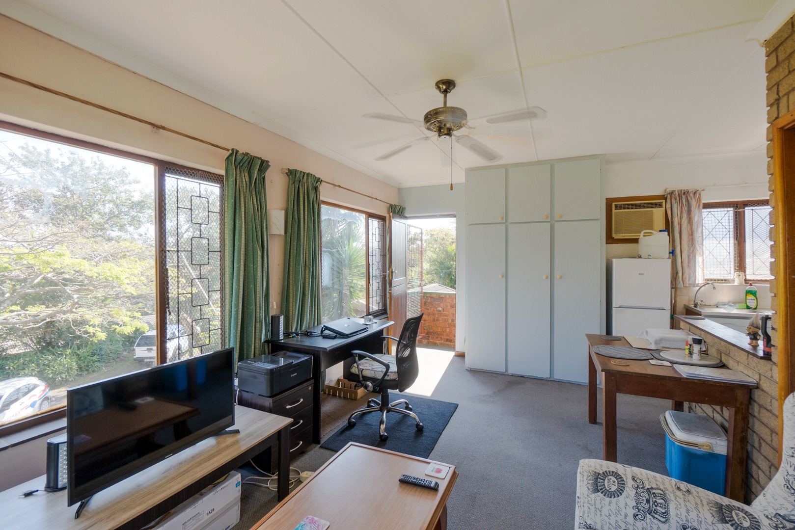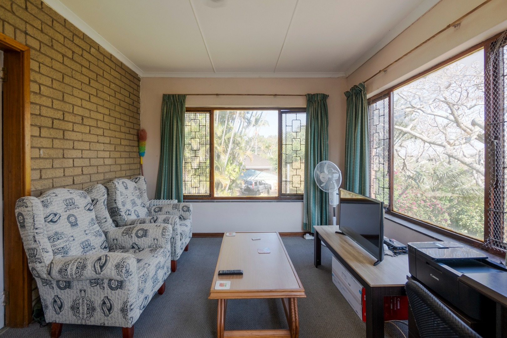 This inviting 1-bedroom, 1-bathroom garden cottage (shared property) in Warner Beach offers comfortable living with a focus on functionality. The residence features a well-appointed kitchen, a spacious lounge, and a dedicated parking bay. The interior benefits from an open-plan design, enhancing the sense of space and natural light. Large windows throughout the property provide ample illumination and offer pleasant green views, with some rooms featuring exposed brick accent walls that add character. The kitchen is functional, equipped with a full-size stove/oven and double sink. While the decor presents a dated aesthetic, the property is well-maintained and ready for immediate occupation.