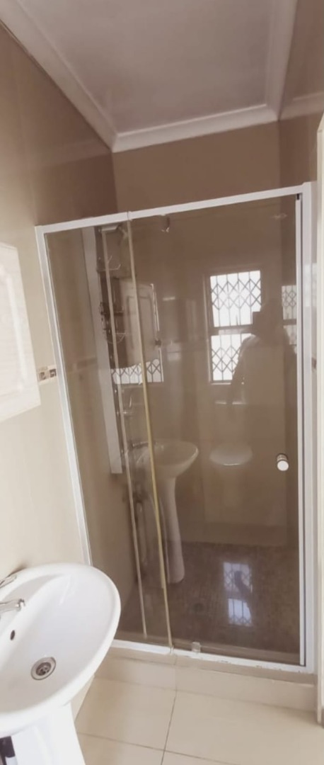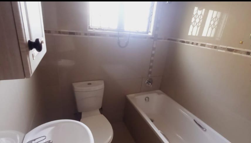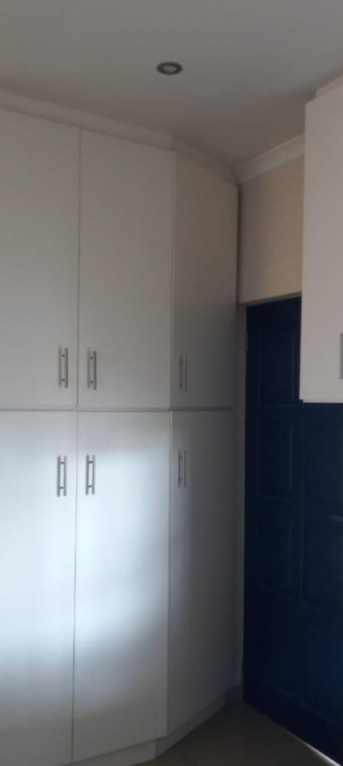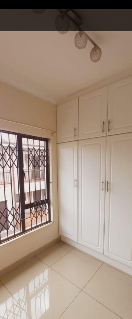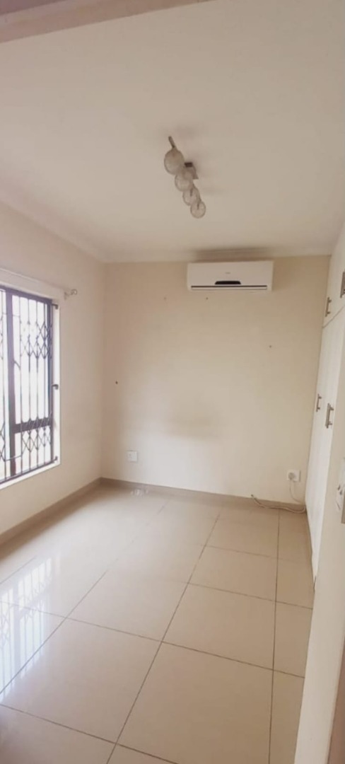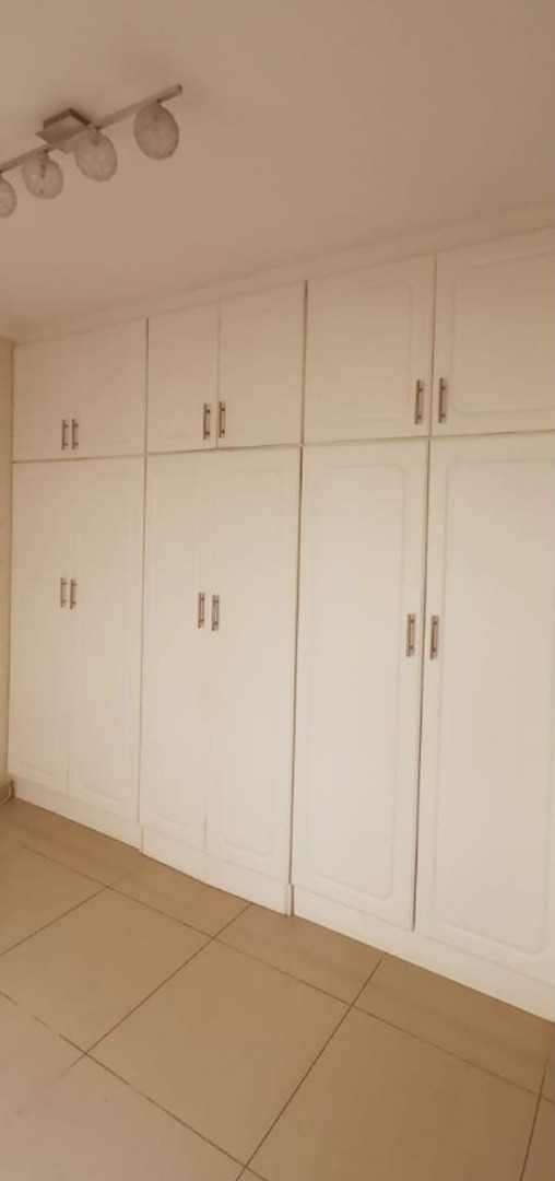 The spacious living area boasts tiled flooring and large sliding glass doors that open onto an enclosed balcony, perfect for enjoying the South African climate. A ceiling fan ensures comfort, while the neutral wall colours provide a versatile backdrop for your personal style. Each of the three bedrooms offers built-in cupboards for ample storage, with one bedroom benefiting from a wall-mounted air conditioner for climate control. Large windows, fitted with security bars, allow for natural light.