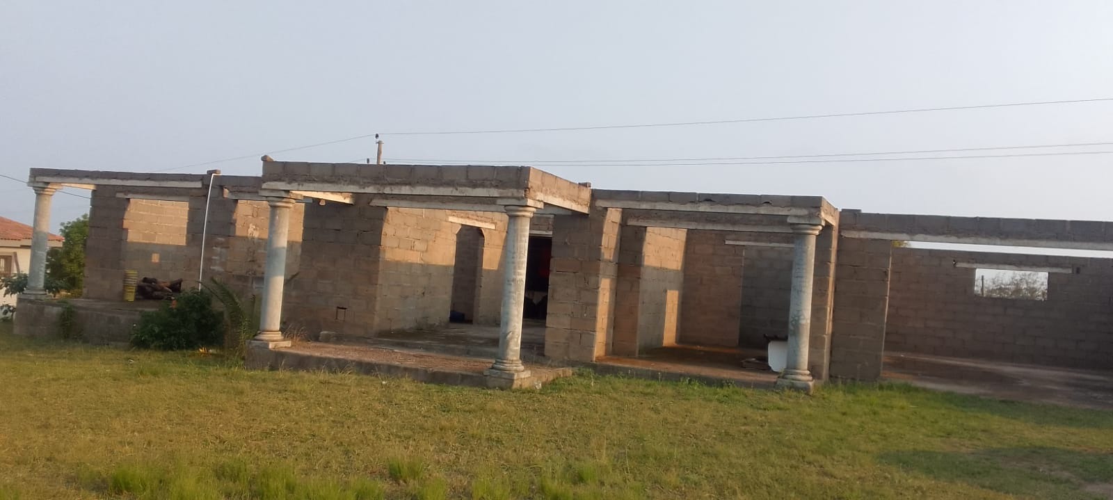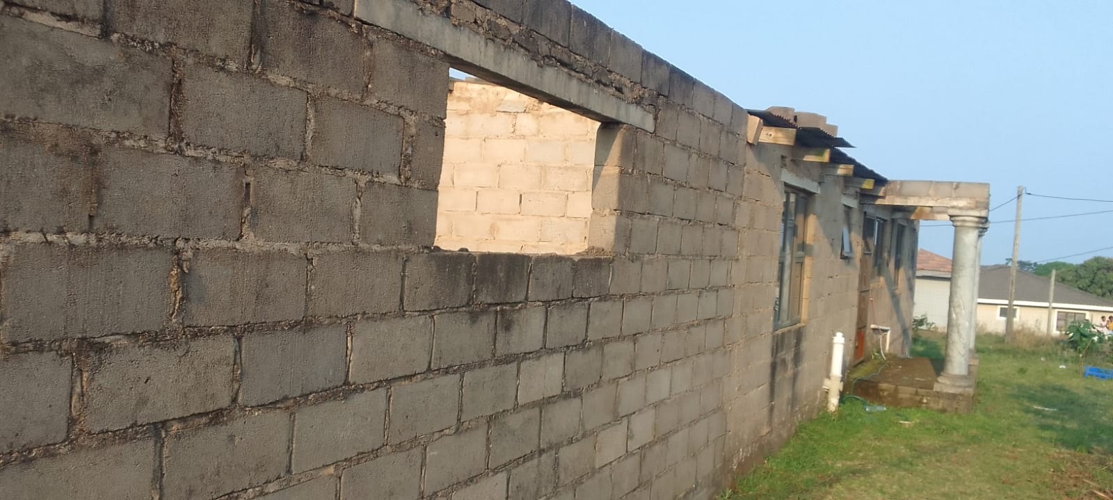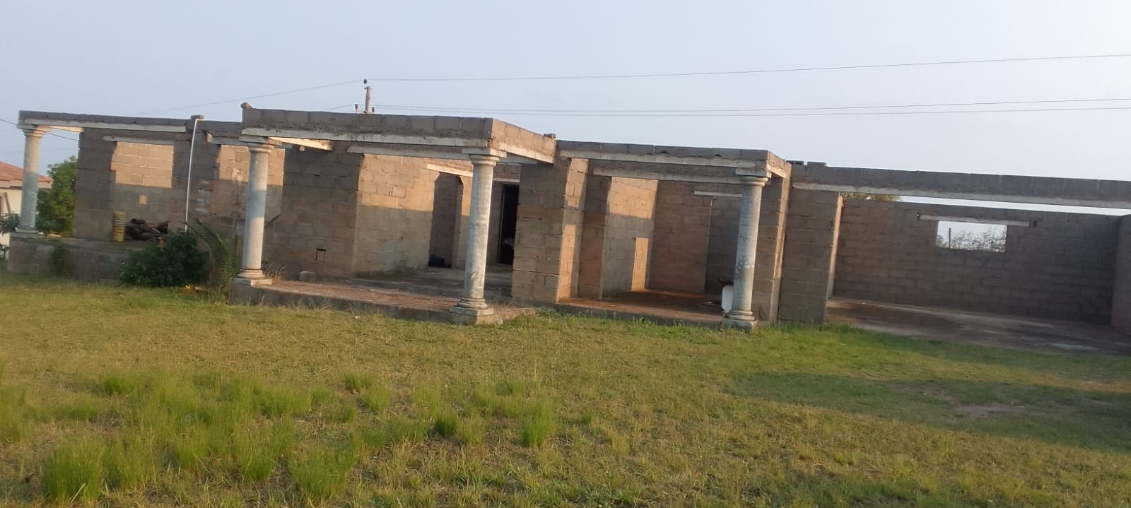This unfinished 3-bedroom house offers great potential and features a traditional rondavel, double garage, kitchen, lounge, and dining room. The property boasts a spacious yard, with enough parking for up to 10 cars.