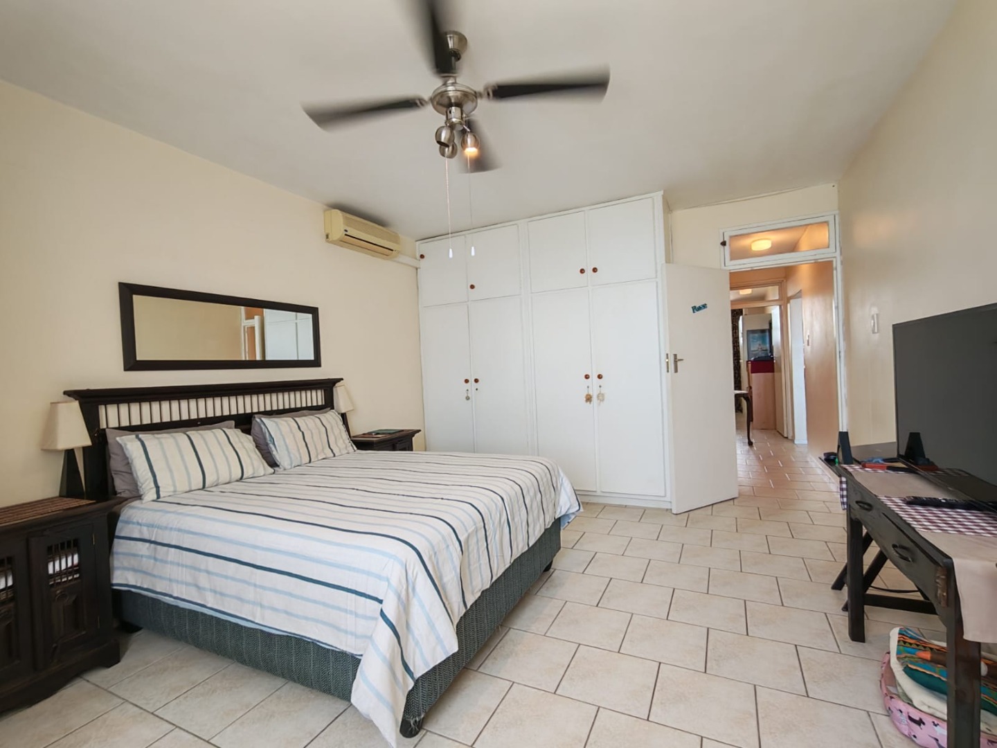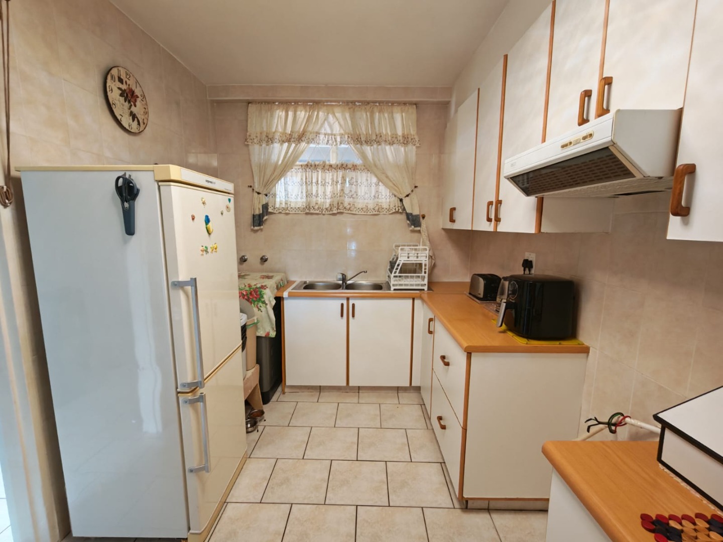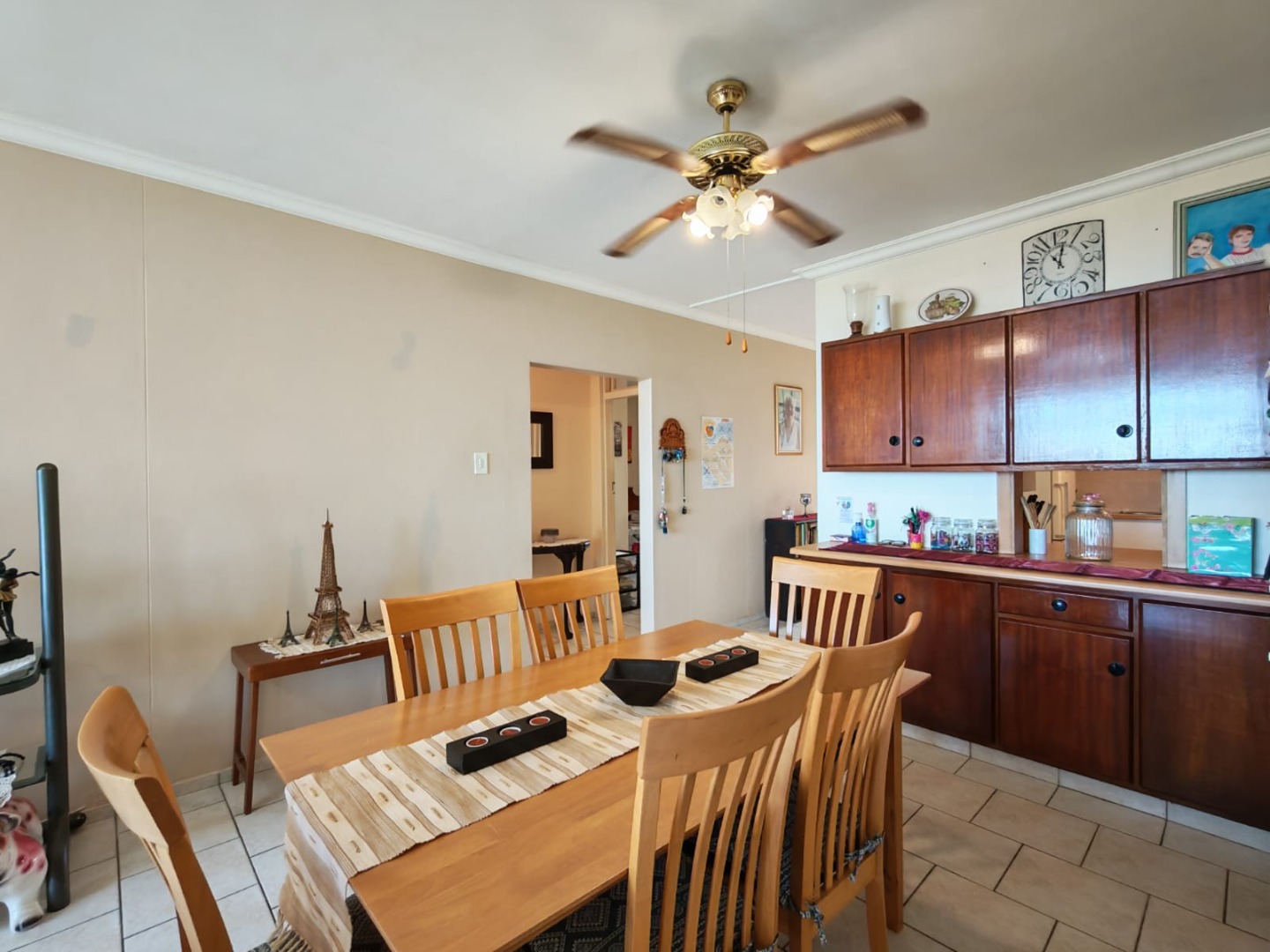 Discover this charming 2-bedroom, 2-bathroom residence nestled in the suburban heart of Amanzimtoti, offering a unique opportunity to embrace coastal living. This property, with its generous 126.00 sqm floor size on a substantial 3721.00 sqm erf, presents a canvas for modern updates while providing immediate comfort and scenic views. The interior boasts an inviting open-plan living and dining area, bathed in natural light from large windows that frame panoramic ocean views. The functional galley-style kitchen, equipped with ample white cabinetry, wood-look countertops, and a double sink, provides extensive storage and includes a built-in microwave, ready to cater to your culinary needs. Tiled flooring throughout ensures easy maintenance and a cohesive flow. Comfort is key in the two spacious bedrooms, each featuring built-in wardrobe storage for convenience. Climate control is assured with both air conditioning and ceiling fans in the main bedroom. The two bathrooms offer versatility, each including both a shower and a bathtub, alongside neutral tiling and natural light from small windows. Step into the enclosed balcony or sunroom, a bright space perfect for relaxation or cultivating plants, where expansive ocean and green landscape views can be savoured year-round. The property includes a single garage and benefits from security features such as a fence, electric fencing, and an access gate, providing peace of mind. While the home offers a solid foundation, its dated aesthetic presents an exciting opportunity for renovation to create your dream coastal retreat. Key Features: * 2 Bedrooms, 2 Bathrooms * 1 Garage * 126.00 sqm Floor Size * Open-plan living and dining area * Panoramic ocean and scenic views * Enclosed balcony/sunroom * Built-in wardrobe storage * Air conditioning and ceiling fan in main bedroom * Fenced with electric fencing and access gate
