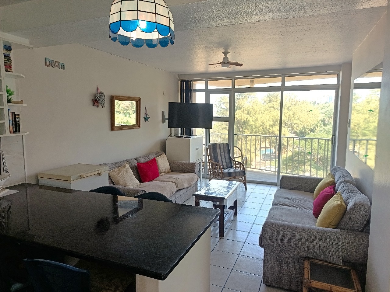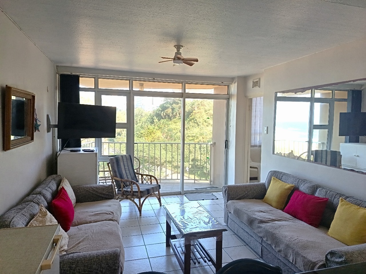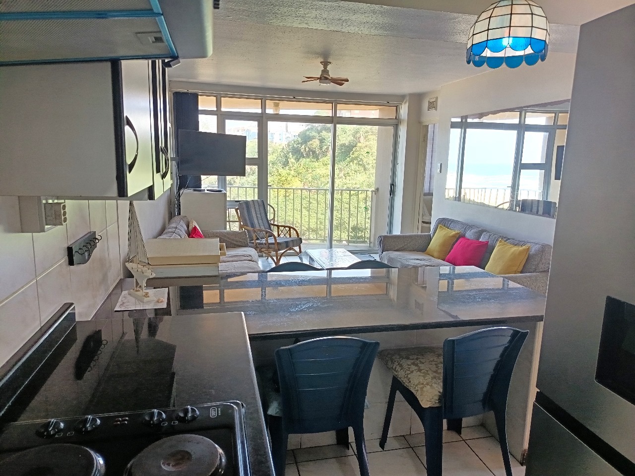 Discover an exceptional coastal lifestyle in this inviting fully furnished 2.5-bedroom, 1.5-bathroom apartment, perfectly situated in the vibrant suburban hub of Amanzimtoti. Boasting a generous floor size of 69.00 sqm, this residence offers direct access to a sandy beach, providing breathtaking panoramic ocean and beach views from its private balcony. The high-floor perspective ensures privacy and unobstructed vistas, with natural coastal greenery separating the building from the shoreline.