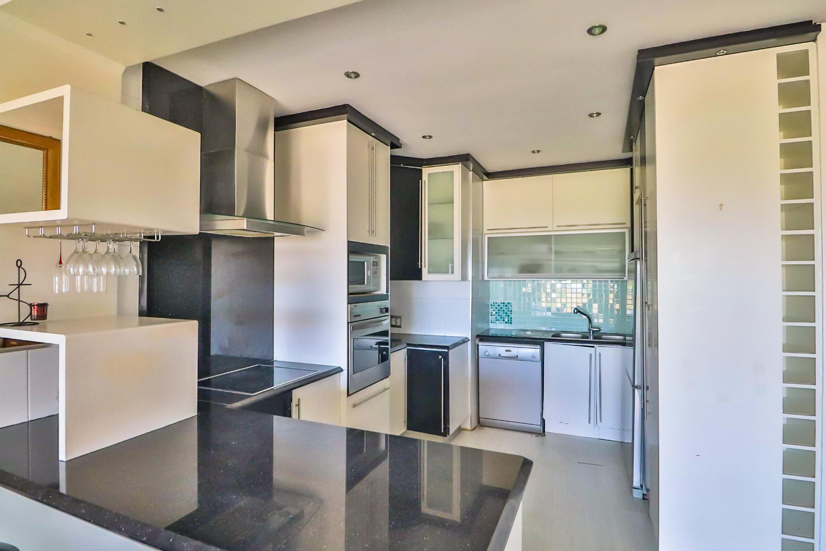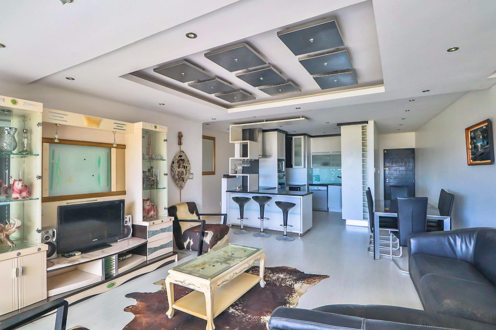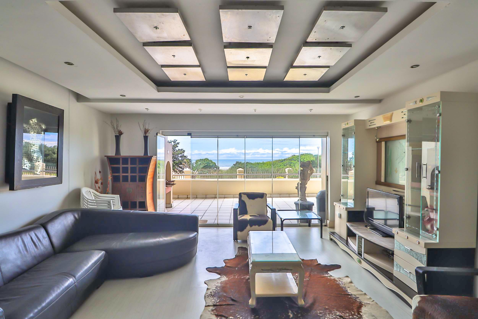 The main bedroom with en-suite opens onto the balcony so you can enjoy the sea views while relaxing in bed. All 3 bedrooms have built-in cupboards and the apartment is tiled throughout. The open plan kitchen, dining room, and lounge lead onto the large balcony which has a built-in braai.