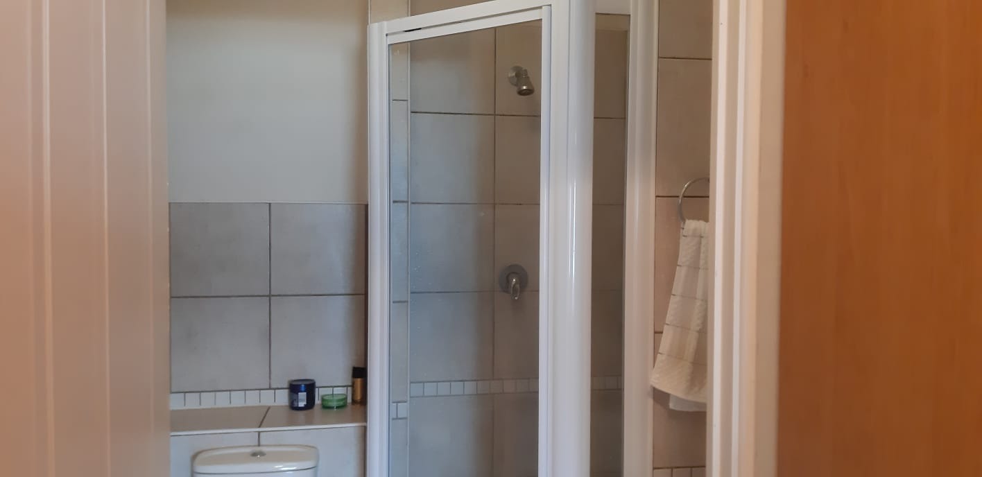 - En suite bathroom with shower, toilet, and basin