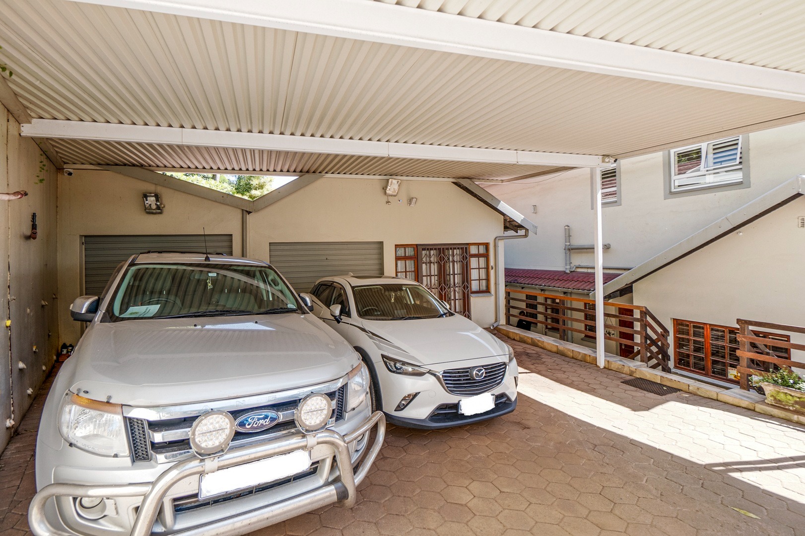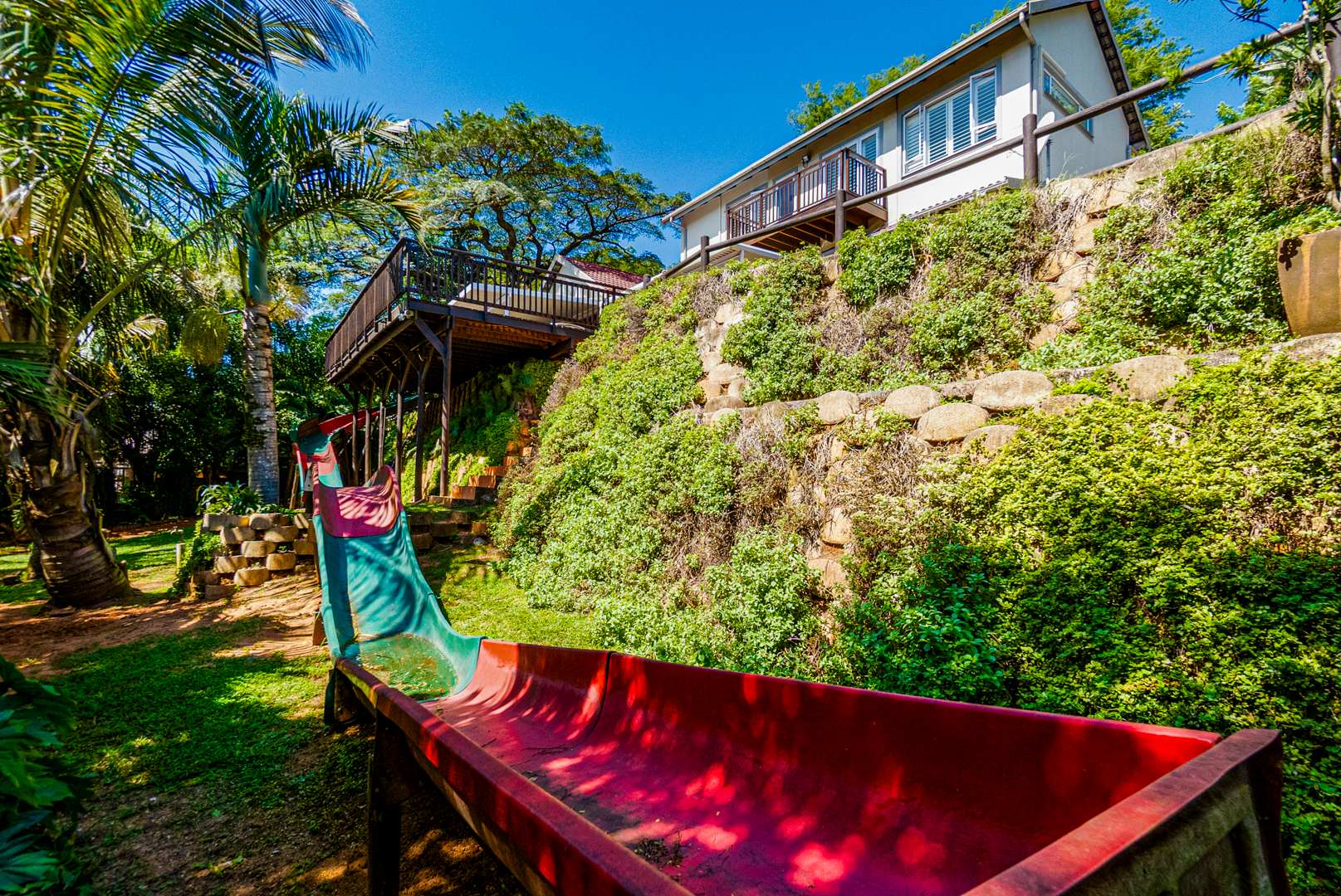 A paradise for kids, the outdoor space is second to none, boasting a sparkling pool, trampoline, and thrilling water slide. Find a huge deck for the grown ups who love to entertain, complete with a cozy boma braai, all while soaking in the tranquil green garden views.