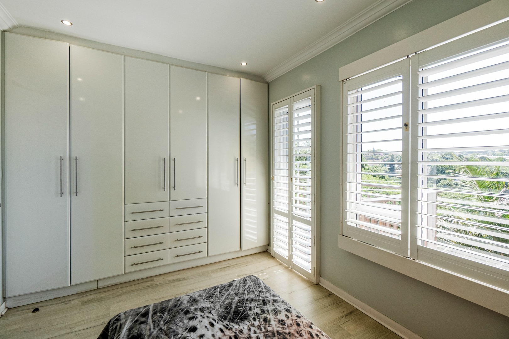 With 2 bedrooms on the ground floor and 2 upstairs, this layout is perfect for modern living. On the top floor the massive master suite boasts a spacious walk-in closet (any fashionista's dream), a luxurious en-suite bathroom (MES) with his-and-hers basins and an enormous shower, plus direct access to a scenic balcony—the perfect spot for morning coffee or sunset views. A second bedroom which shares the balcony, completes the picture. The rooms feature elegant white shutters, adding a touch of timeless charm.