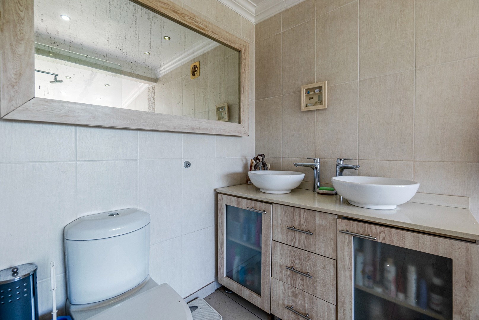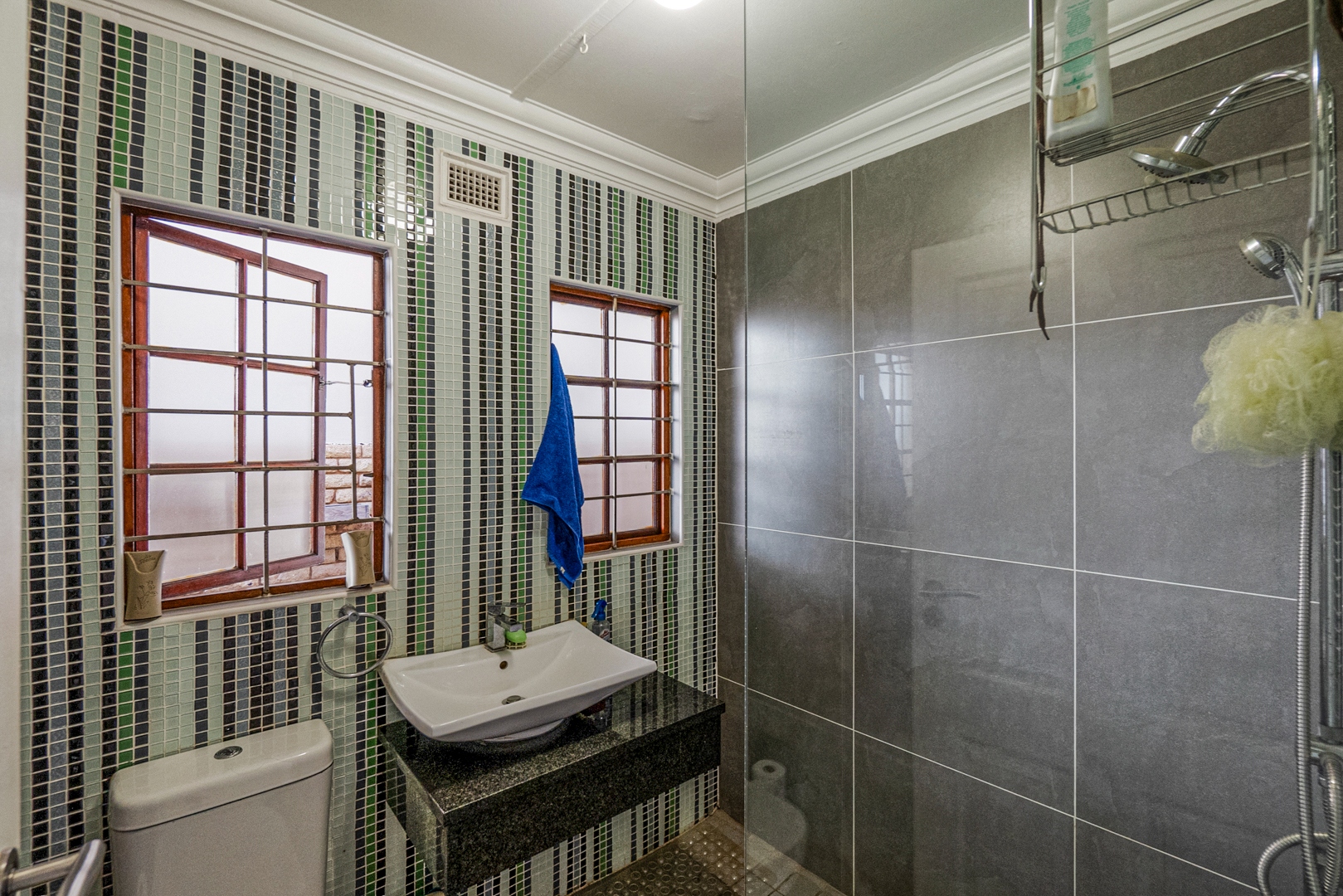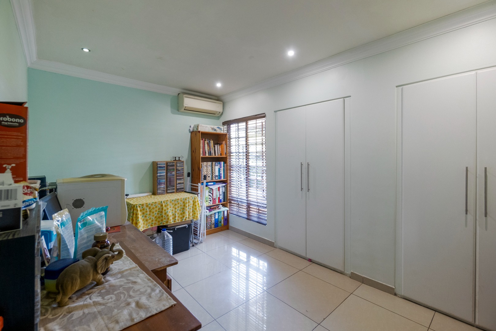 The ground floor boasts another guest bedroom with walk-in closet and en-suite bathroom featuring a spa bath, shower, double basins and toilet. This bathroom is linked by a "secret" opening for dirty laundry to be dumped direct into the laundry room - how cool is that? The forth bedroom can be found just down the passage and is currently used as a study/hobby room. Across the passage the 3rd family bathroom with shower, toilet and basin is situated.