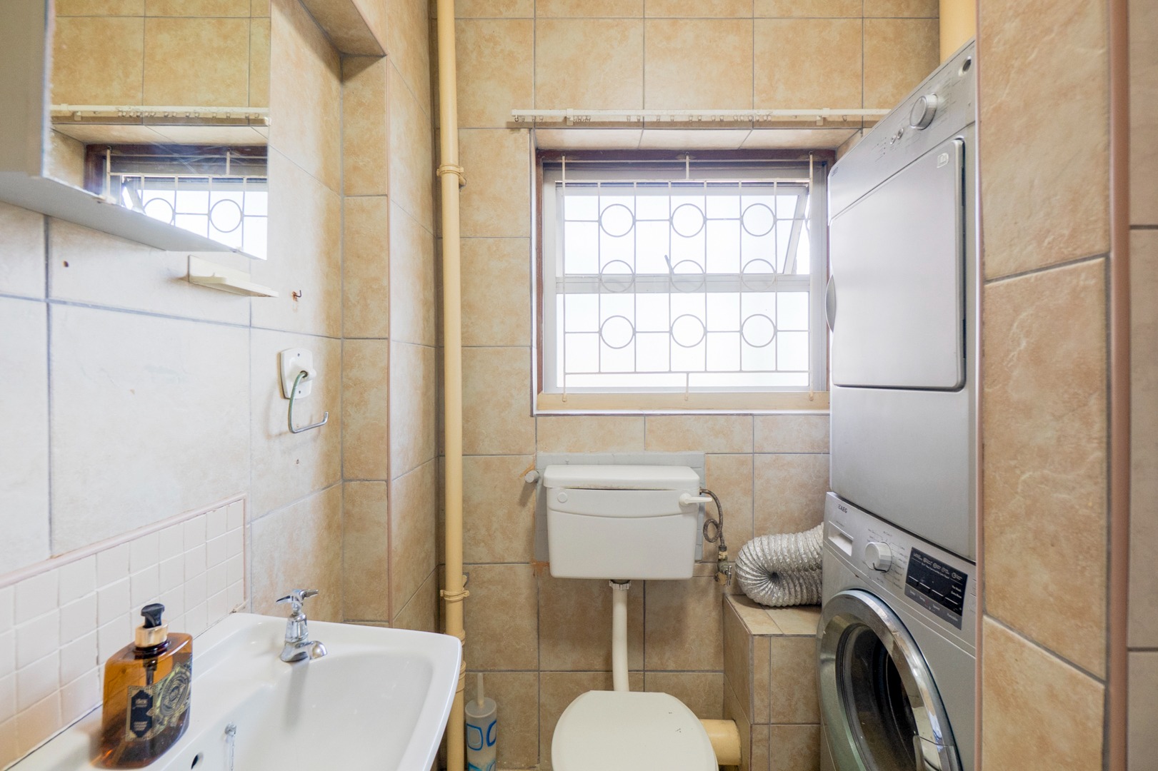 Guest Bathroom has ( Shower, Basin, Toilet and set up for Front Loading Washing Machine and Tumble Drier).