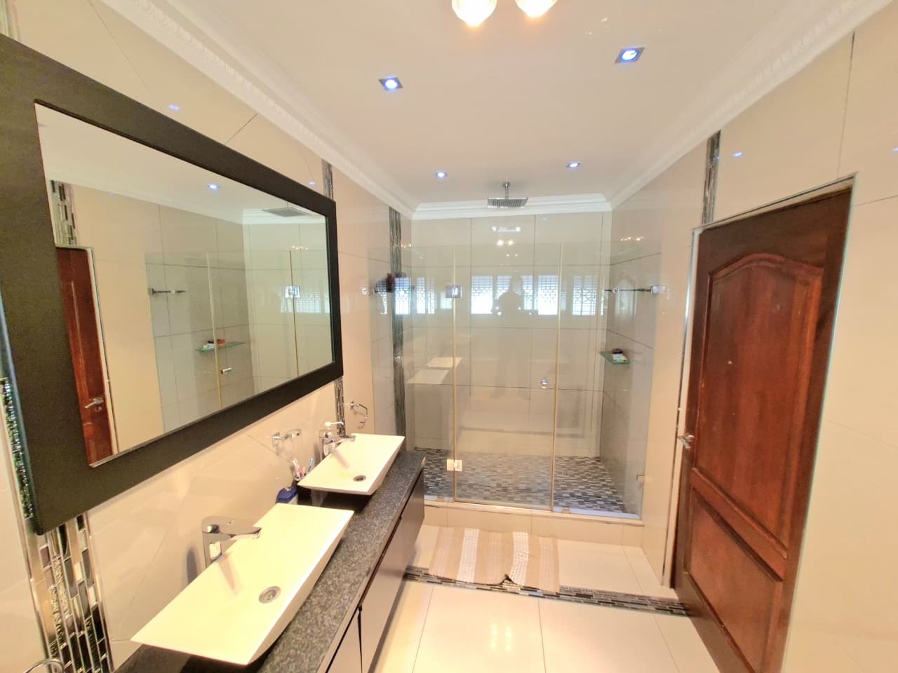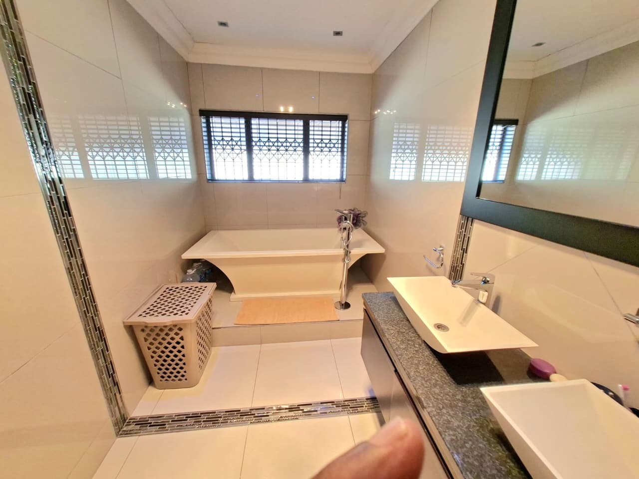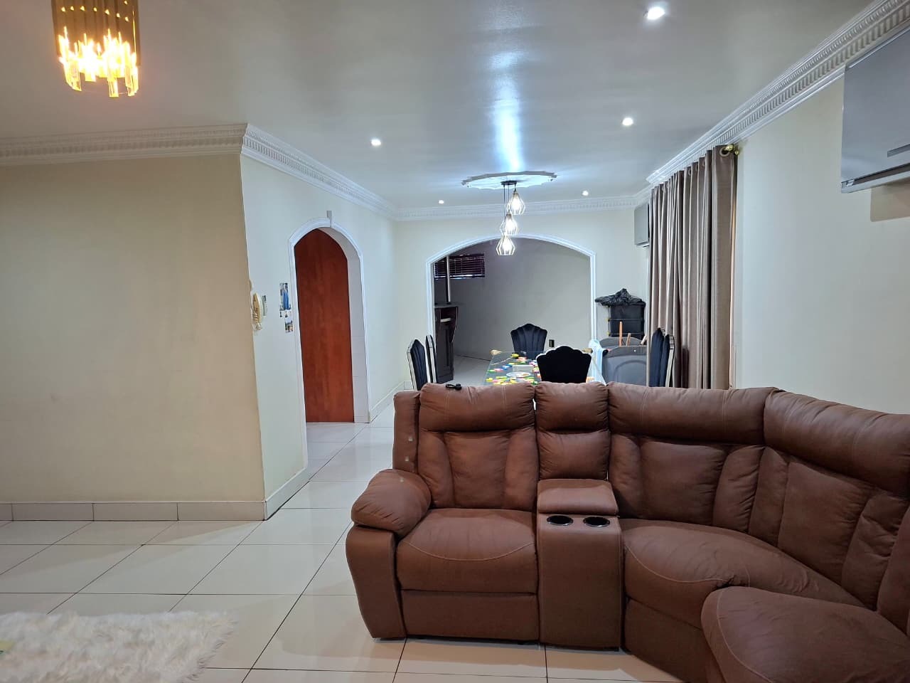 Discover this inviting 3-bedroom, 3-bathroom residence located in the desirable Athlone Park, Amanzimtoti. Designed for comfortable family living, the home features two spacious lounges, a dedicated family TV room, and a dining room, providing ample space for relaxation and entertaining. The well-appointed kitchen caters to all culinary needs. Enjoy modern conveniences such as air conditioning throughout and high-speed fibre connectivity, ensuring a comfortable and connected lifestyle. The property offers three generously sized bedrooms, with one featuring a private en-suite bathroom for added comfort. An additional two bathrooms, including a convenient guest toilet, serve the remaining bedrooms and visitors. The layout is thoughtfully designed to be wheelchair-friendly, enhancing accessibility for all. Step outside to a private oasis featuring a refreshing swimming pool, perfect for warm South African days. The property boasts a lovely garden and a patio complete with an awning, ideal for outdoor dining and leisure. Parking is abundant with two garages and four additional parking spaces, accommodating multiple vehicles. Pets are welcome, making this a true family home. Security is a priority, with features including an alarm system, electric fencing, an access gate, a security gate, and an intercom system, all contributing to a totally walled and secure environment. Athlone Park offers a tranquil suburban setting with the added benefit of coastal beach proximity, providing residents with easy access to the seaside lifestyle. Key Features: * 3 Bedrooms, 3 Bathrooms (1 En-suite, 1 Guest Toilet) * 2 Lounges, Family TV Room, Dining Room * Private Swimming Pool and Garden * Patio with Awning * 2 Garages and 4 Additional Parking Spaces * Air Conditioning and Fibre Connectivity * Wheelchair Friendly Access * Comprehensive Security: Alarm, Electric Fencing, Access Gate, Security Gate, Intercom * Pets Allowed