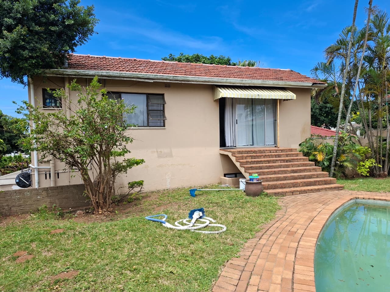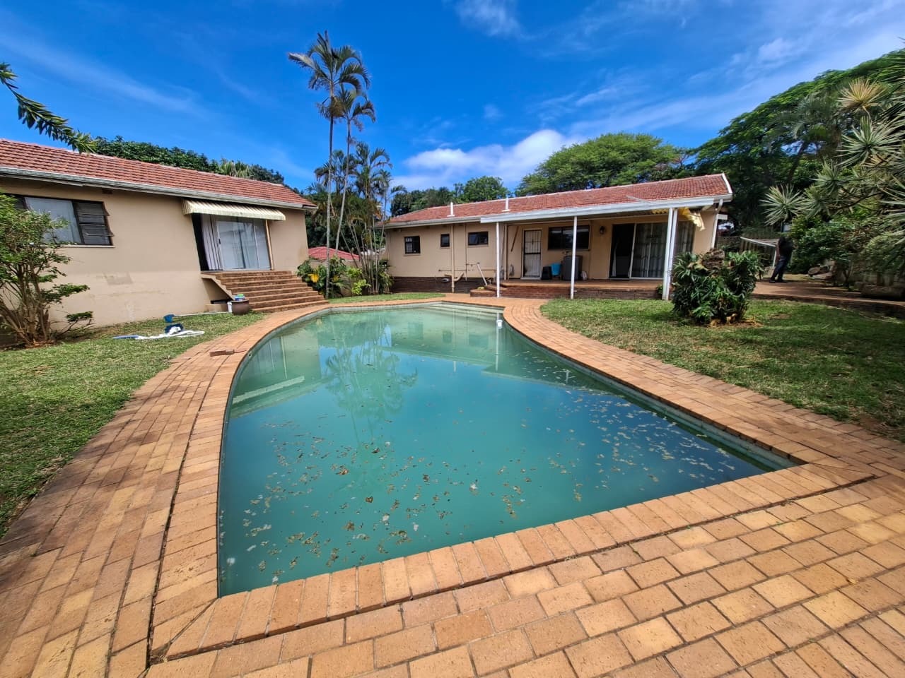 Outside, the property truly shines with a large swimming pool, perfect for relaxation and entertaining. . The established garden, though requiring some attention, provides a green backdrop and privacy on the generous 929 sqm erf. With six dedicated parking spaces and the presence of two separate structures, there are two flatlets and a main house that brings in a rental income of R20 800 each month