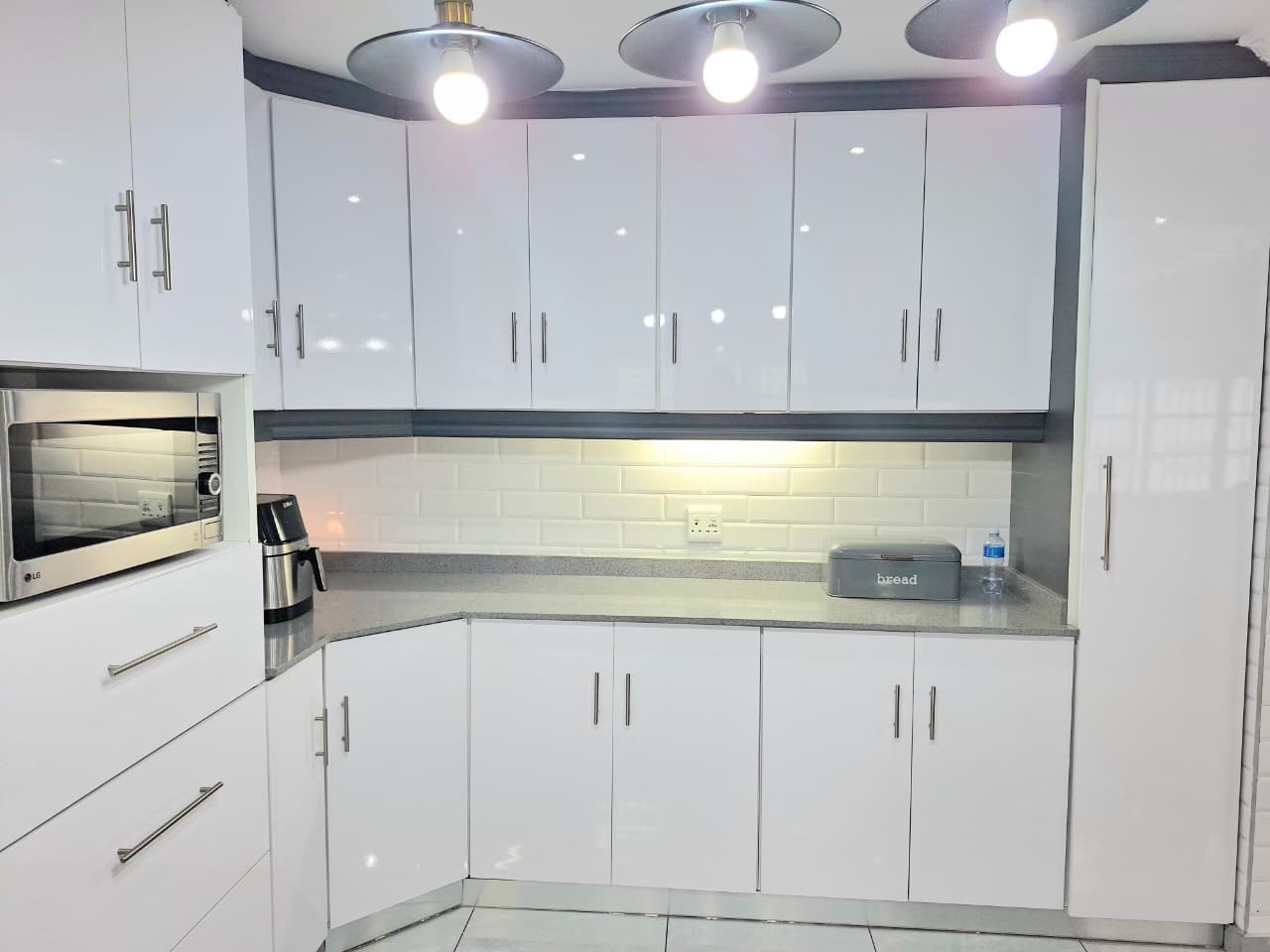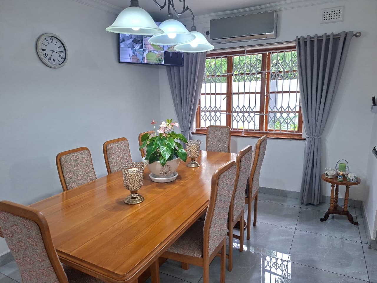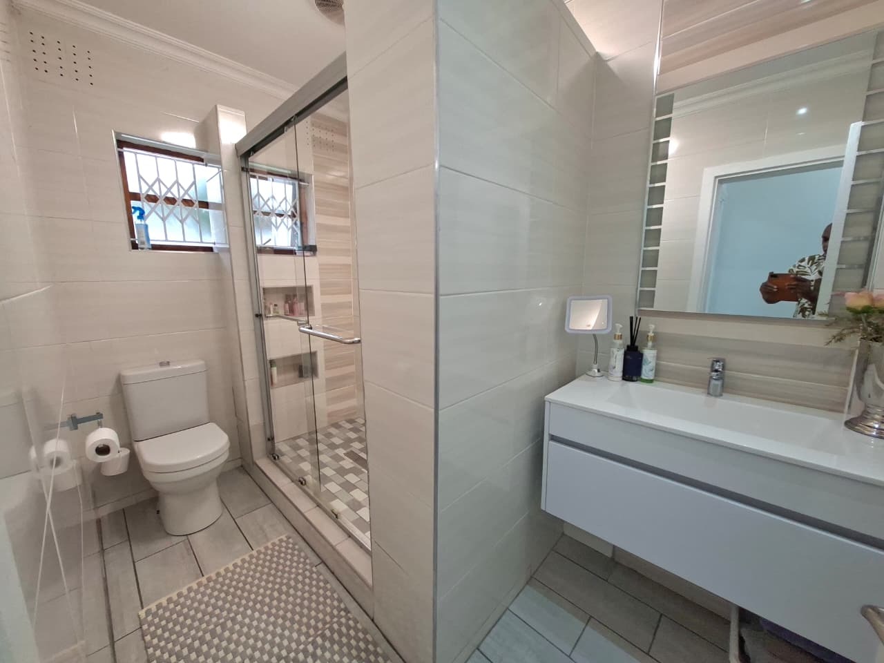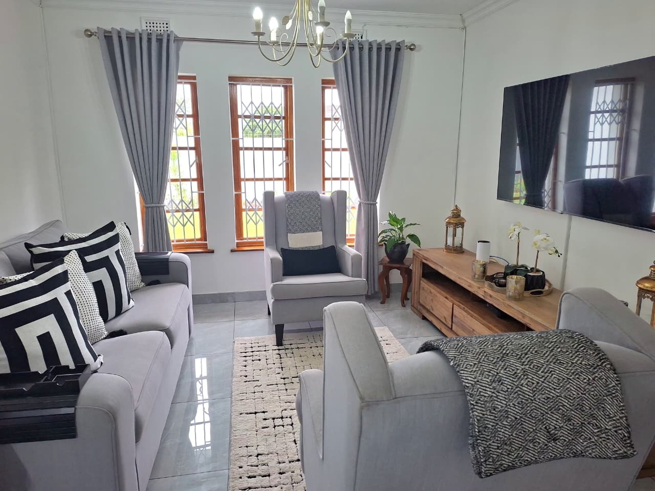 Discover this inviting residential property located in the coastal area of Isipingo Beach, Isipingo, South Africa. Boasting a generous Erf size of 1023 sqm, this home presents a freshly painted white exterior, a well-maintained tiled roof, and attractive wooden garage doors, contributing to its appealing kerb appeal. The property features a spacious paved driveway, offering ample parking with two garages and an additional six open parking spaces, all secured by a front entrance gate and modern boundary wall. The interior offers a comfortable and functional layout, including two lounges and two distinct dining areas, providing versatile living spaces. The main living room is neat and modern, featuring grey seating, coordinated black and white accents, and tiled floors. The heart of the home is a modern, open-plan kitchen, equipped with high-gloss white cabinets, sleek grey countertops, a subway tile backsplash, and integrated appliances including a gas range, oven, and extractor hood. A dedicated pantry provides additional storage. This residence comprises three well-proportioned bedrooms and three bathrooms, with one conveniently configured as an en-suite. The property prioritizes security with features such as an alarm system, access gate, perimeter fence, and burglar bars on windows, ensuring peace of mind. Practical amenities include water tanks and outside toilets, enhancing the home's functionality. The property is also wheelchair friendly. Isipingo Beach offers a desirable coastal lifestyle within the vibrant city of Isipingo. Its proximity to the beach provides opportunities for leisure and recreation, making it an attractive location for residents seeking a blend of convenience and seaside living. Key Features: * 3 Bedrooms, 3 Bathrooms (1 En-suite) * 2 Lounges, 2 Dining Areas * Modern Kitchen with Pantry * 2 Garages, 6 Parking Spaces * Erf Size: 1023 sqm * Enhanced Security: Alarm, Access Gate, Fence, Burglar Bars, Totally Walled * Paved Driveway * Water Tanks, Outside Toilets * Wheelchair Friendly