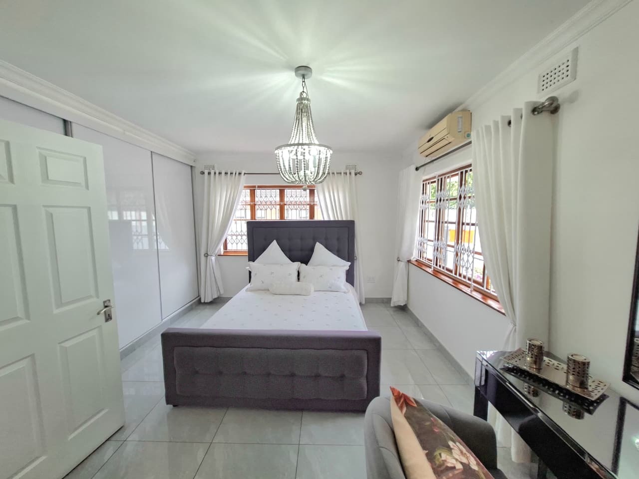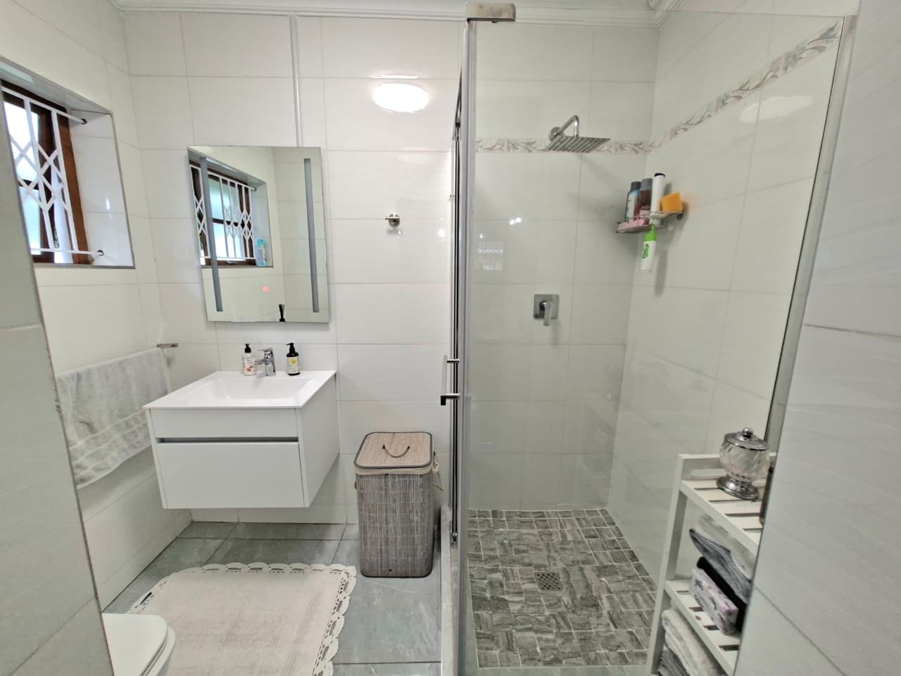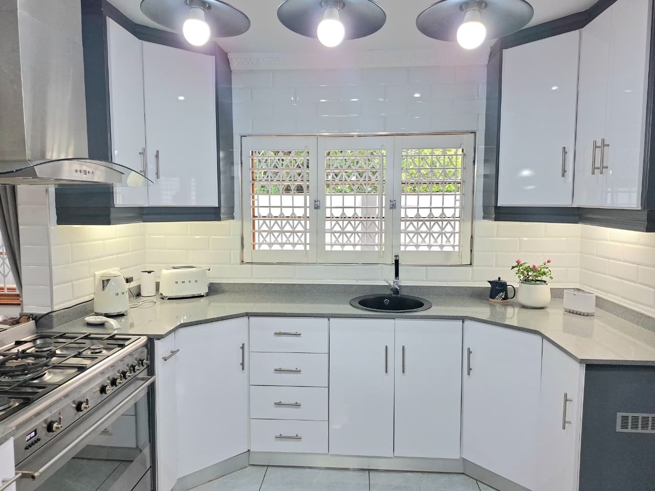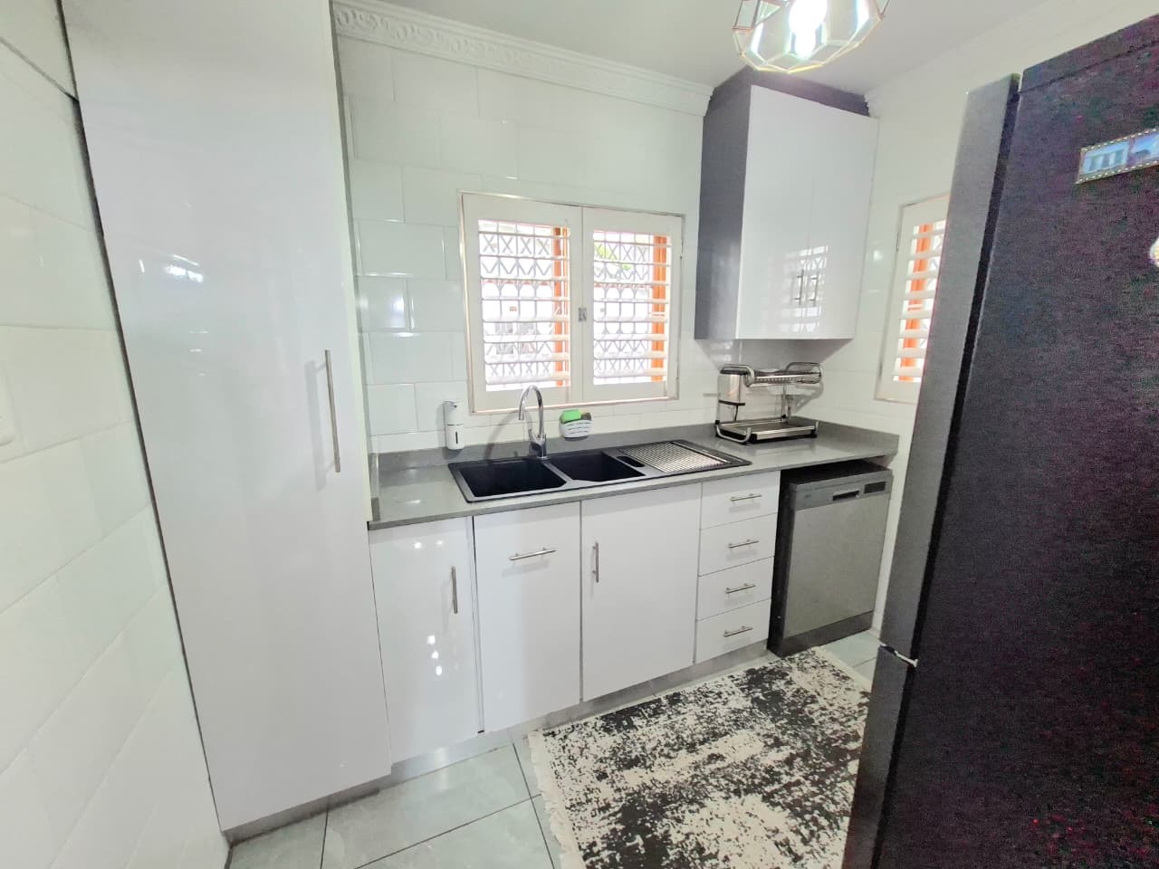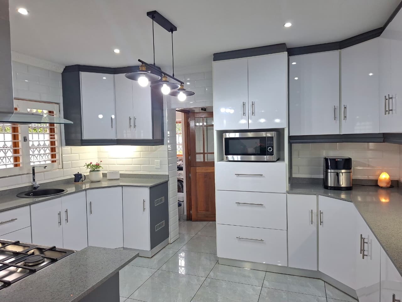 Discover this inviting residential property located in the coastal area of Isipingo Beach, Isipingo, South Africa. Boasting a generous Erf size of 1023 sqm, this home presents a freshly painted white exterior, a well-maintained tiled roof, and attractive wooden garage doors, contributing to its appealing kerb appeal. The property features a spacious paved driveway, offering ample parking with two garages and an additional six open parking spaces, all secured by a front entrance gate and modern boundary wall. The interior offers a comfortable and functional layout, including two lounges and two distinct dining areas, providing versatile living spaces. The main living room is neat and modern, featuring grey seating, coordinated black and white accents, and tiled floors. The heart of the home is a modern, open-plan kitchen, equipped with high-gloss white cabinets, sleek grey countertops, a subway tile backsplash, and integrated appliances including a gas range, oven, and extractor hood. A dedicated pantry provides additional storage. This residence comprises three well-proportioned bedrooms and three bathrooms, with one conveniently configured as an en-suite. The property prioritizes security with features such as an alarm system, access gate, perimeter fence, and burglar bars on windows, ensuring peace of mind. Practical amenities include water tanks and outside toilets, enhancing the home's functionality. The property is also wheelchair friendly. Isipingo Beach offers a desirable coastal lifestyle within the vibrant city of Isipingo. Its proximity to the beach provides opportunities for leisure and recreation, making it an attractive location for residents seeking a blend of convenience and seaside living. Key Features: * 3 Bedrooms, 3 Bathrooms (1 En-suite) * 2 Lounges, 2 Dining Areas * Modern Kitchen with Pantry * 2 Garages, 6 Parking Spaces * Erf Size: 1023 sqm * Enhanced Security: Alarm, Access Gate, Fence, Burglar Bars, Totally Walled * Paved Driveway * Water Tanks, Outside Toilets * Wheelchair Friendly