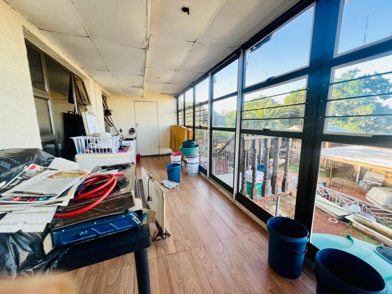 The expansive land surrounding the home includes three charming Wendy huts, offering additional storage or potential for creative use, along with a large Jojo tank to ensure ample water supply. Just around the corner, you’ll discover a cozy room complete with its own shower and toilet, adding convenience and versatility to the property.