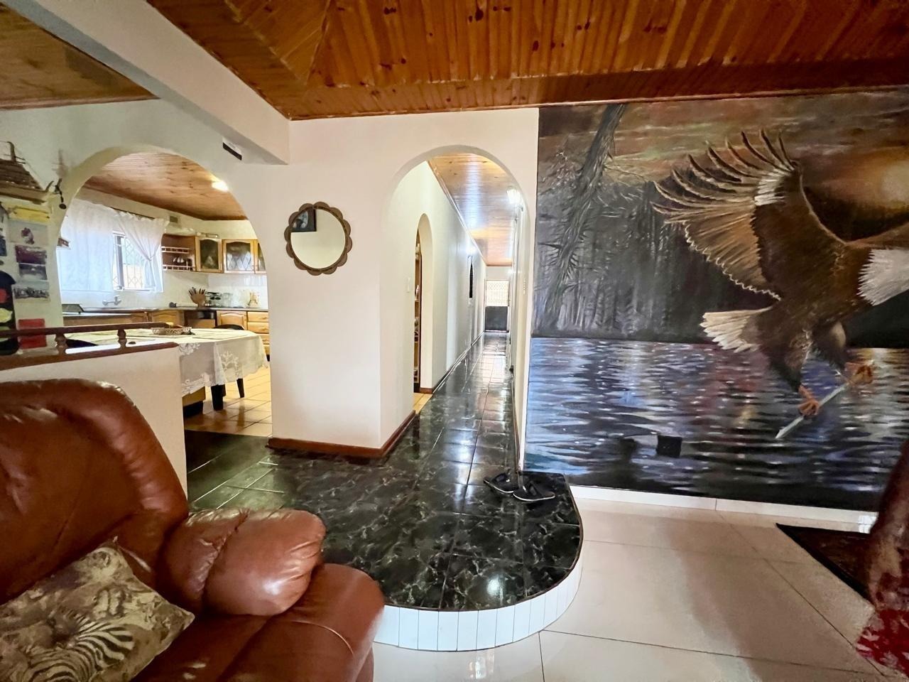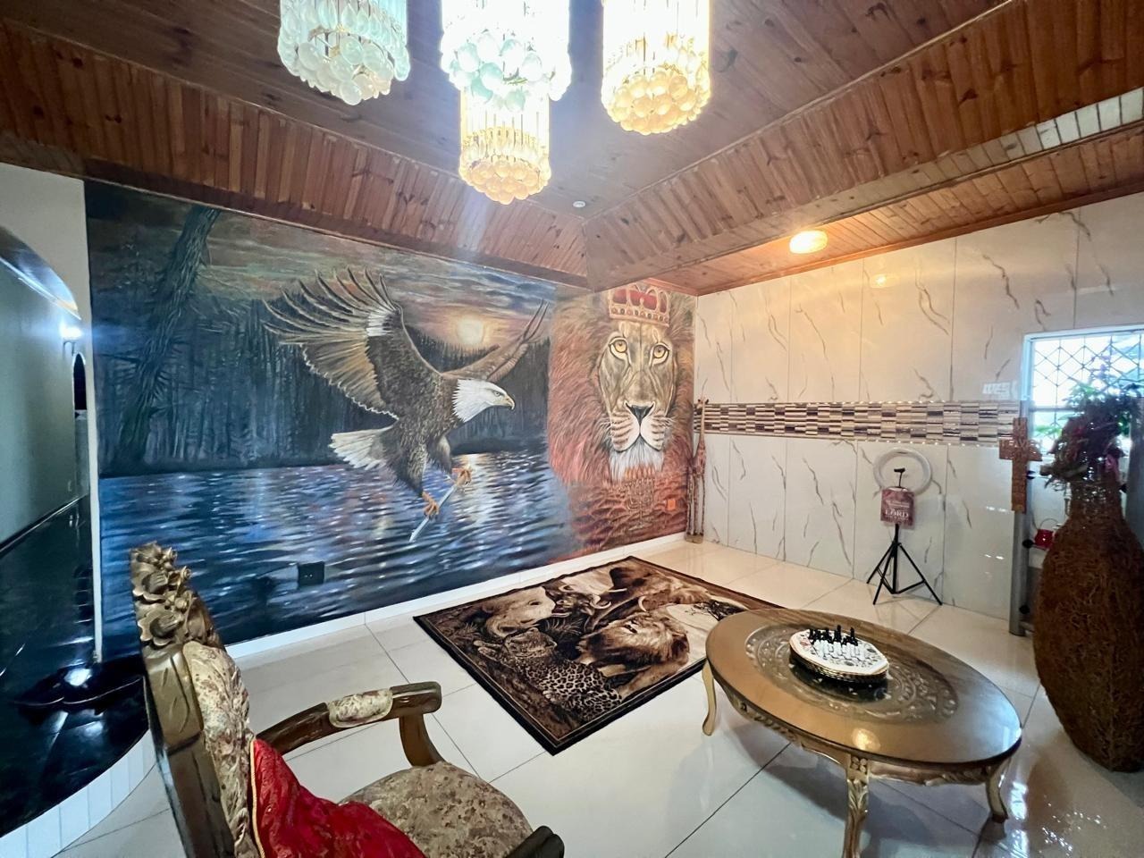As you step inside, you are greeted by an inviting upper level that boasts four generous bedrooms, a dedicated study and a beautifully designed open-plan kitchen that seamlessly flows into the lounge and dining area. The vibrant wall mural in the lounge adds a touch of artistic flair, making it the perfect backdrop for entertaining friends or enjoying family gatherings.
