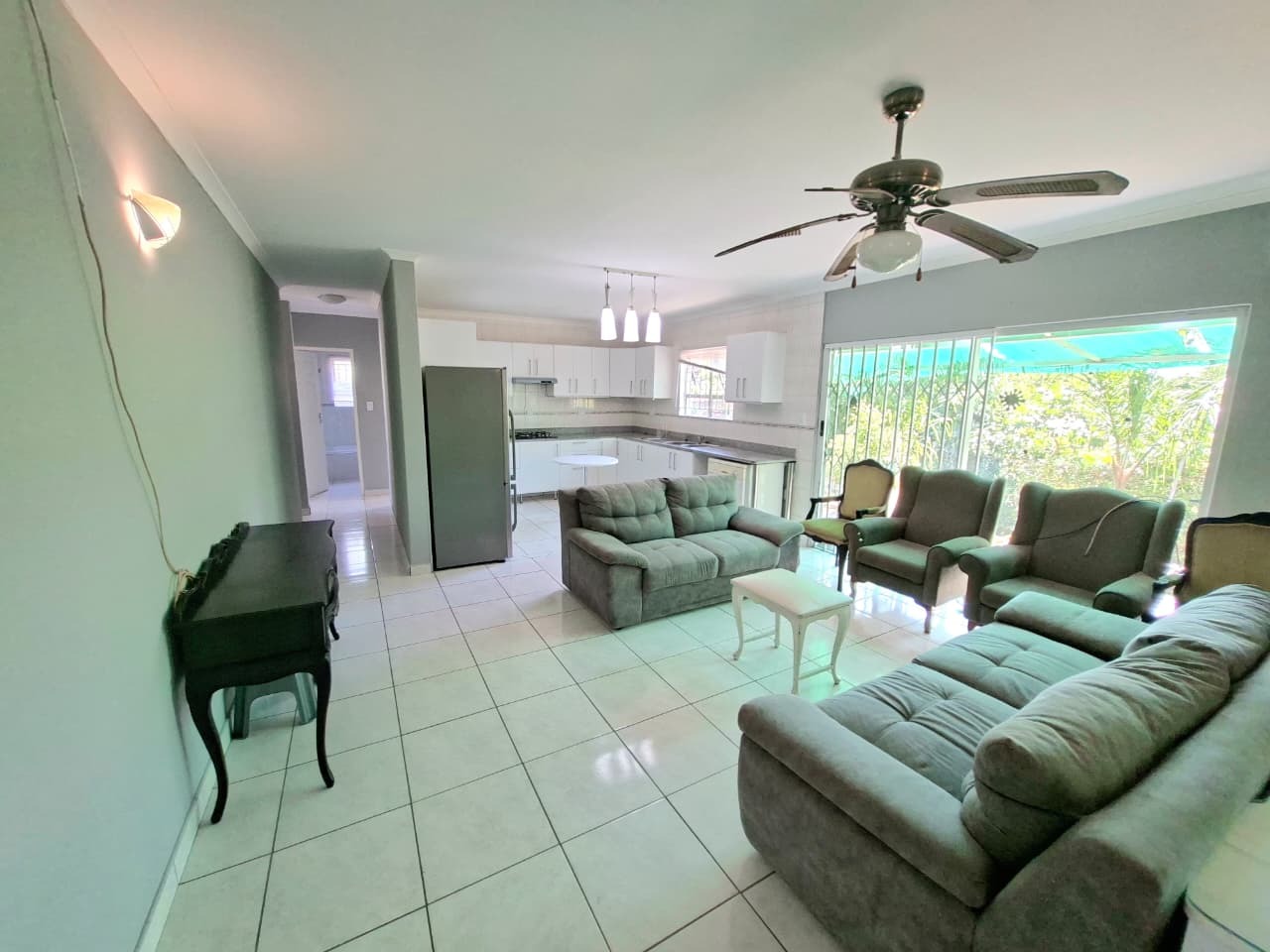 Discover this inviting residential sale property in Astra Park, Kingsburgh, South Africa. The home presents a modern grey exterior with crisp white trim, enhanced by lush tropical planting, creating an appealing first impression. Its design incorporates multiple louvre windows, ensuring excellent ventilation and natural light throughout. Step inside to an open-plan layout that seamlessly connects the living areas. The well-lit lounge benefits from ample natural light, featuring both a ceiling fan and air conditioning for year-round comfort. Tiled flooring extends throughout, offering durability and easy maintenance. The property includes a dedicated dining room and a functional kitchen, catering to everyday living. This residence offers three comfortable bedrooms, each designed with practicality in mind. Bedrooms feature neutral grey walls, tiled flooring, and built-in wardrobes, providing ample storage solutions. The home includes two bathrooms, one of which is an en-suite. These bathrooms are fully tiled and feature modern vanities, integrated sinks, and either a corner shower or a corner bathtub with a shower screen, ensuring convenience for all residents. Outside, the property boasts a swimming pool, perfect for relaxation and entertainment. Parking is well-catered for with one garage and an additional parking space. Security features include burglar bars on windows and an access gate, providing peace of mind. The home is also wheelchair-friendly and allows pets, adding to its versatility. Situated in Astra Park, Kingsburgh, this property offers coastal living in a desirable South African location. Residents can enjoy the proximity to the beach and the relaxed atmosphere of this vibrant community. Kingsburgh provides a blend of convenience and leisure opportunities. Key Features: * 3 Bedrooms, 2 Bathrooms (1 En-suite) * Open-plan Lounge and Dining Room * Functional Kitchen * Swimming Pool * 1 Garage, 1 Parking Space * Built-in Wardrobes * Tiled Flooring Throughout * Burglar Bars and Access Gate * Wheelchair Friendly & Pet-Friendly