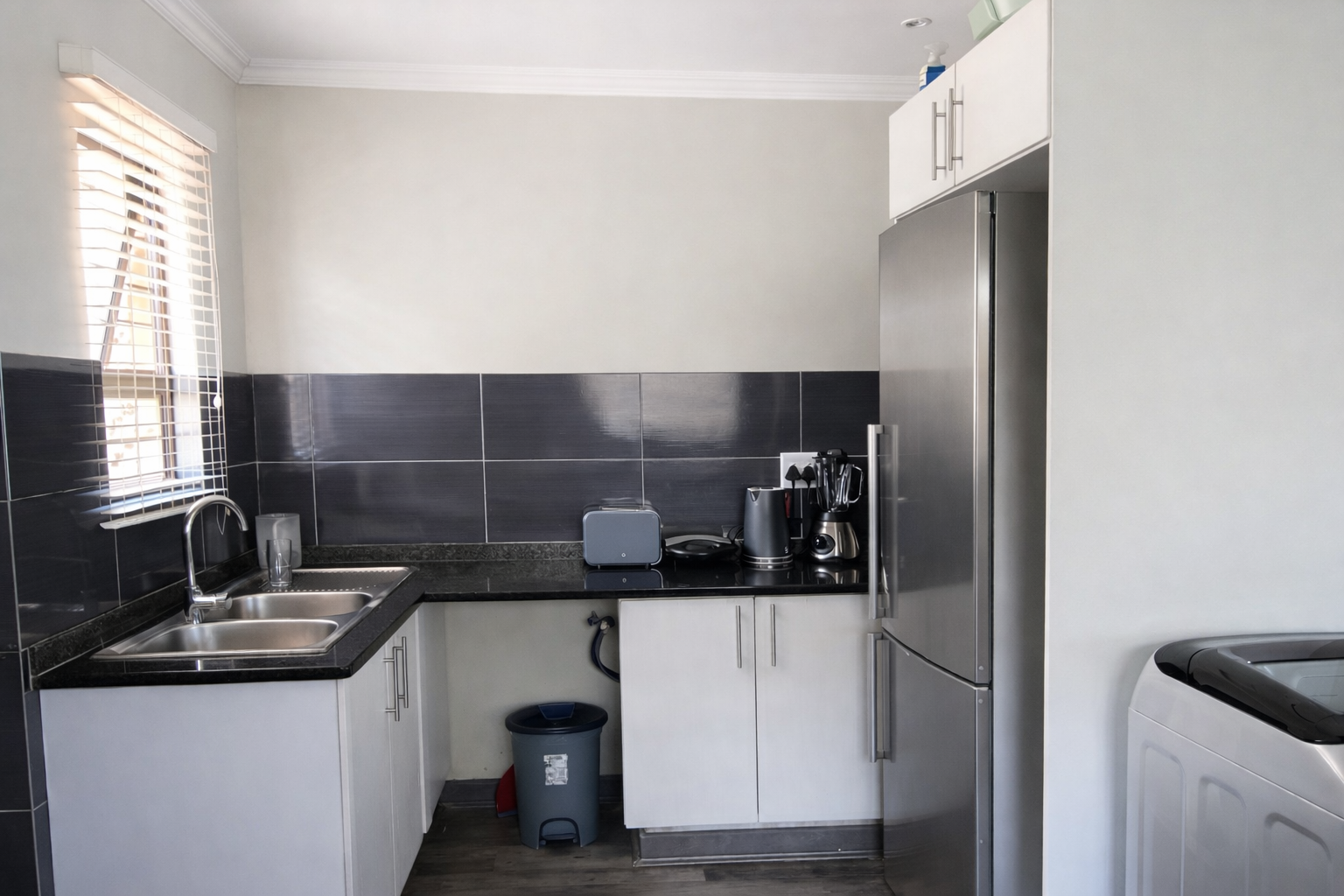 The townhouse is tiled throughout with the same tiles, creating a clean and cohesive flow, and is fitted with blinds throughout for added comfort and privacy.