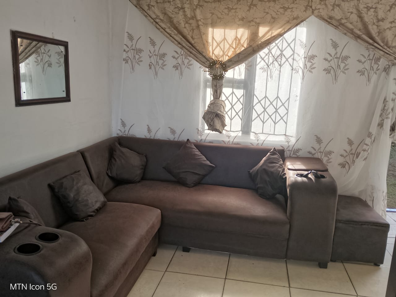 This property offers two well-sized bedrooms, one bathroom, and a comfortable sitting room, making it ideal for a medium-sized family. The house features durable aluminium windows fitted with burglar guards, providing both security and low maintenance.