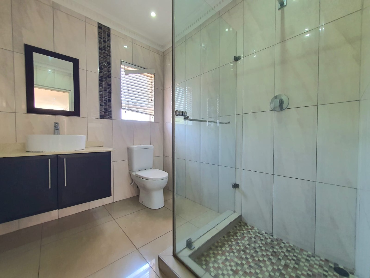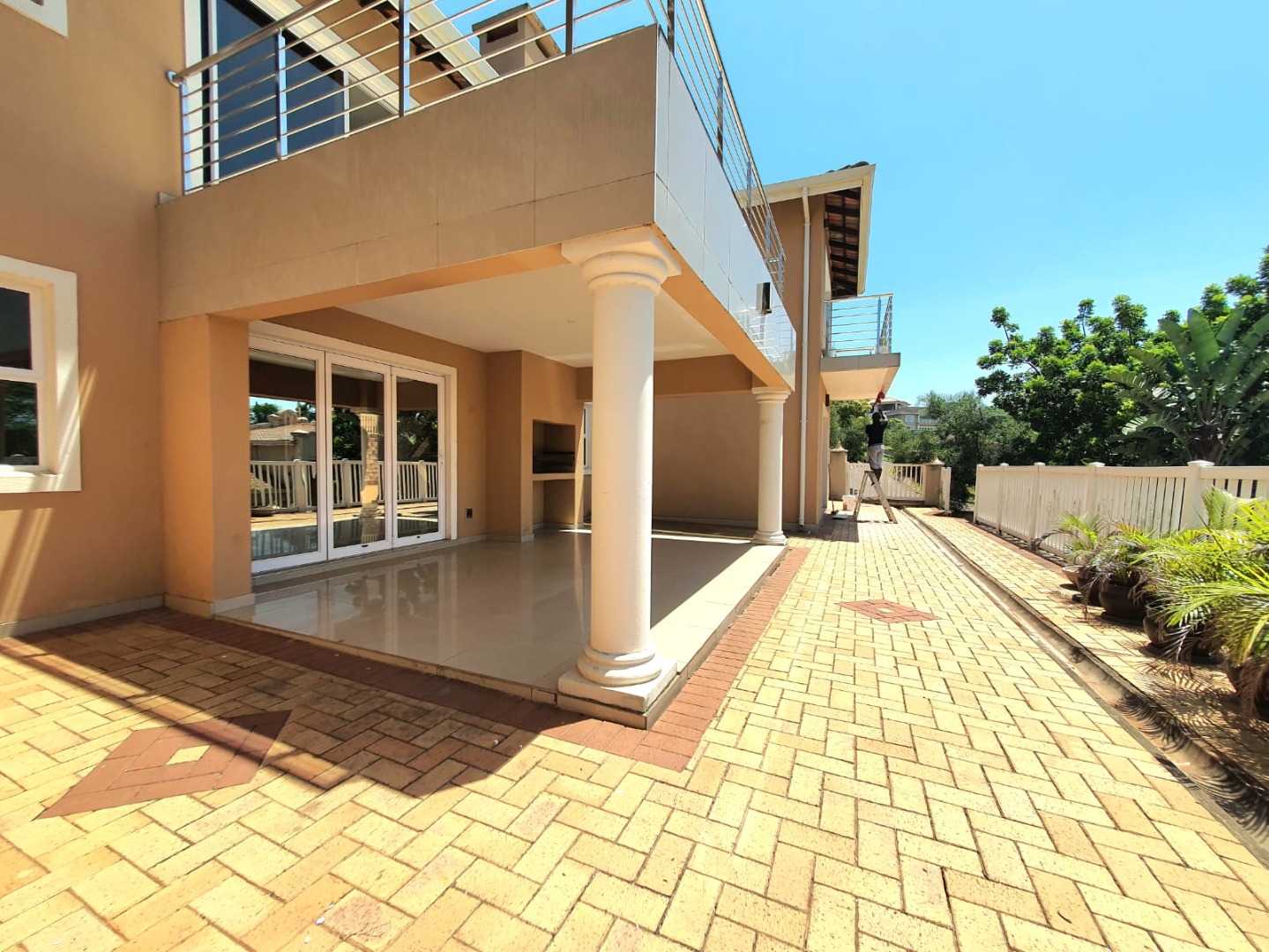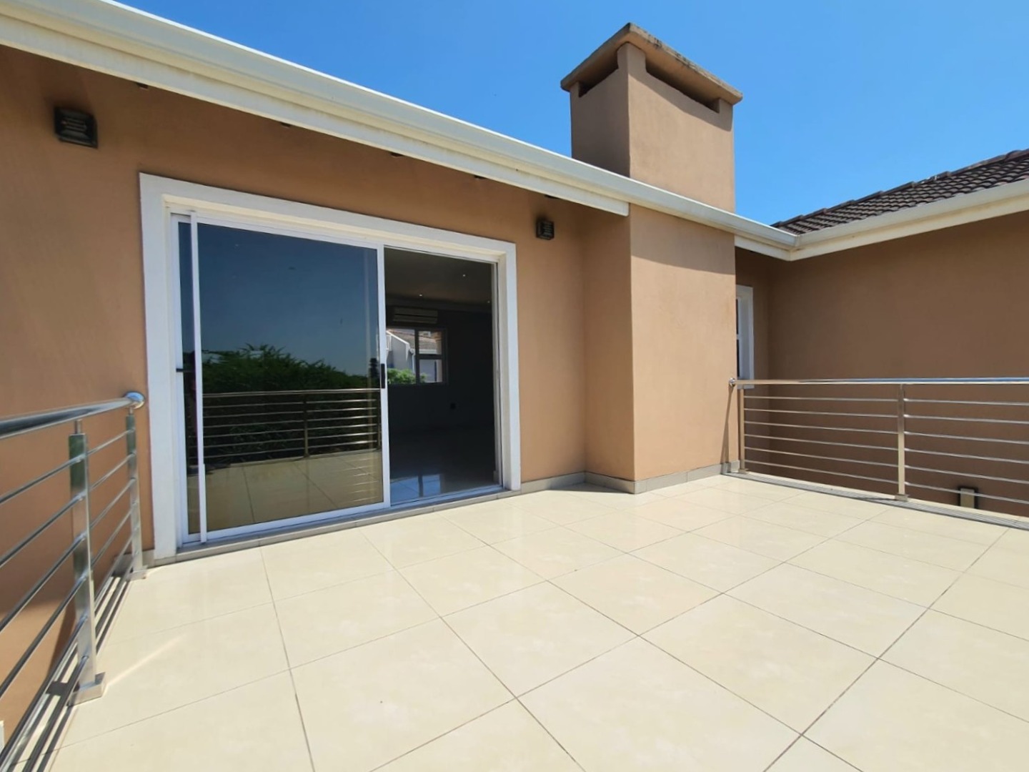 Upmarket Home situated in an exceptionally Desirable Upmarket, Pet Friendly Estate. Offering Top-Notch security. This Spacious, Beautiful home has Large glass doors, flooding the area with Sunlight and Fresh Air throughout the day. The spacious Living Areas opens onto the large balconies .The Downstairs Balcony has a Built in Braai, overlooking the garden.