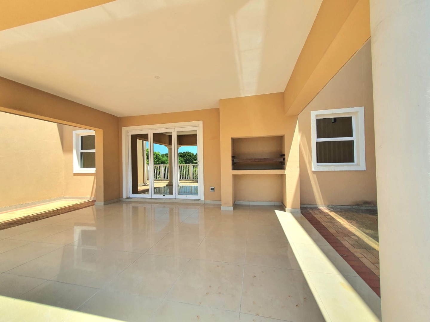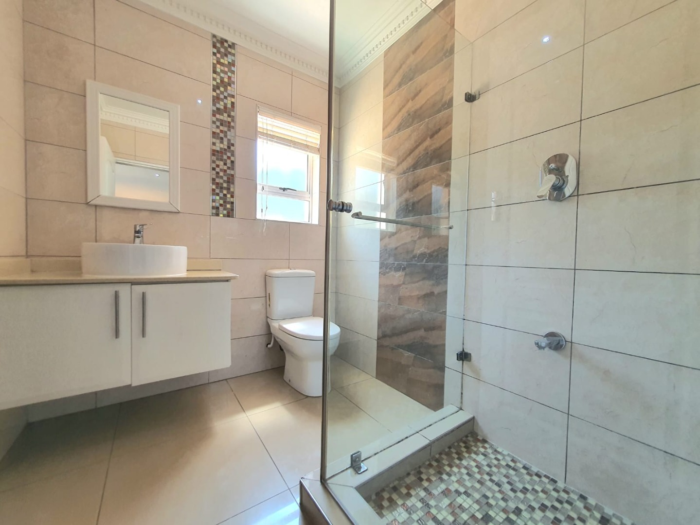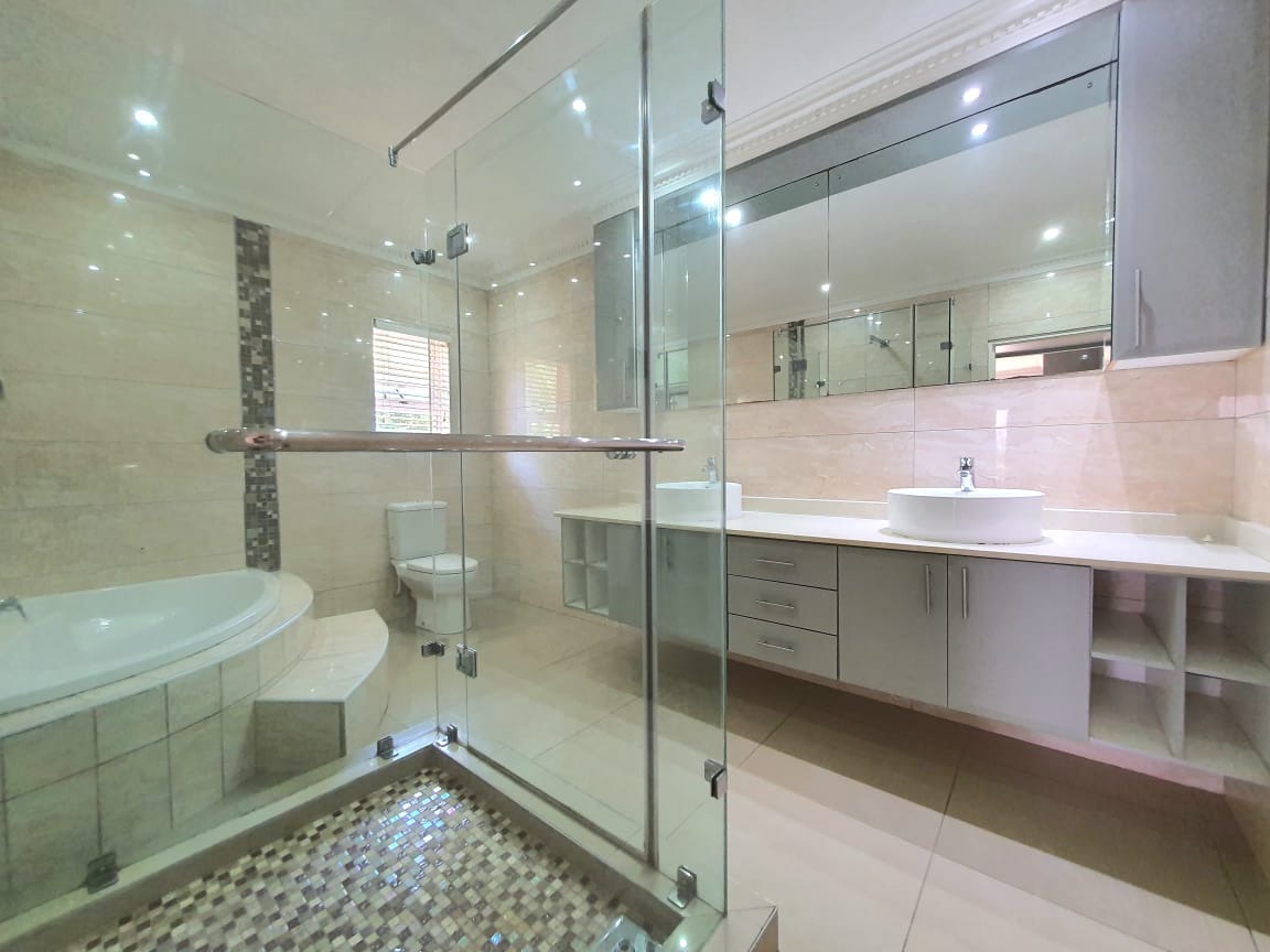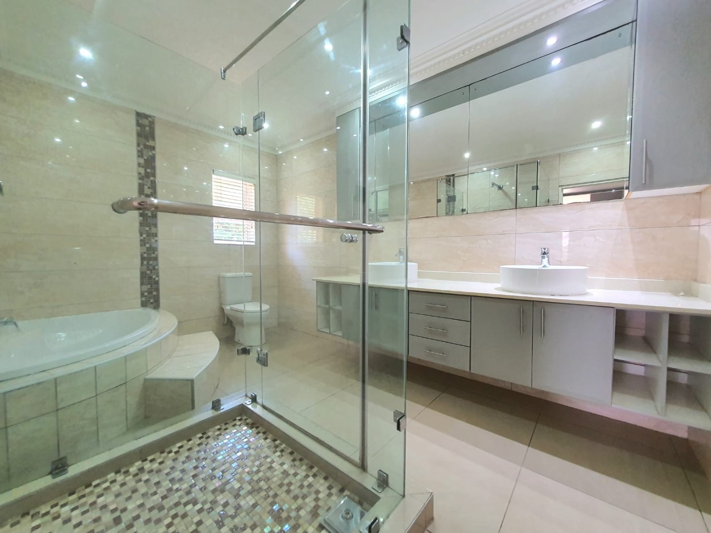 Upmarket Home situated in an exceptionally Desirable Upmarket, Pet Friendly Estate. Offering Top-Notch security. This Spacious, Beautiful home has Large glass doors, flooding the area with Sunlight and Fresh Air throughout the day. The spacious Living Areas opens onto the large balconies .The Downstairs Balcony has a Built in Braai, overlooking the garden.