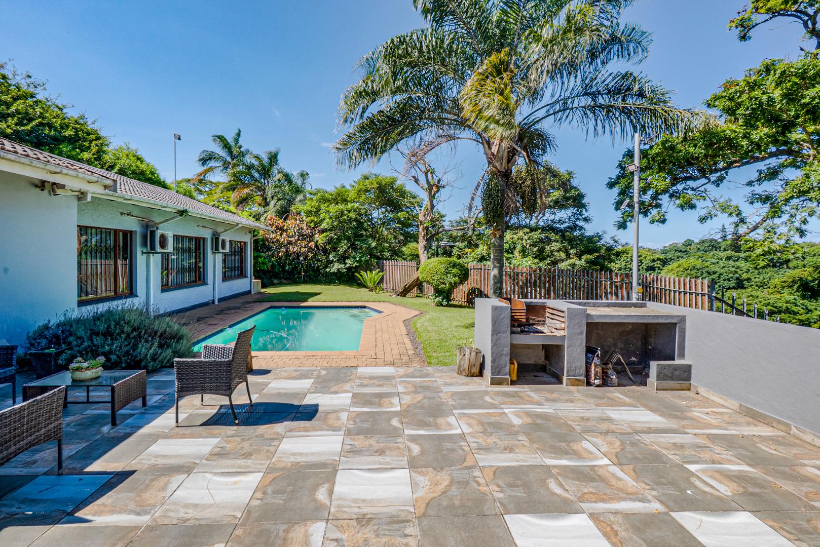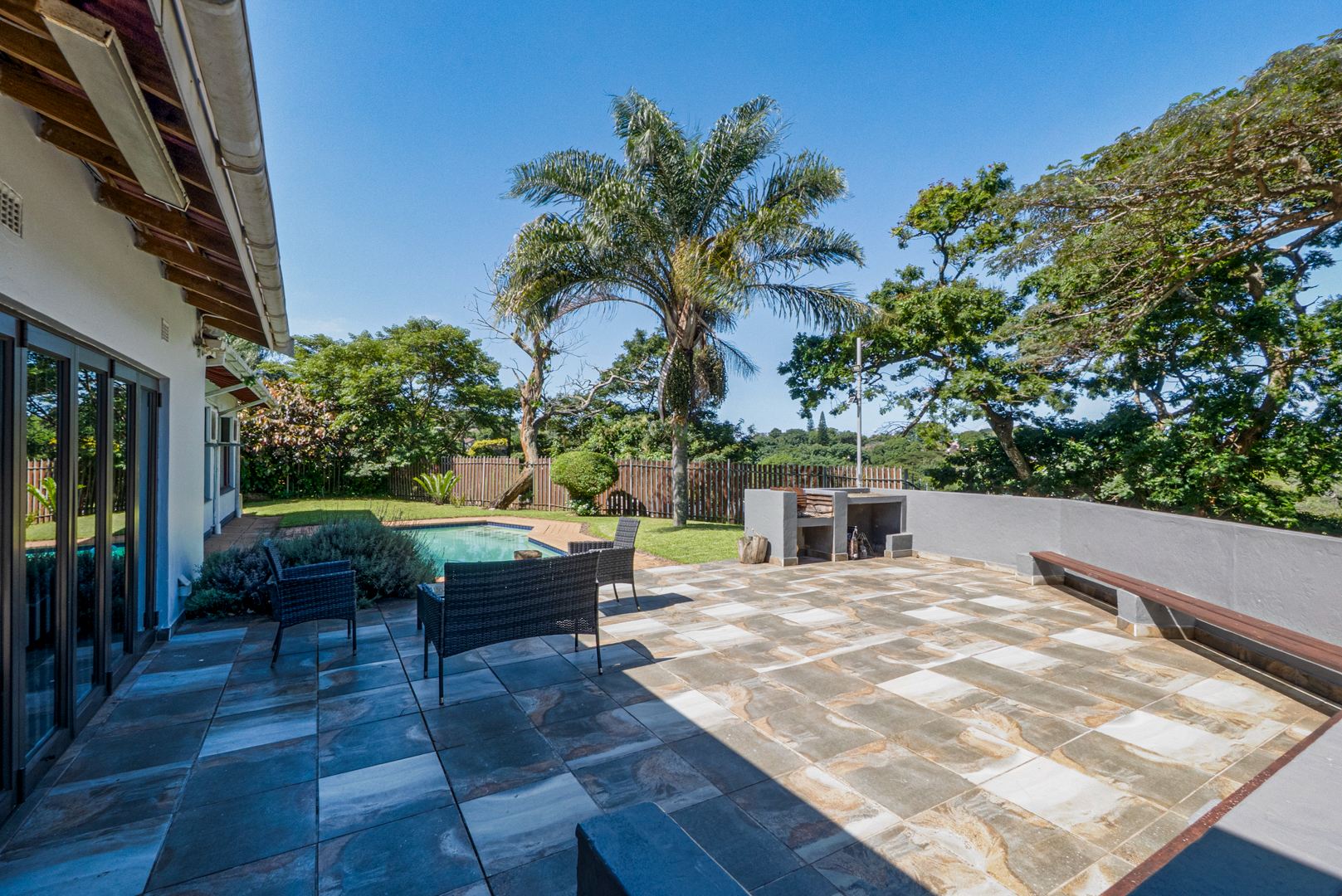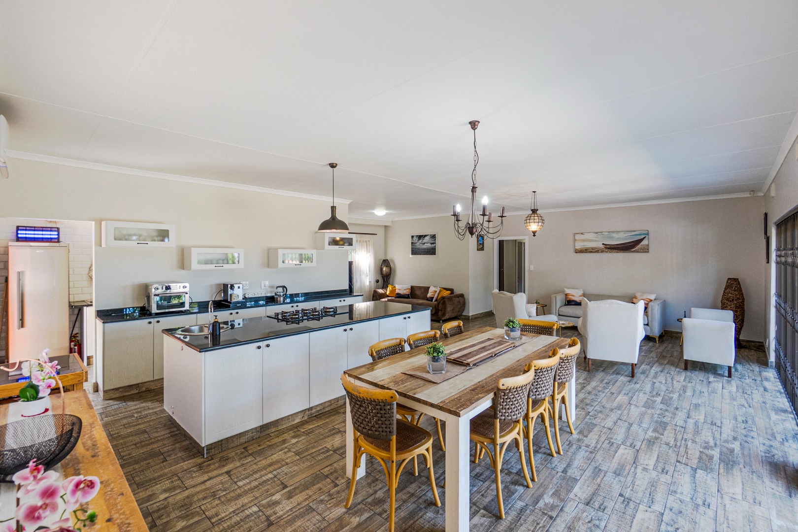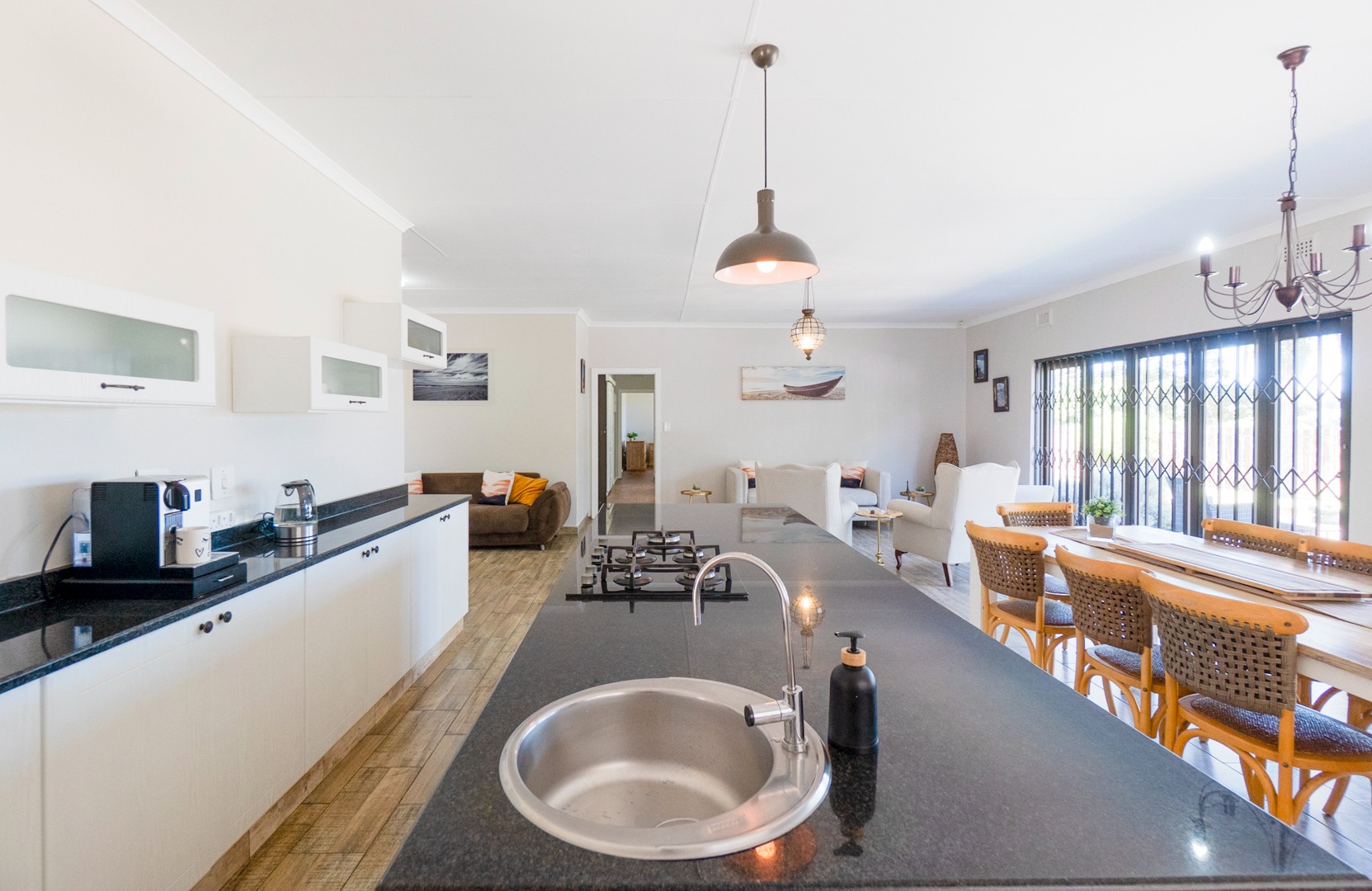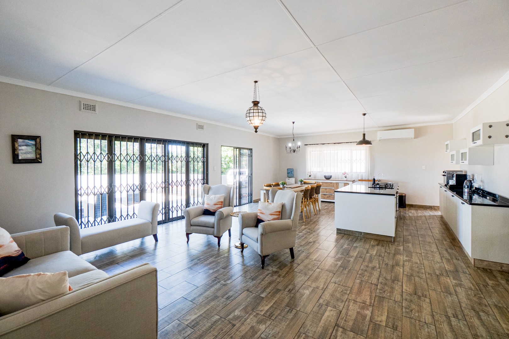 Positioned slightly above road level, the home opens up onto a spectacular sized level entertainment area, designed for memorable gatherings. A tiled braai area overlooks a sparkling pool, creating the perfect setting for relaxed outdoor living, with sliding doors opening up to theĀ inside of the lounge area. The open-plan kitchen is both stylish and functional, complemented by a separate scullery for added convenience. Clean architectural lines and thoughtfully designed spaces create a seamless flow that enhances both comfort and sophistication.