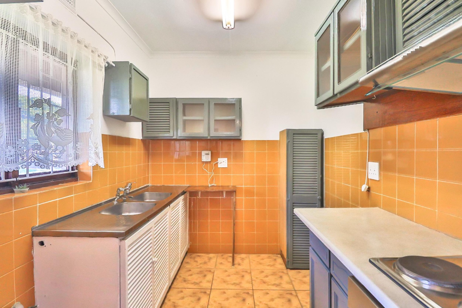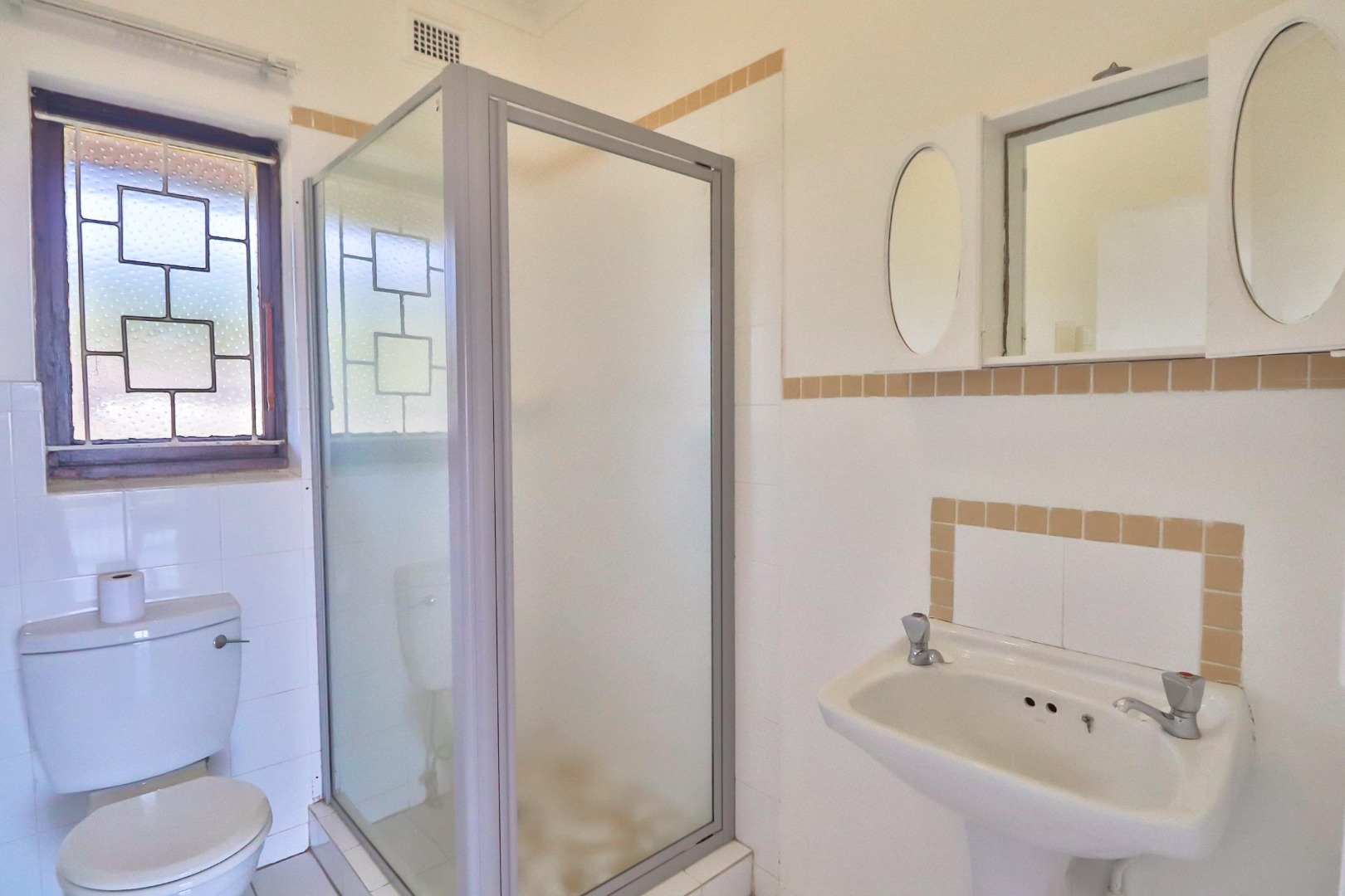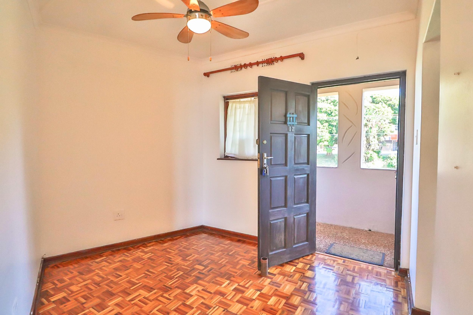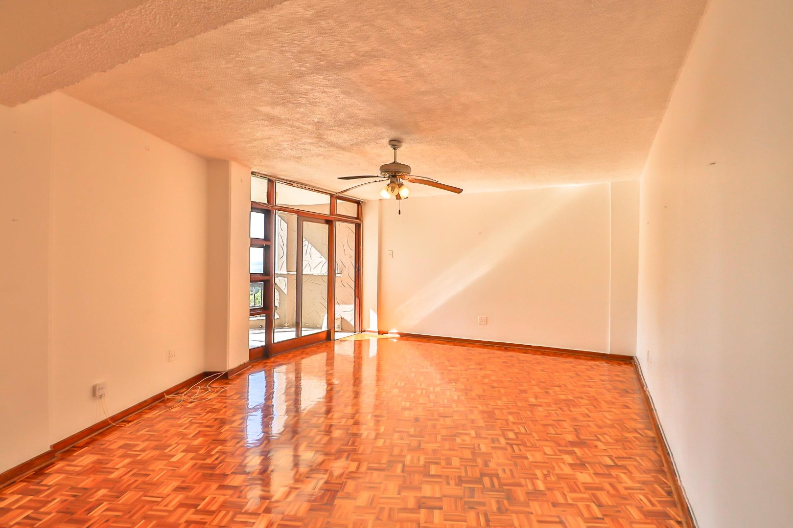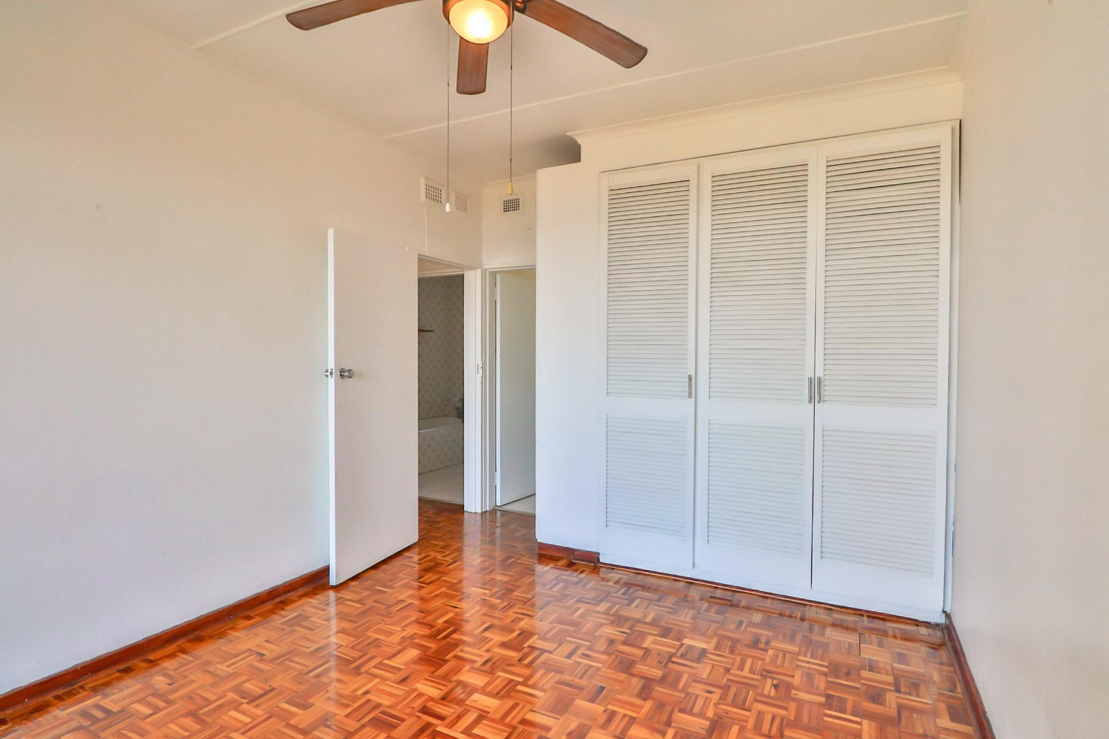 The unit has gleaming Parque floors throughout, while tiles cover the bathrooms and kitchen, with built-in cupboards and ceiling fans. With some loving attention the bathrooms and kitchen will not disappoint.