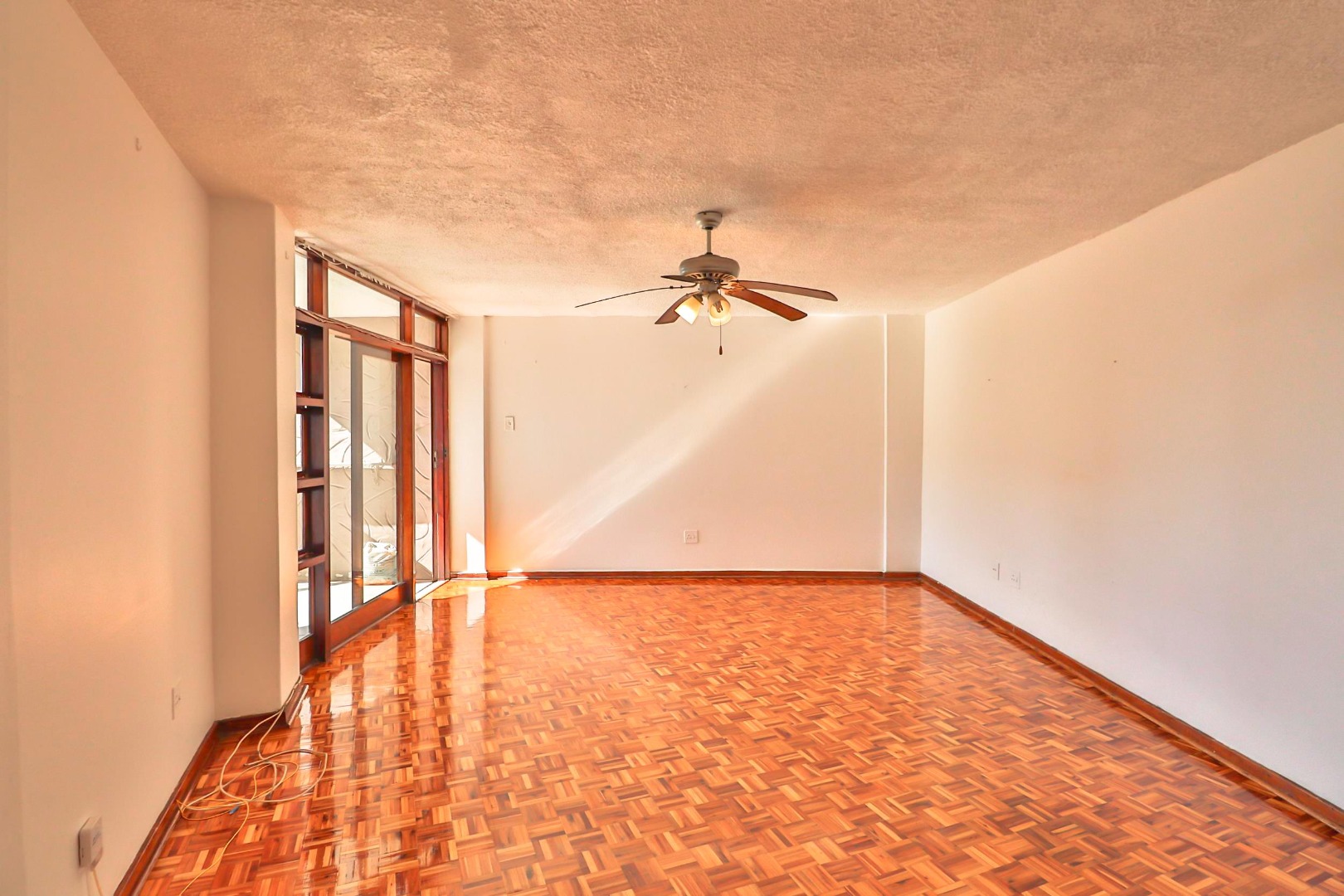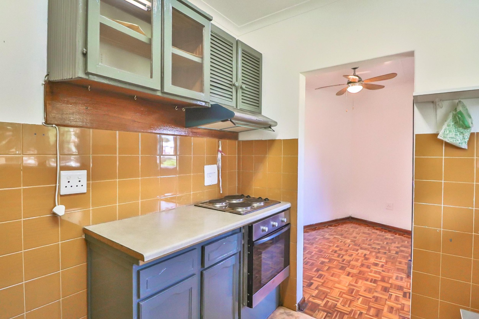 The unit has gleaming Parque floors throughout, while tiles cover the bathrooms and kitchen, with built-in cupboards and ceiling fans. With some loving attention the bathrooms and kitchen will not disappoint.