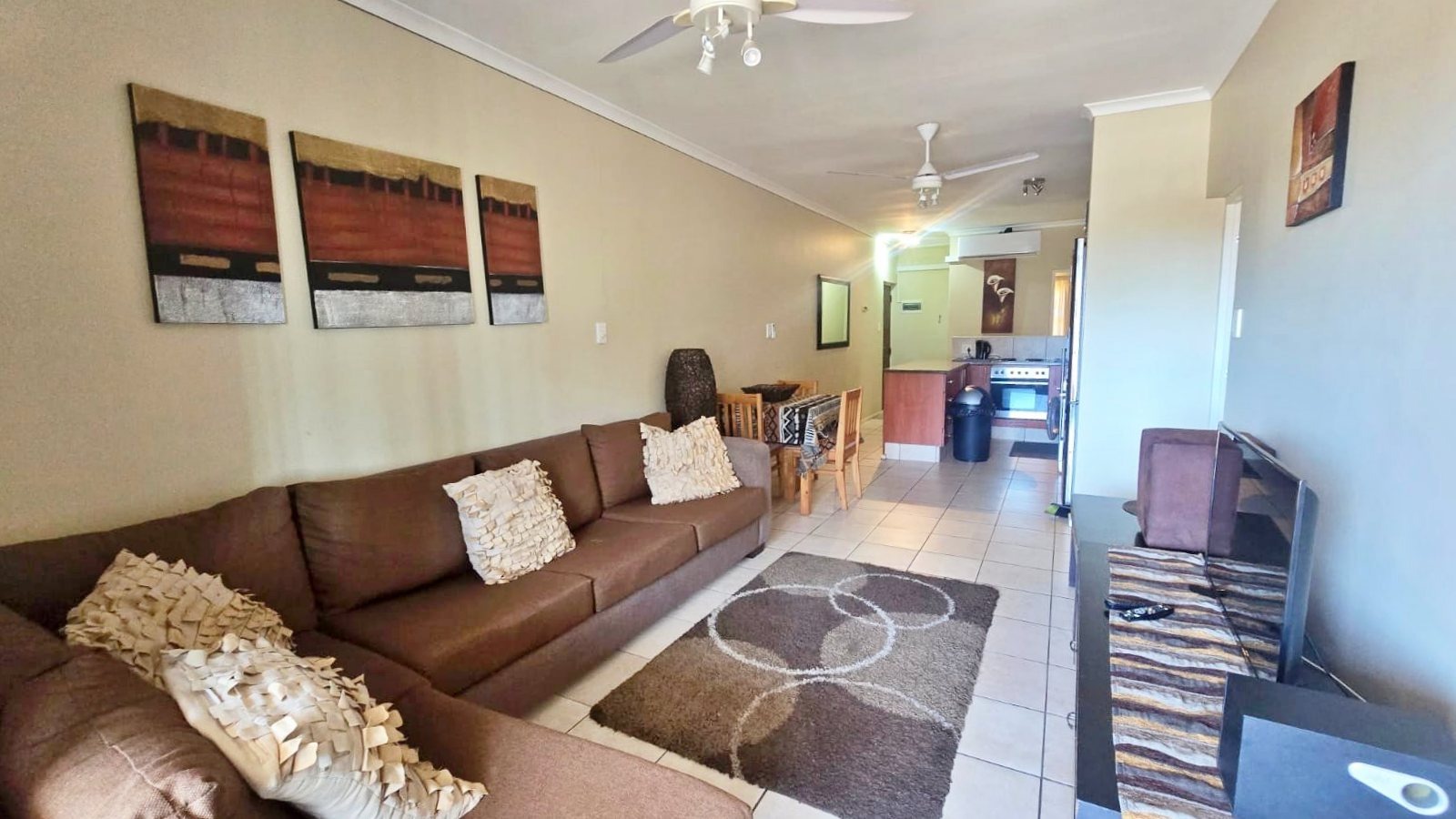 Get ready to embrace a relaxed coastal lifestyle with this lovely 3-bedroom, 2-bathroom apartment, perfectly situated in a secure complex in Winklespruit, Kingsburgh. This 97 sqm unit offers a fantastic open-plan layout, making it super easy to move between the living area and the well-equipped kitchen. The kitchen features a handy breakfast bar, ideal for quick meals or catching up, . You'll also find air conditioning for those warmer days, ensuring comfort throughout.
